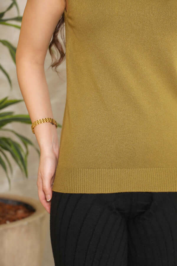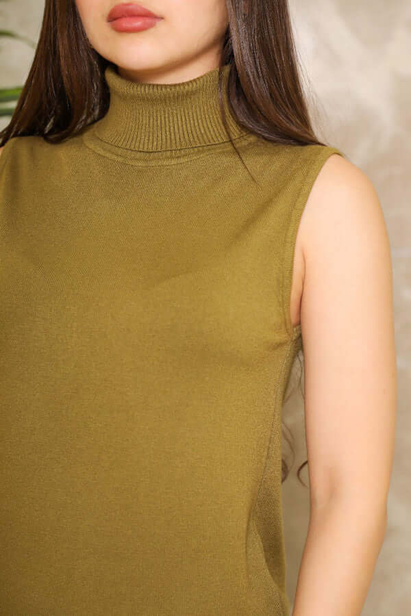 بلوزة شتوية بياقة عالية كت لون زيتي