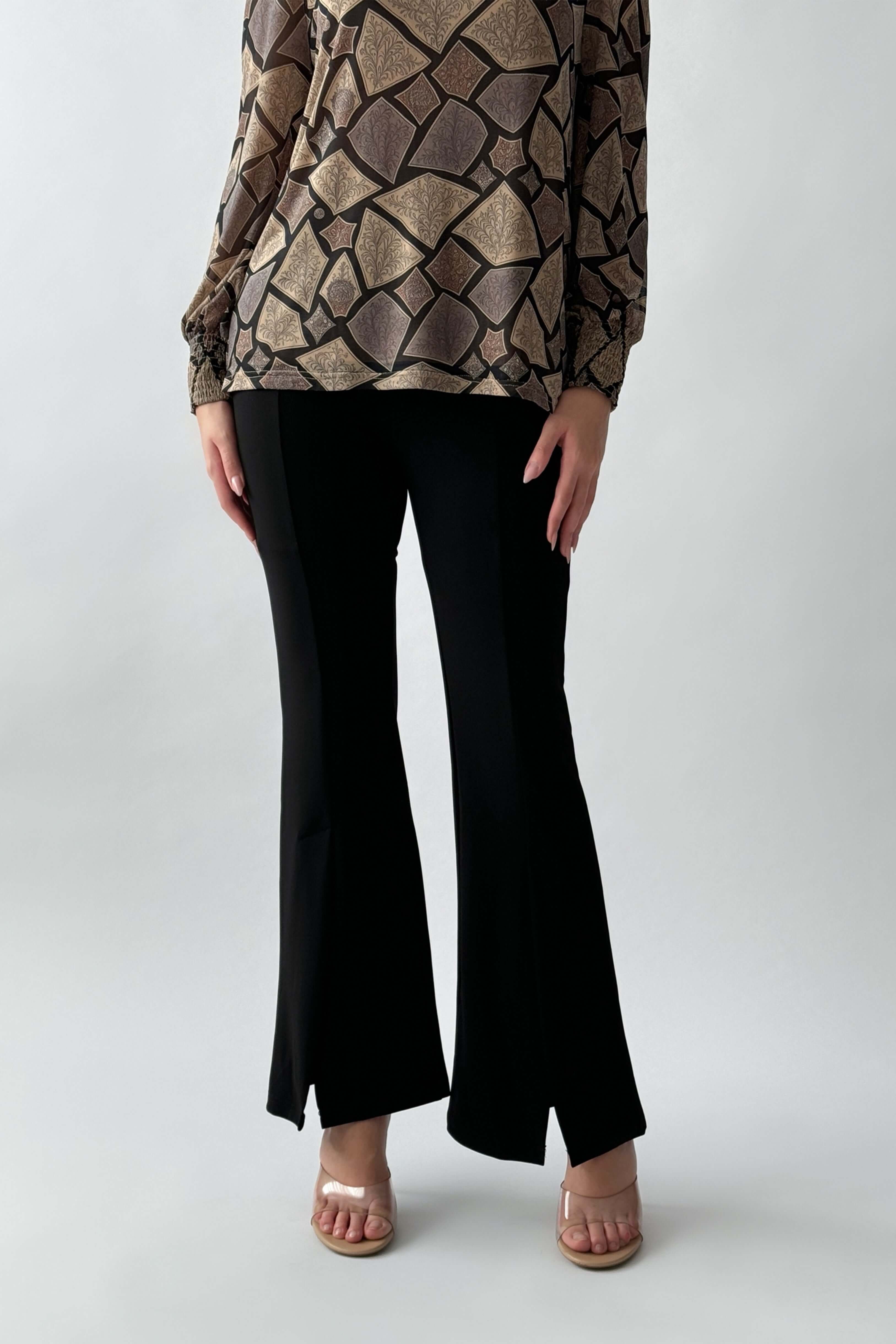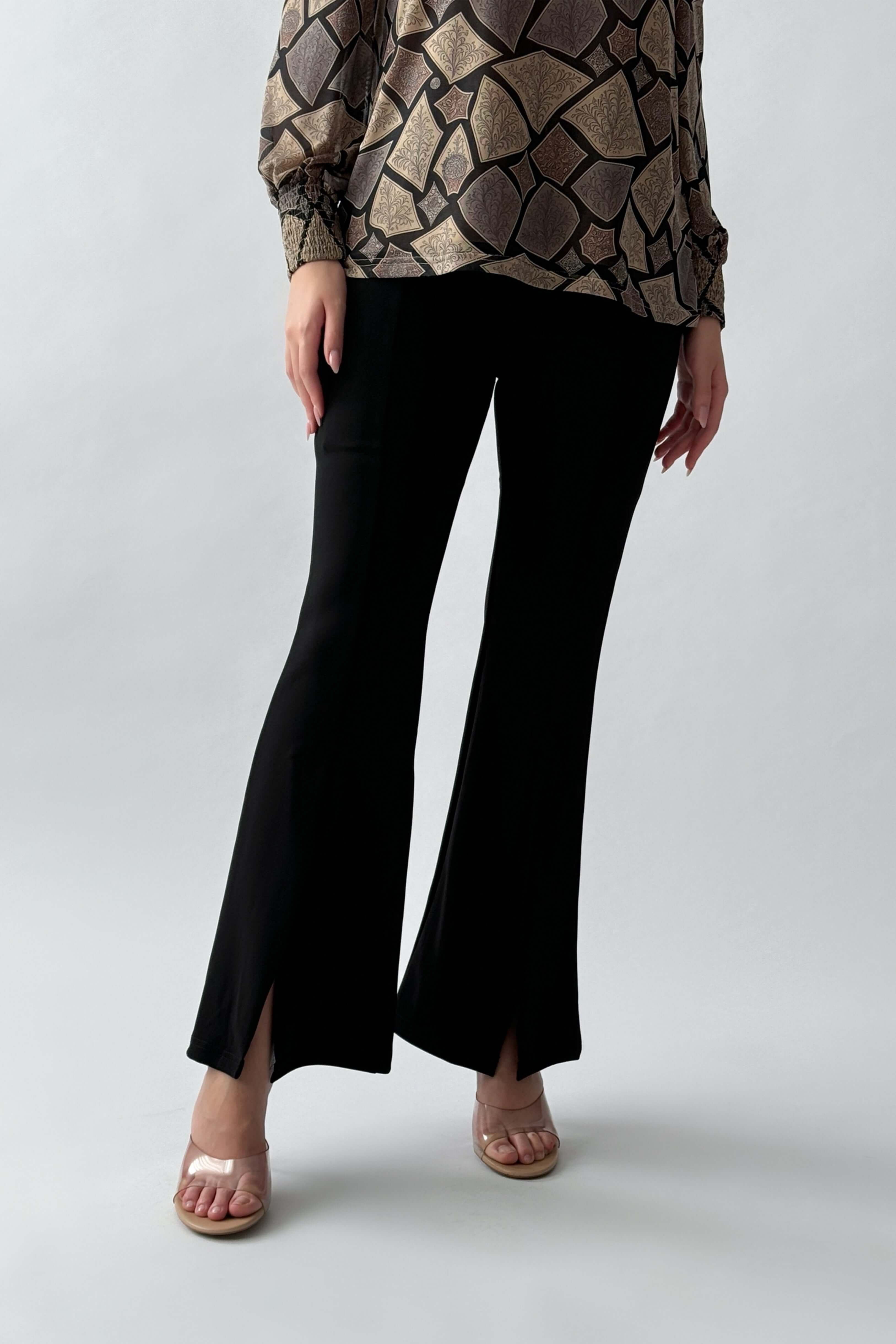 • نوع القَصة: بنطال فلير بفتحات سفلية وسحاب للإغلاق