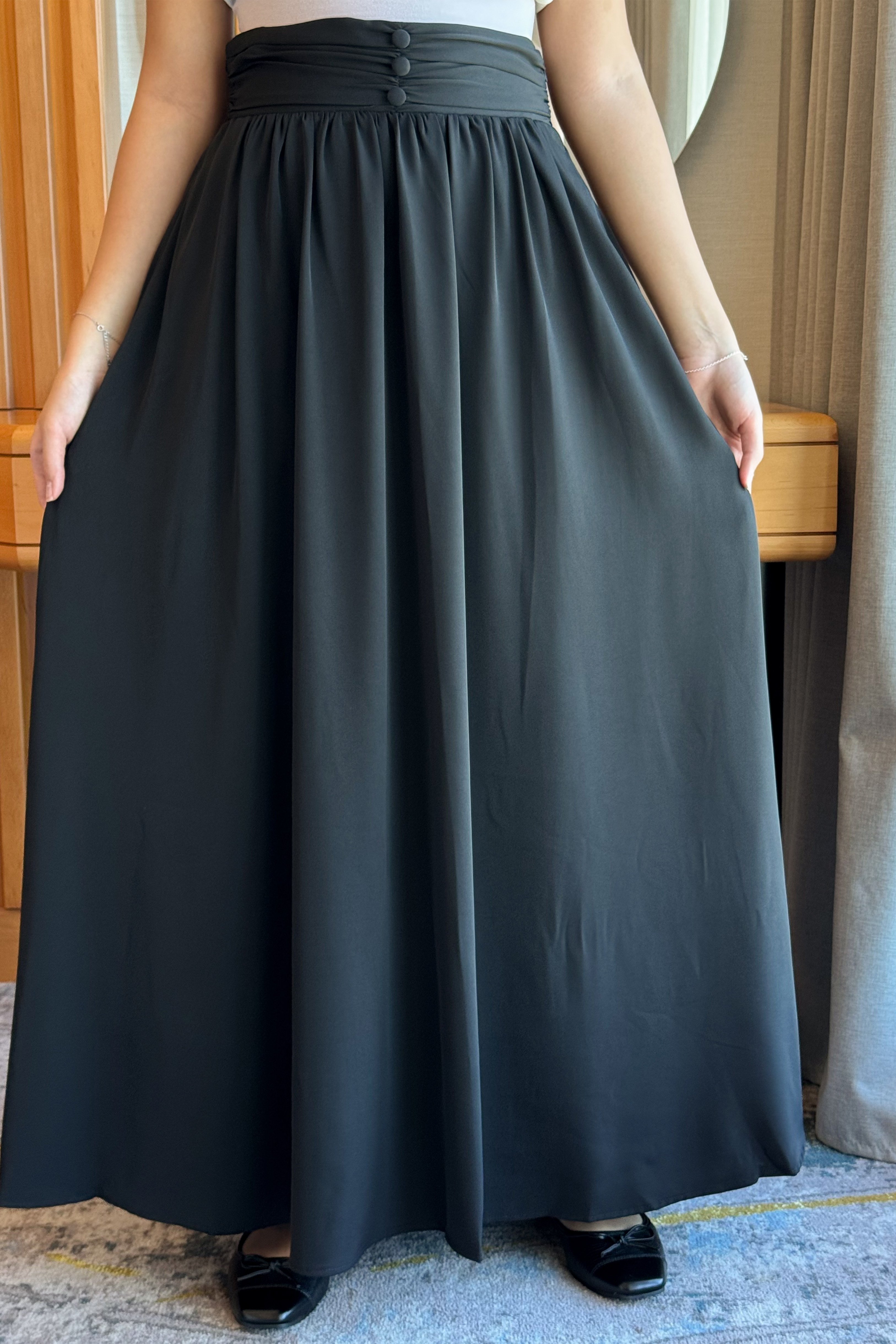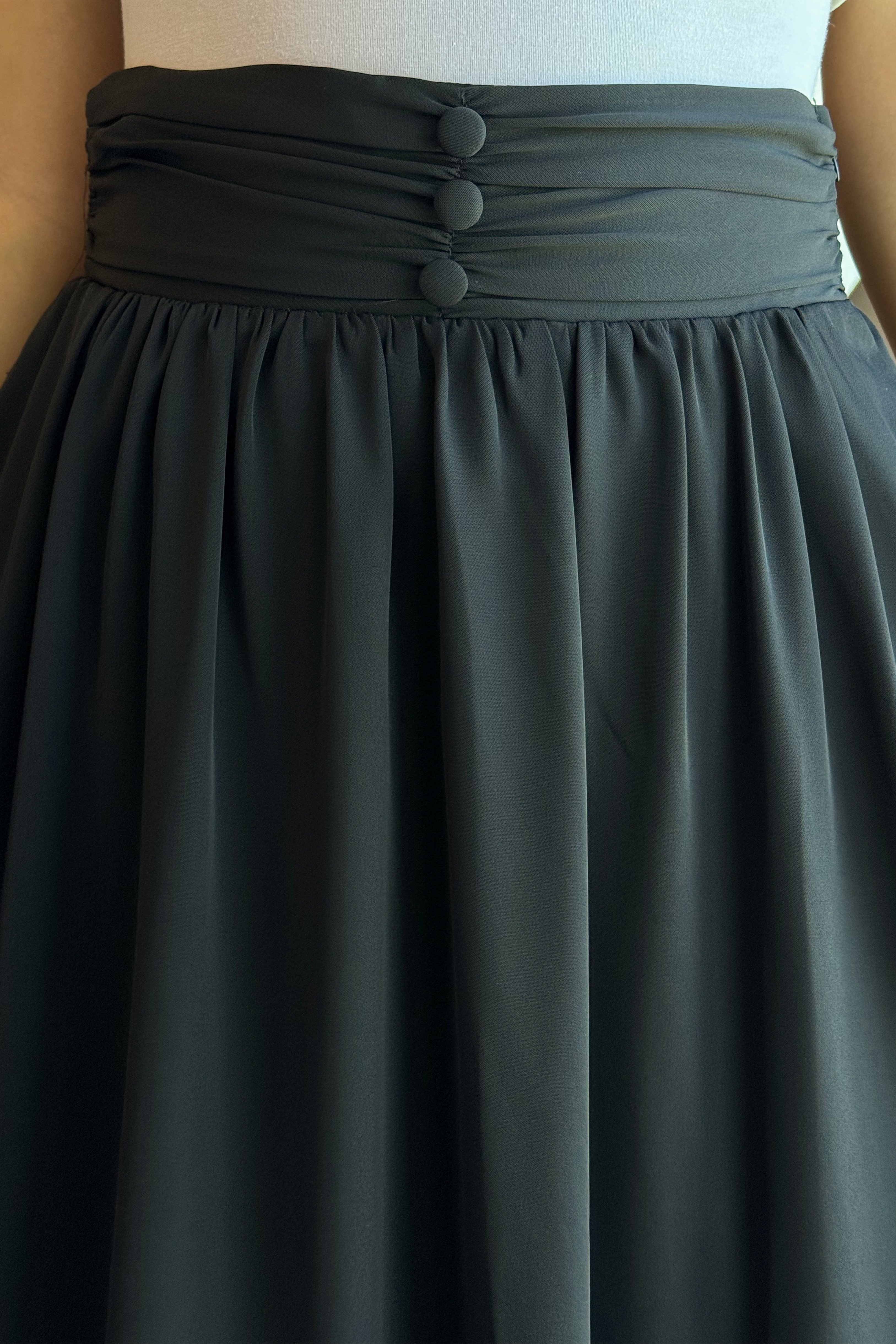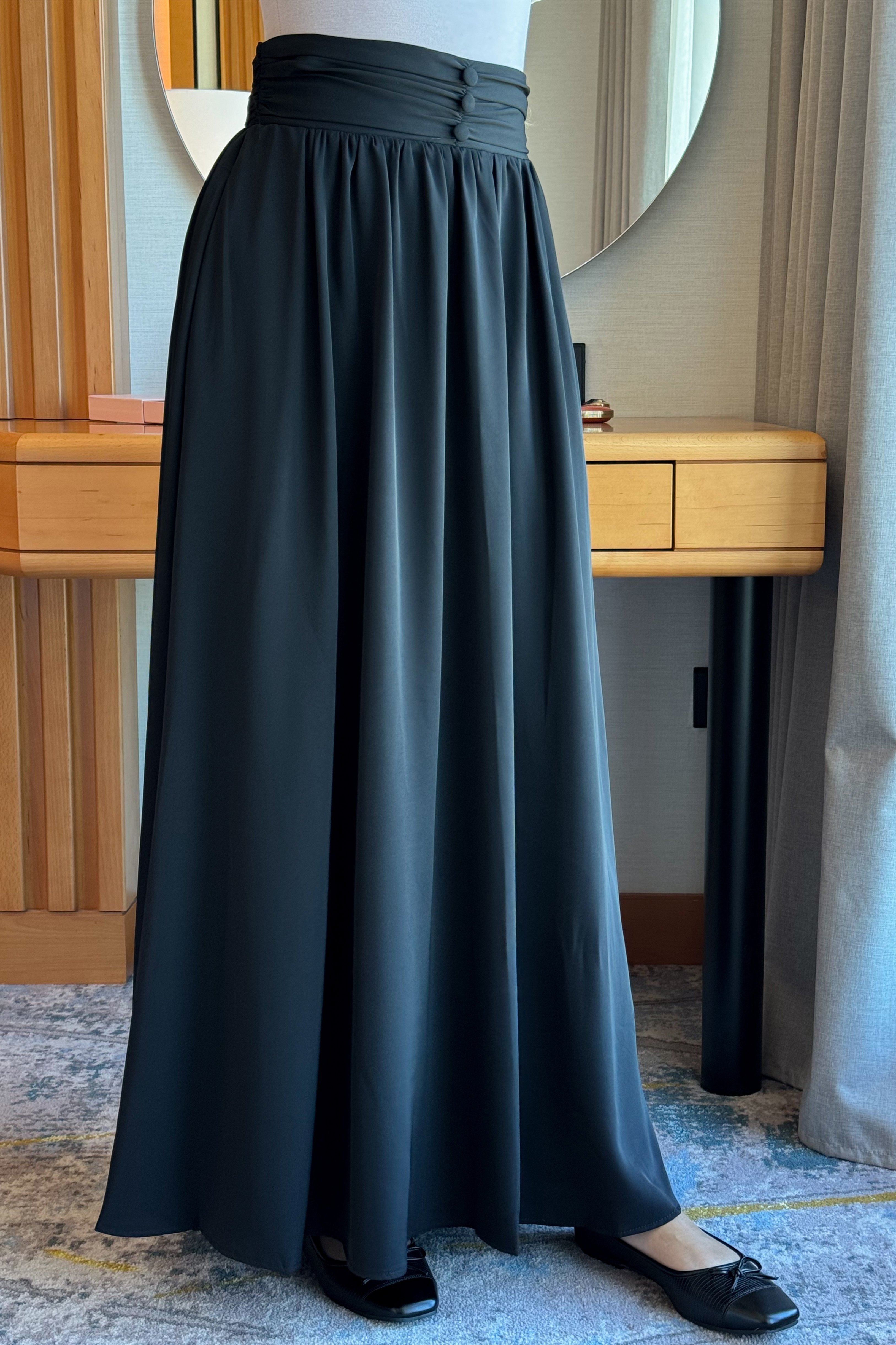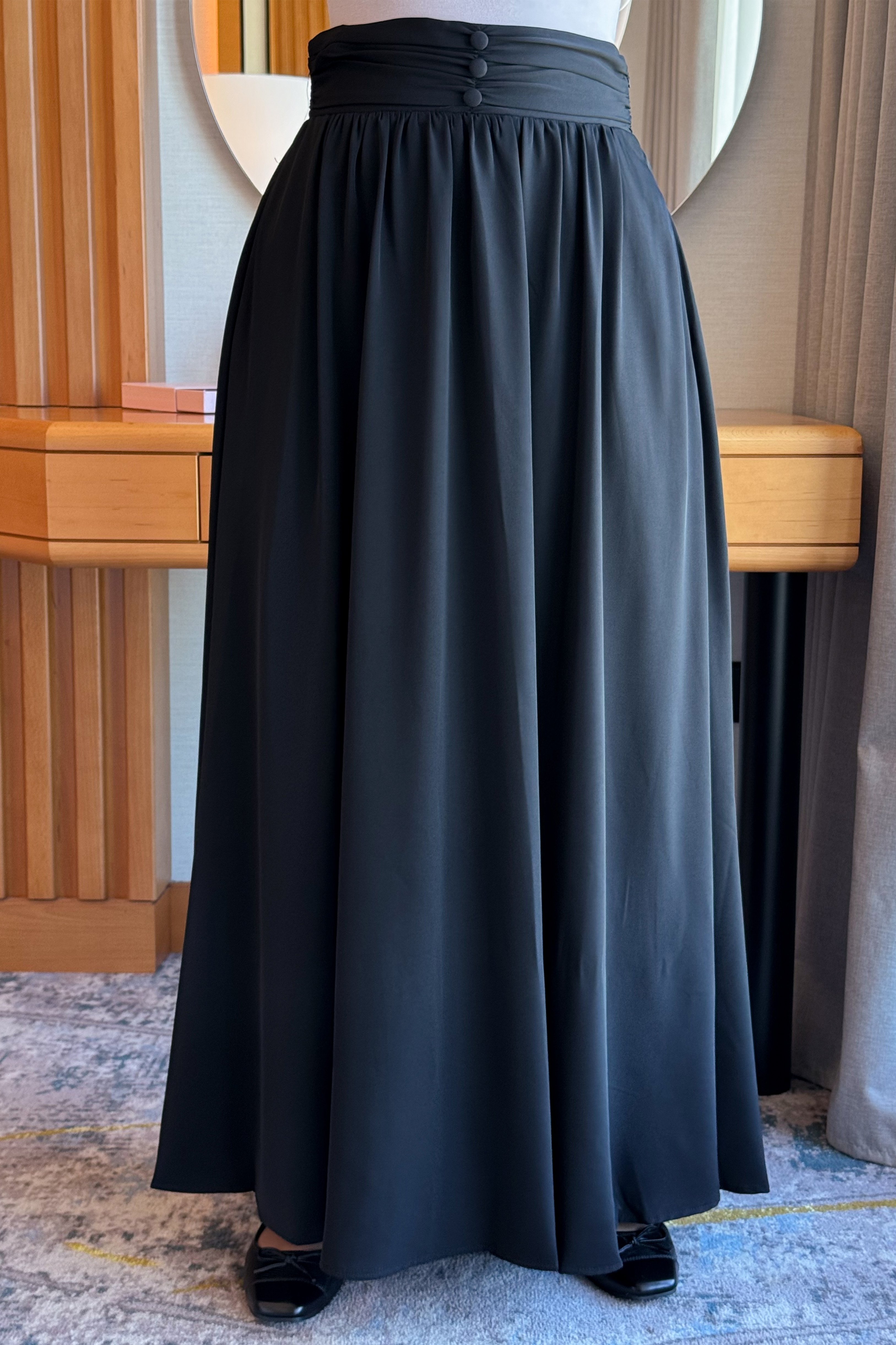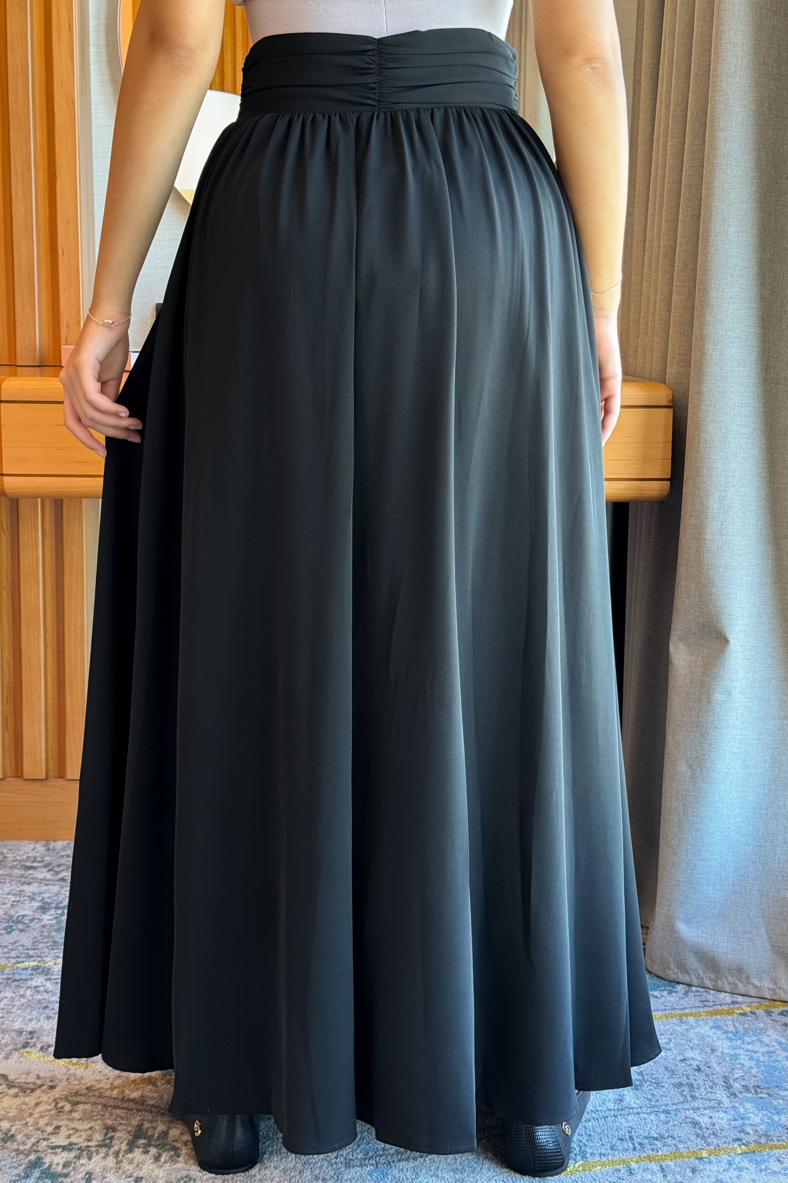 تنورة كلوش طويلة بخصر عالي بكسرات