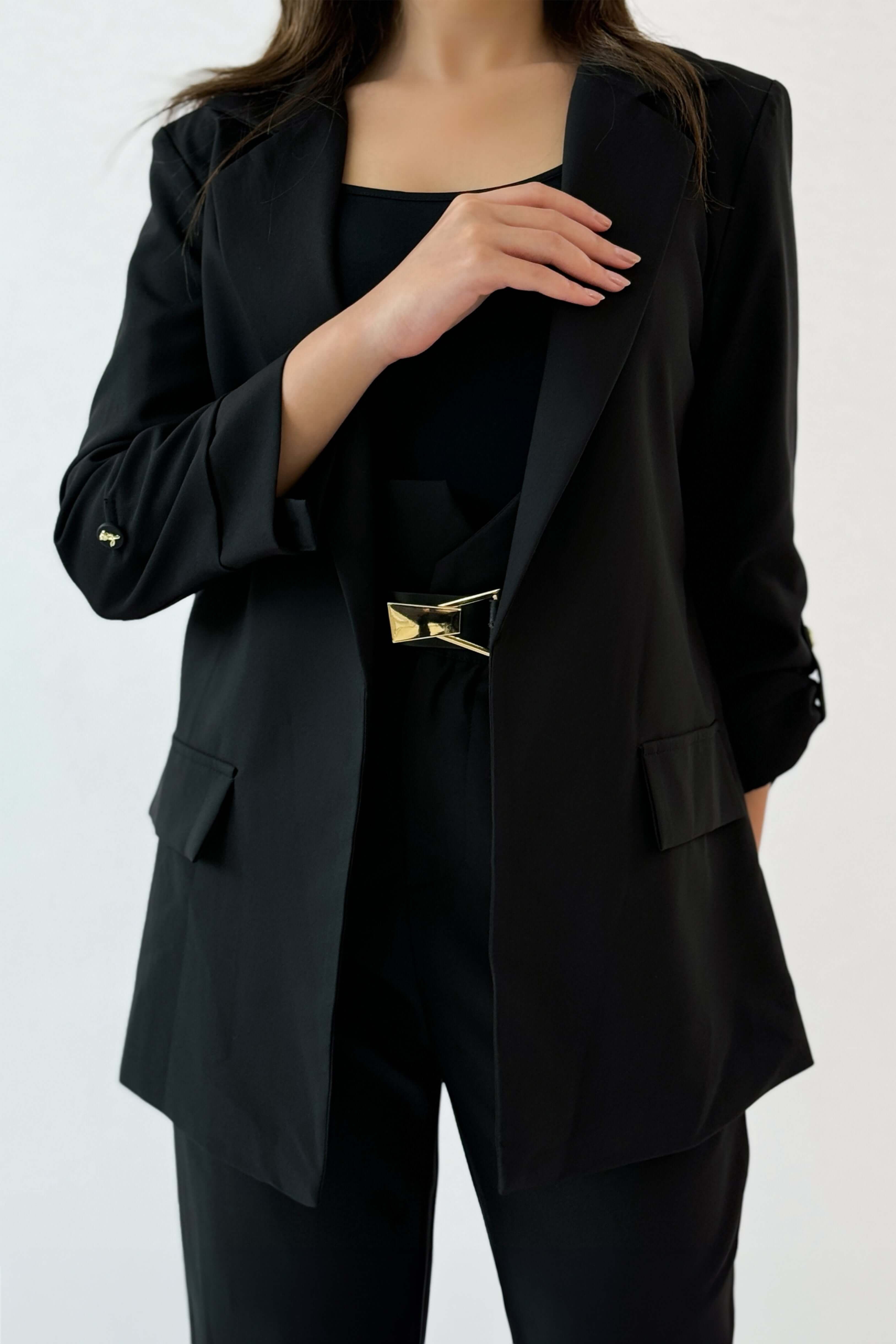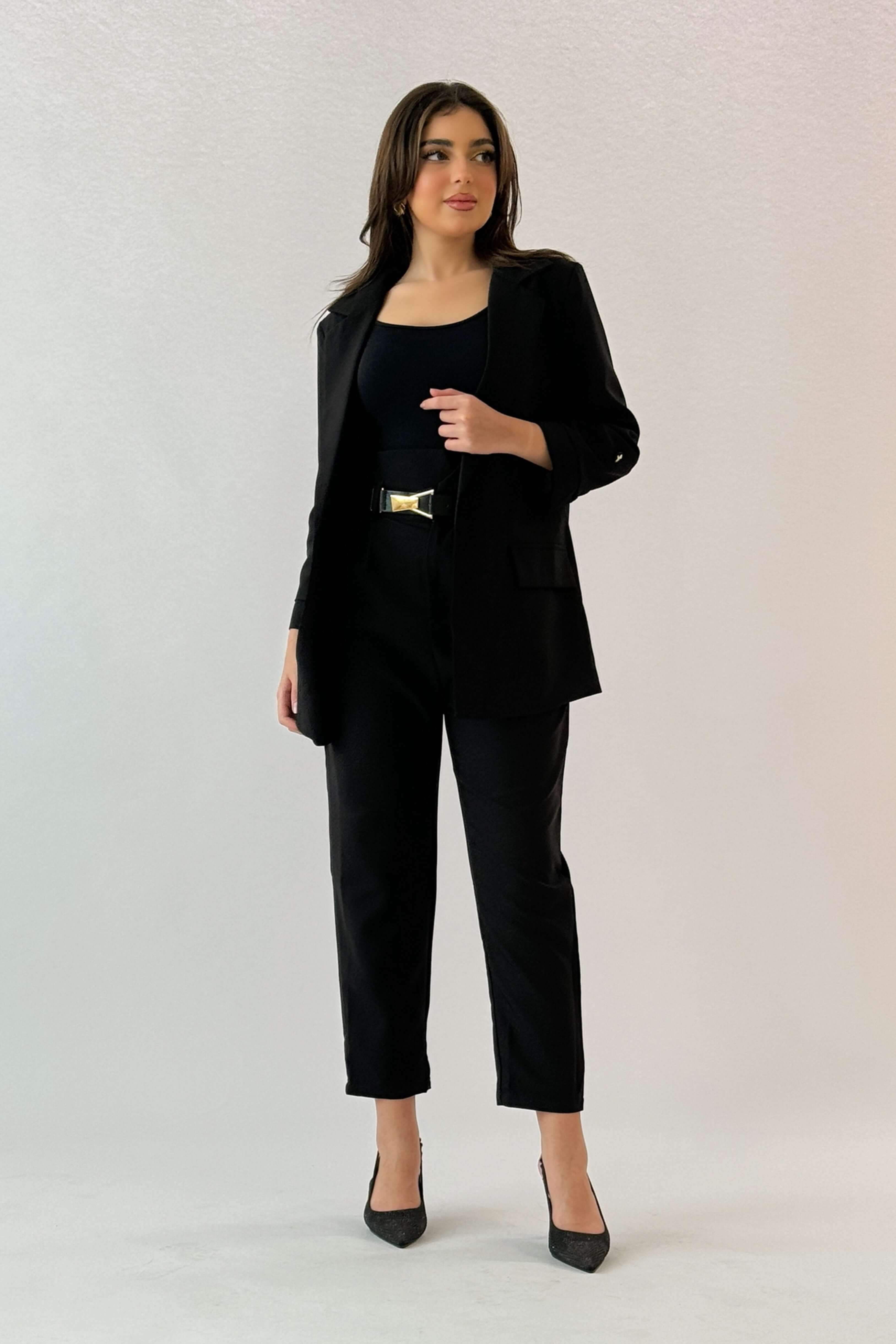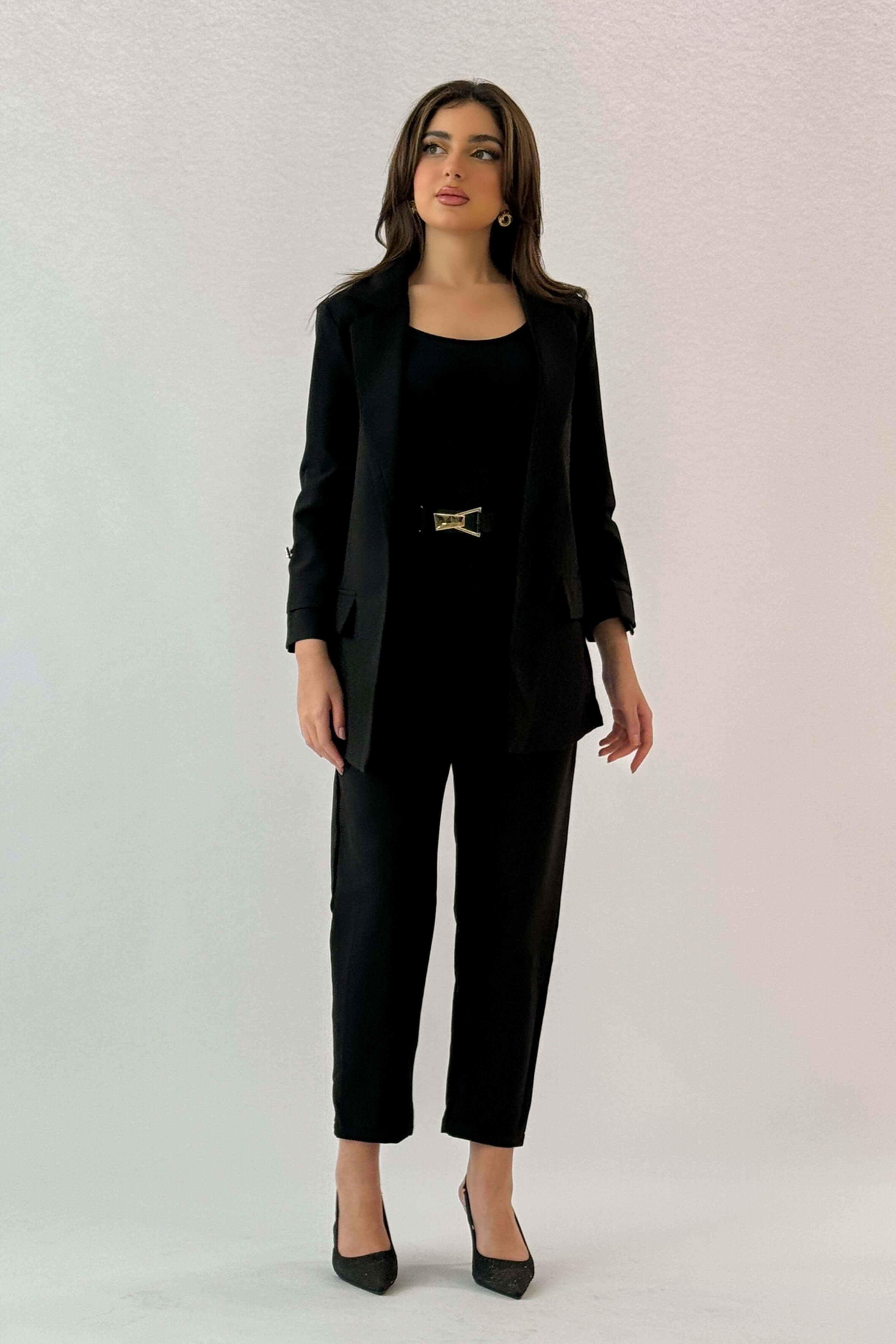 جاكيت رسمي بطية صدر لون اسود