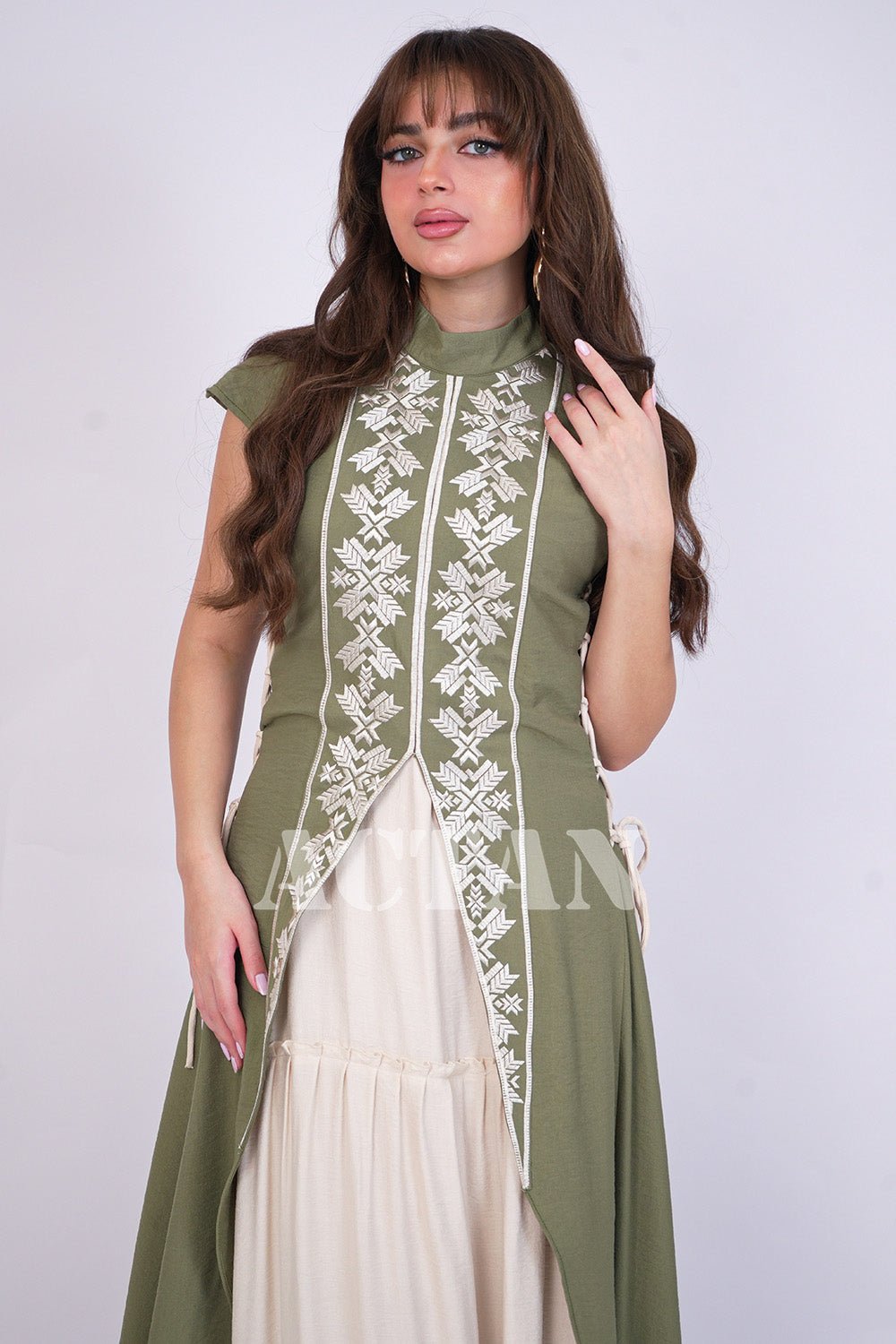 • نوع التصميم: جلابية قطعتين بتطريز هندسي