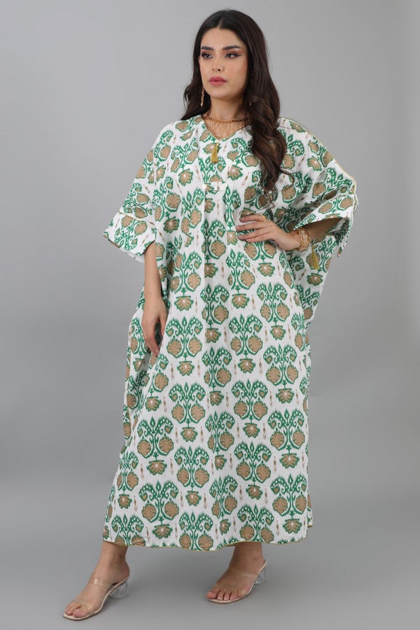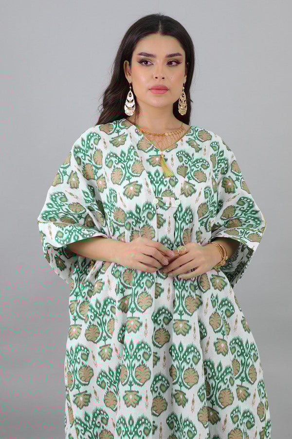 جلابيه بتصميم فراشه بطبعات لون اخضر