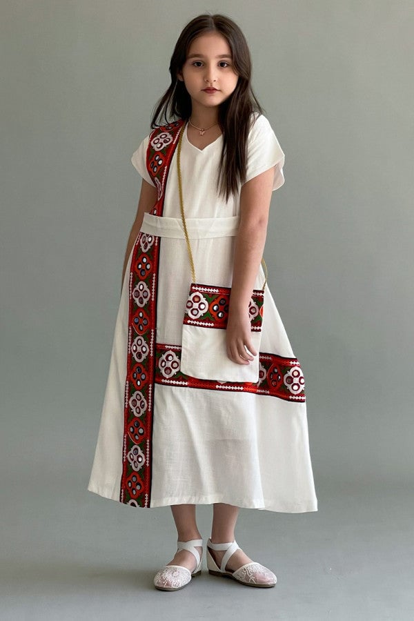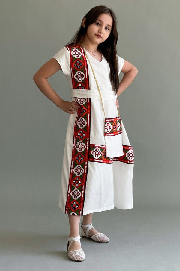 جلابيه بناتي ناعمه مطرزه بالسدو عنابي