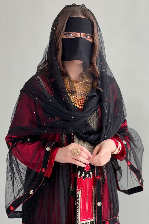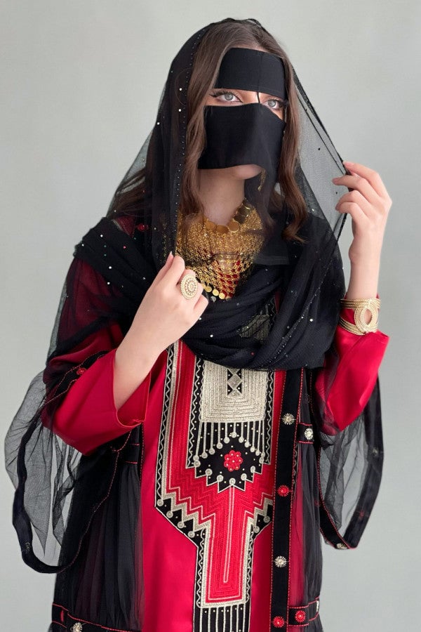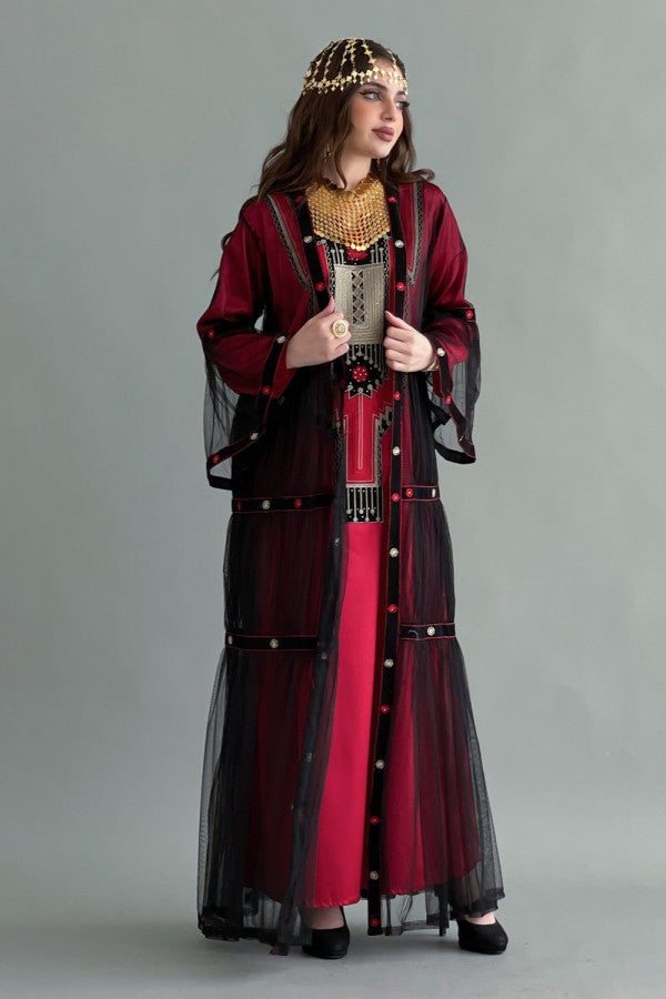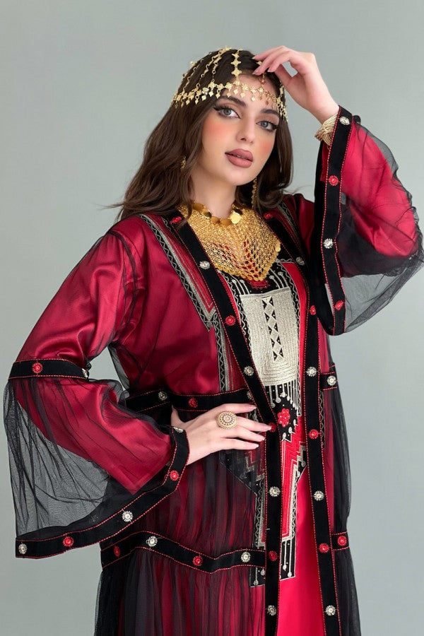جلابيه تراثيه قطعتين مطرزه لون احمر