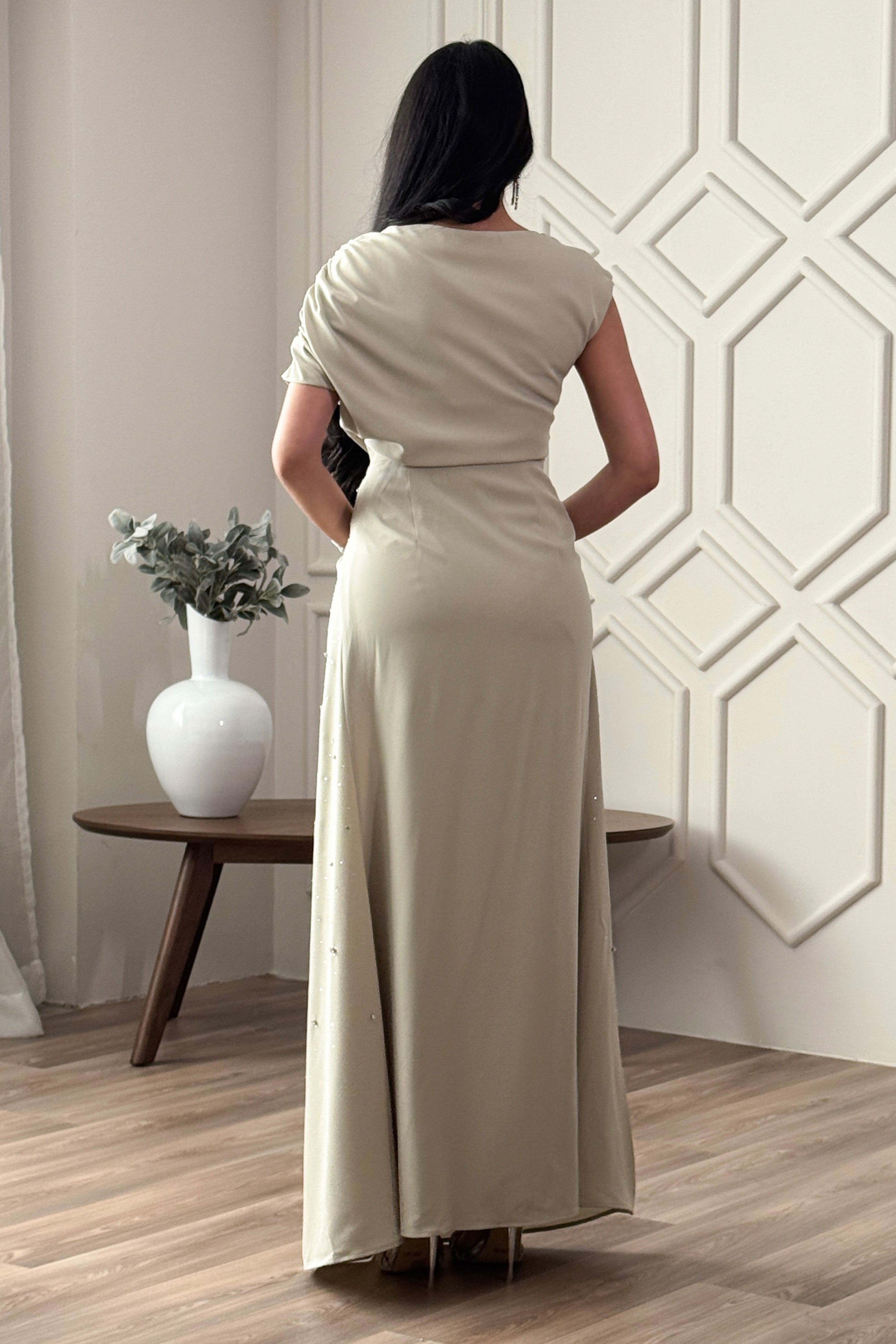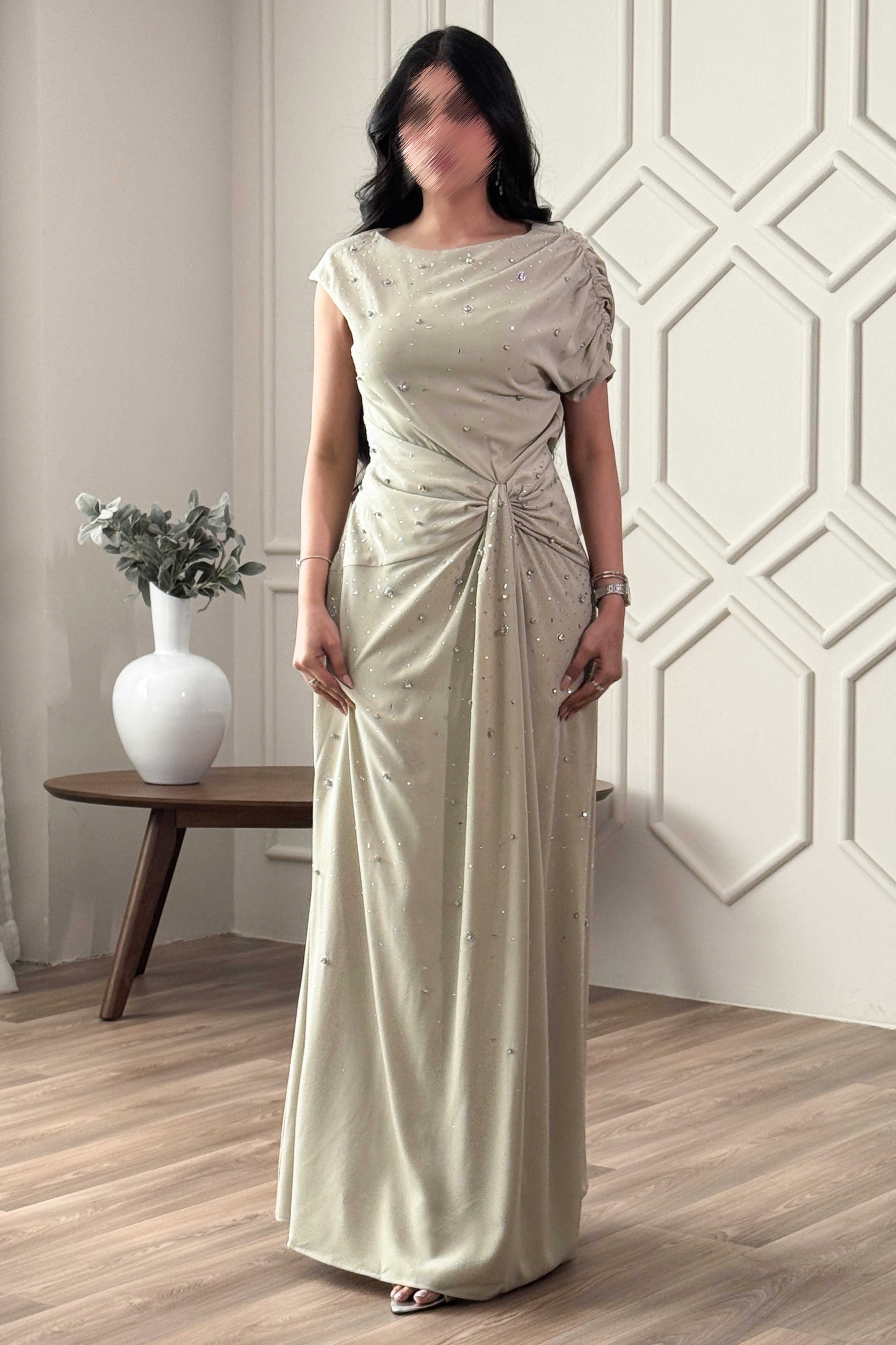 فستان اخضر فاتح سهرة ماكسي بزم مزين بالكريستال