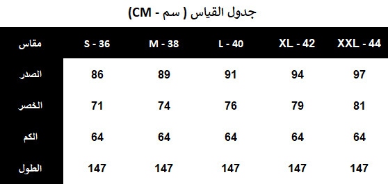 - نوع التصميم: فستان طويل درابيه مزين بالكريستال