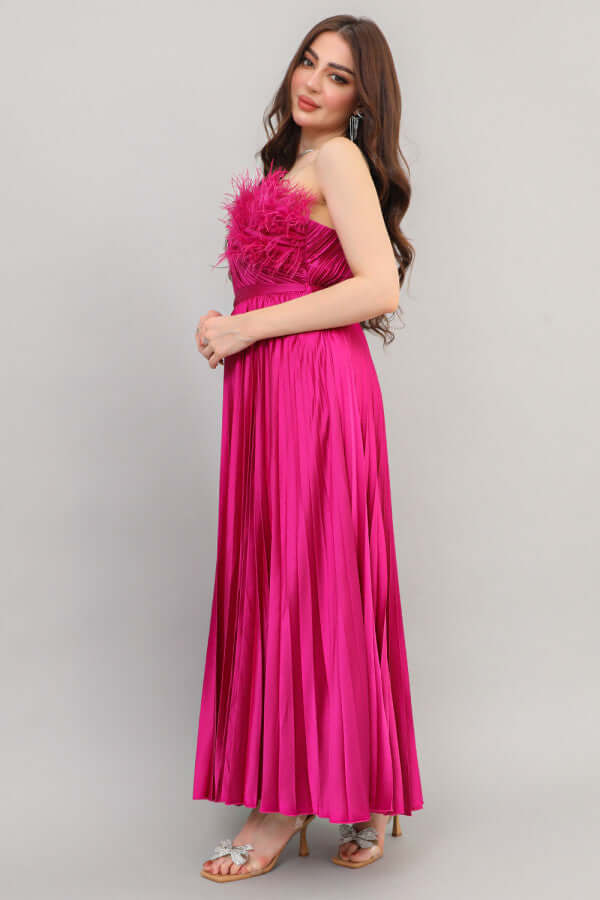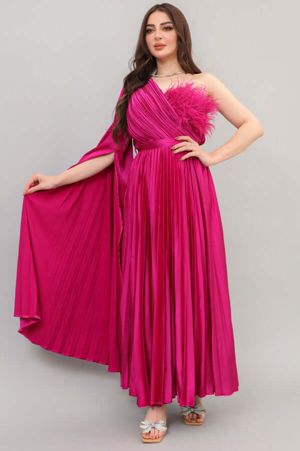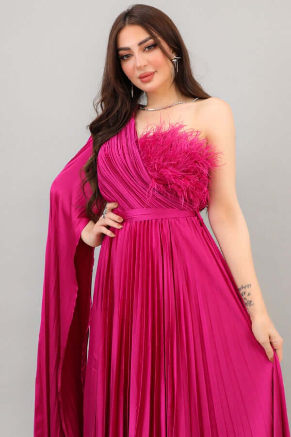فستان بلاسيه بكتف واحد وكم كايب لون فوشي