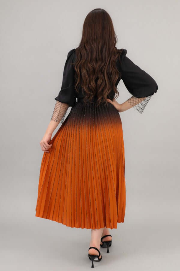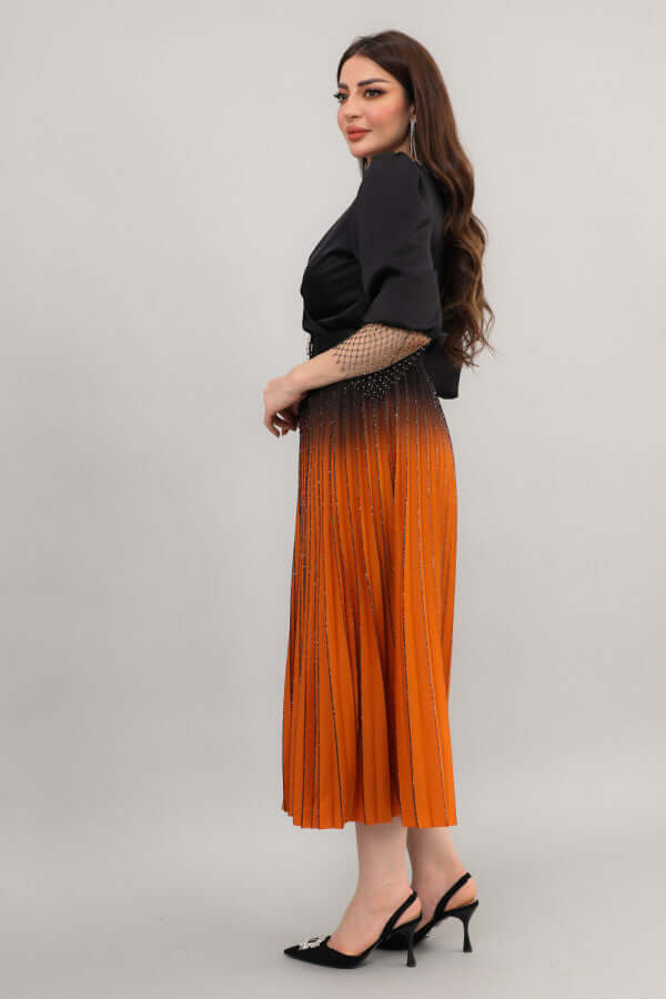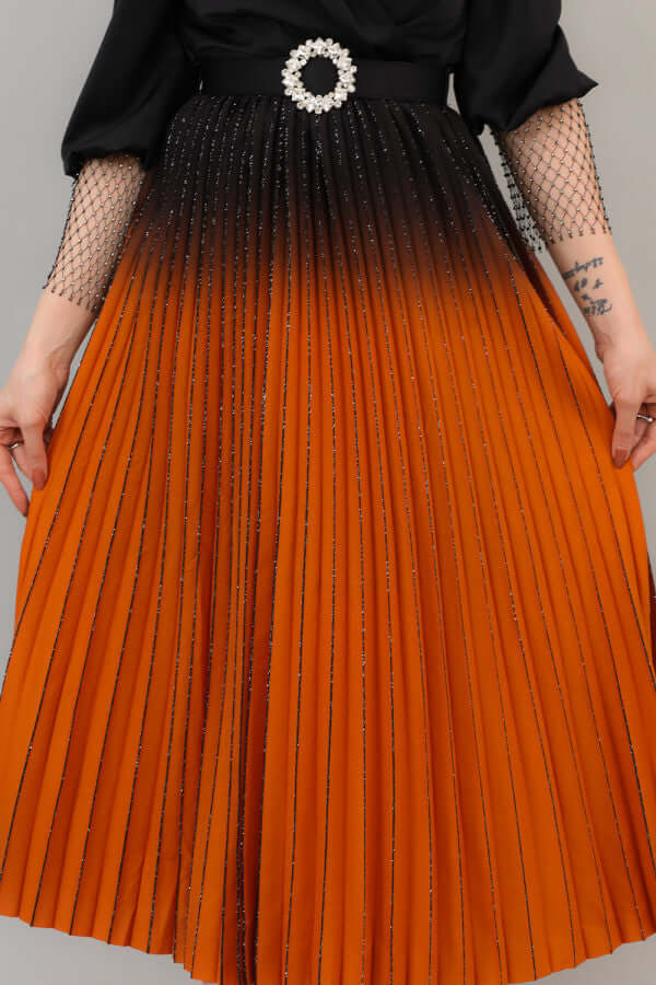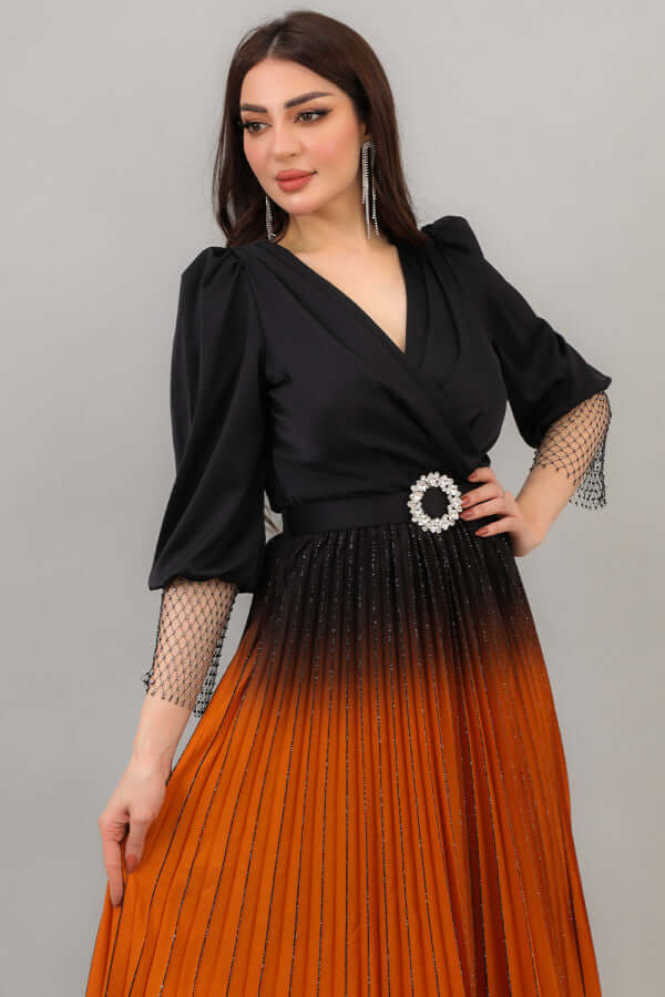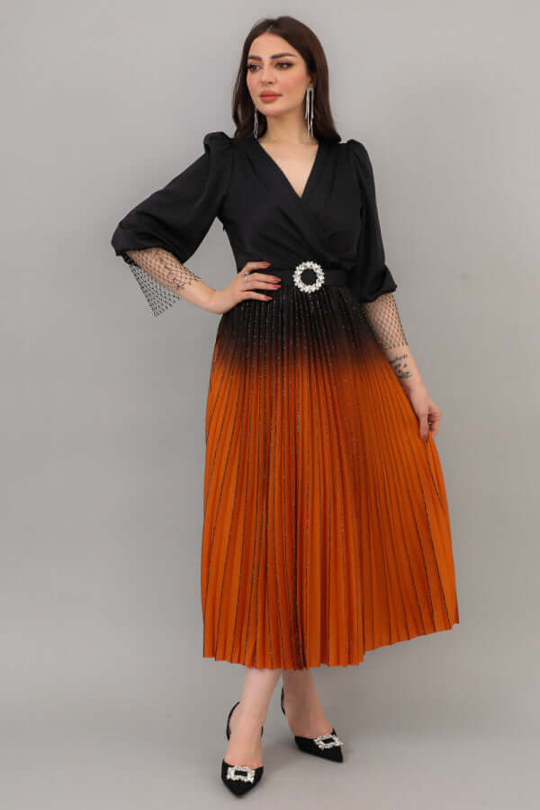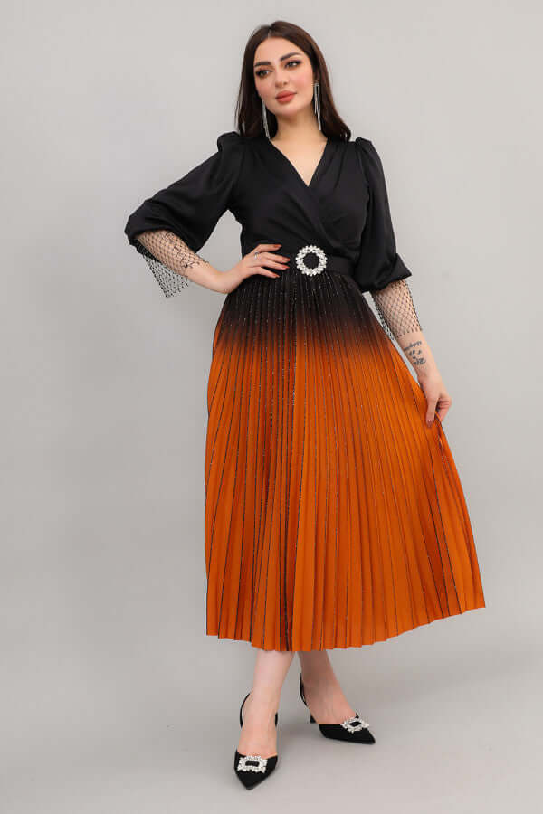 فستان بلاسيه مقصب بالفضي لون برتقالي