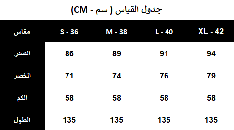 يغسل ويكوى بالبخار بدرجة حرارة منخفضة (40°) ويجفف بالتعليق