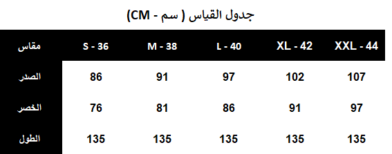 : يُغسل ويُكوى بالبخار بدرجة حرارة منخفضة (40%) ويُجفف بالتعليق