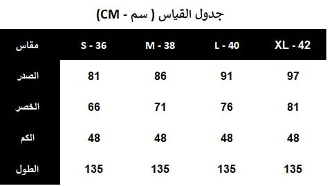 إرشادات العناية: يغسل ويكوى بالبخار بدرجة حرارة منخفضة 40% ويجفف بالتعليق