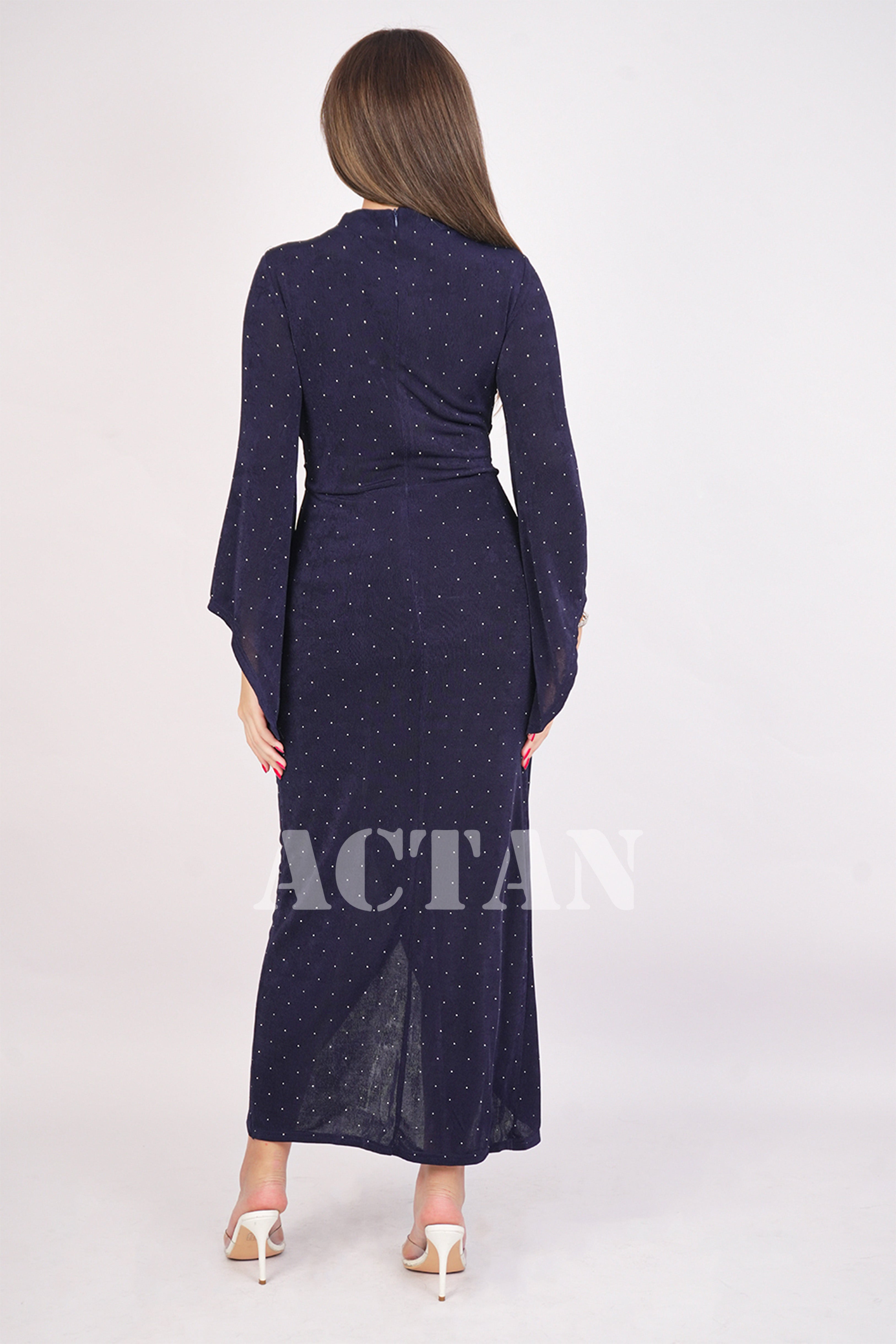 فستان درابية ضيق مزين بفصوص لون كحلي