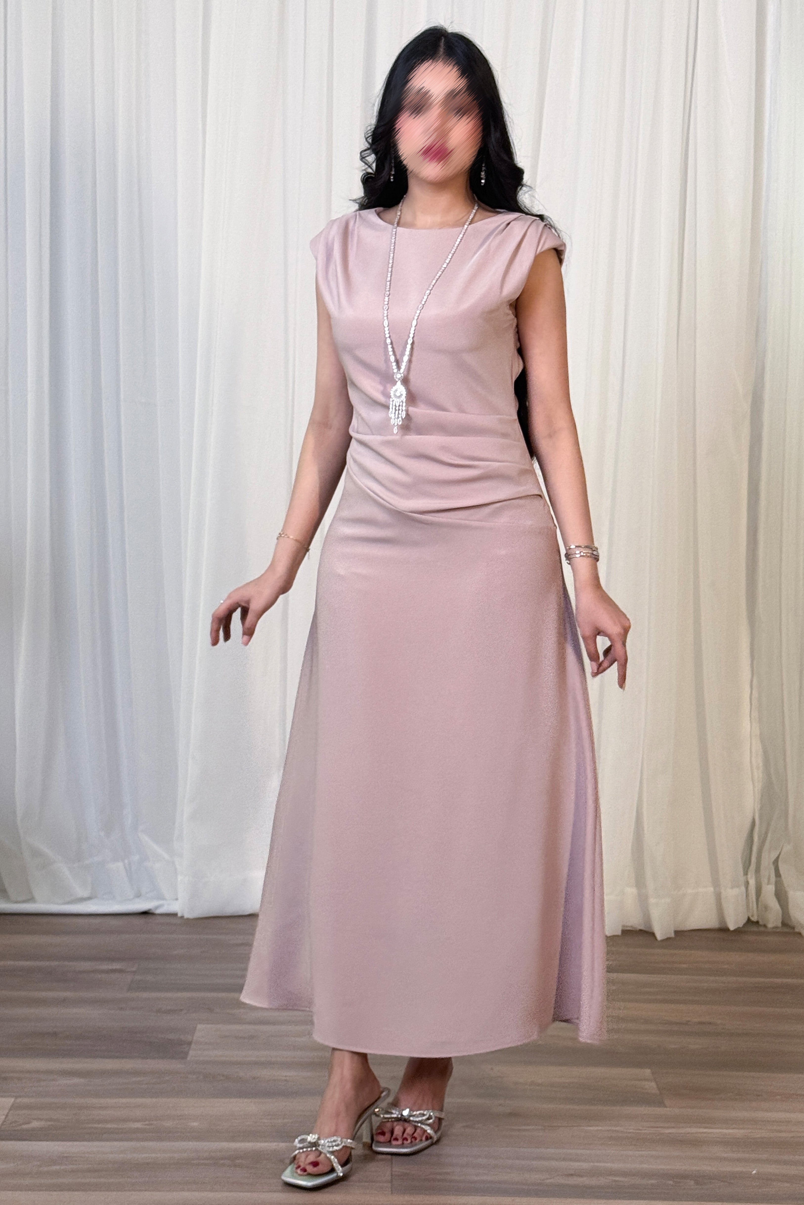فستان درابيه بتأثير ثنيات لون بنفسجي فاتح