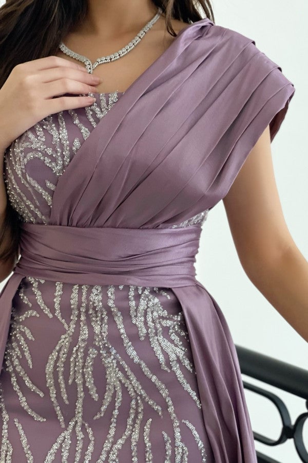 تصميم الدرابيه من الخصر يبرز قوامكِ بشكل أنيق، مما يجعله خيارًا مثاليًا للسهرات، الحفلات والمناسبات الخاصة.