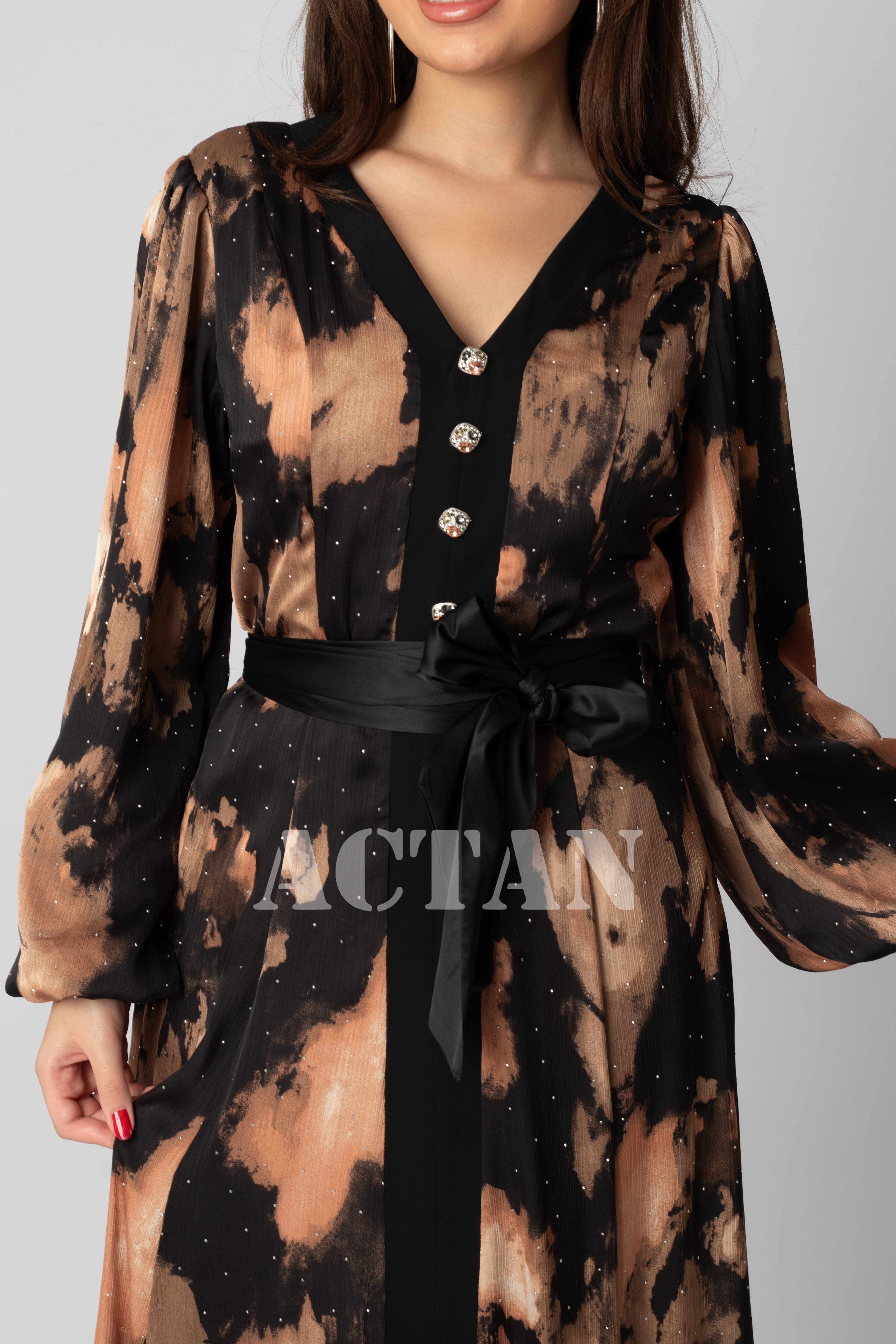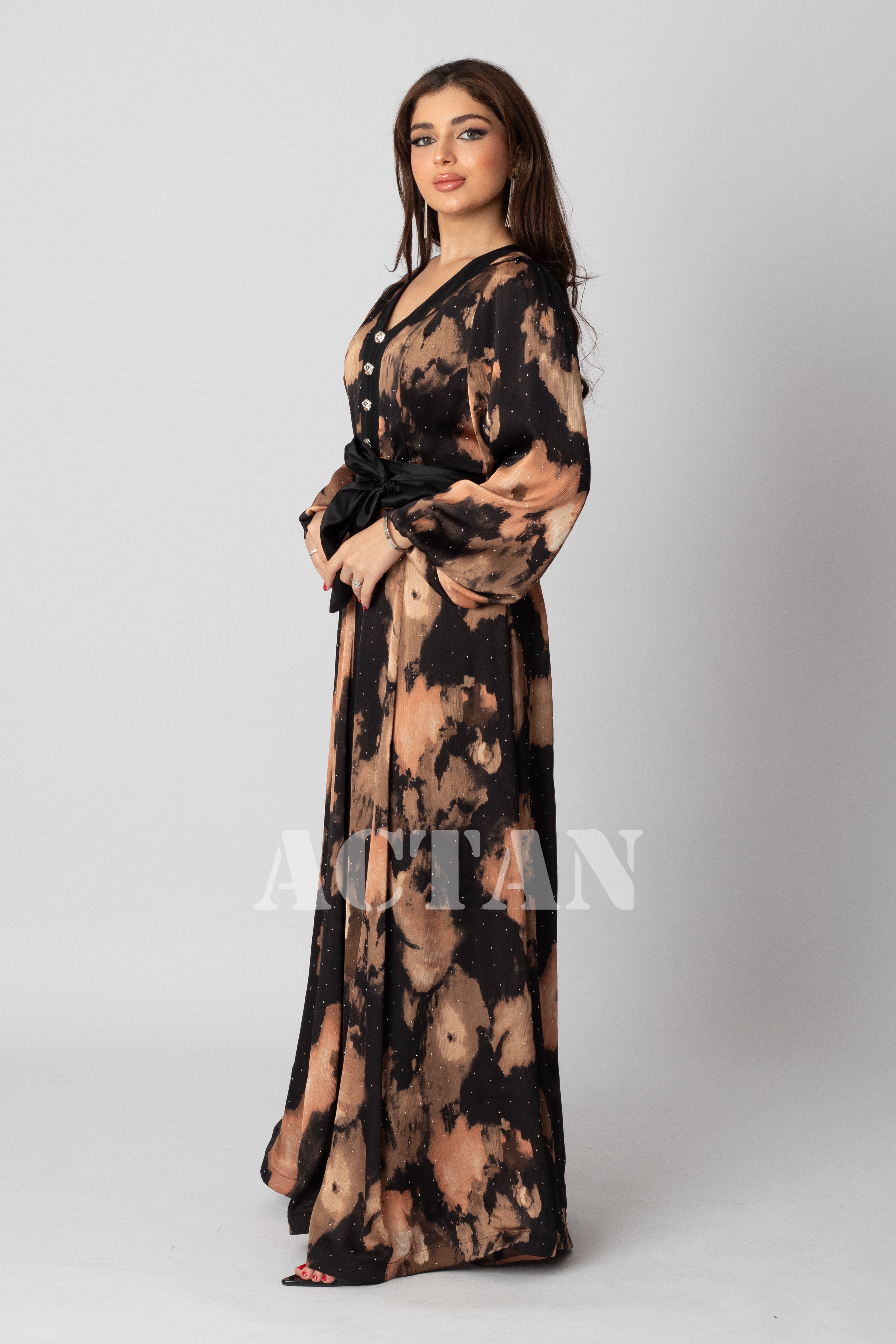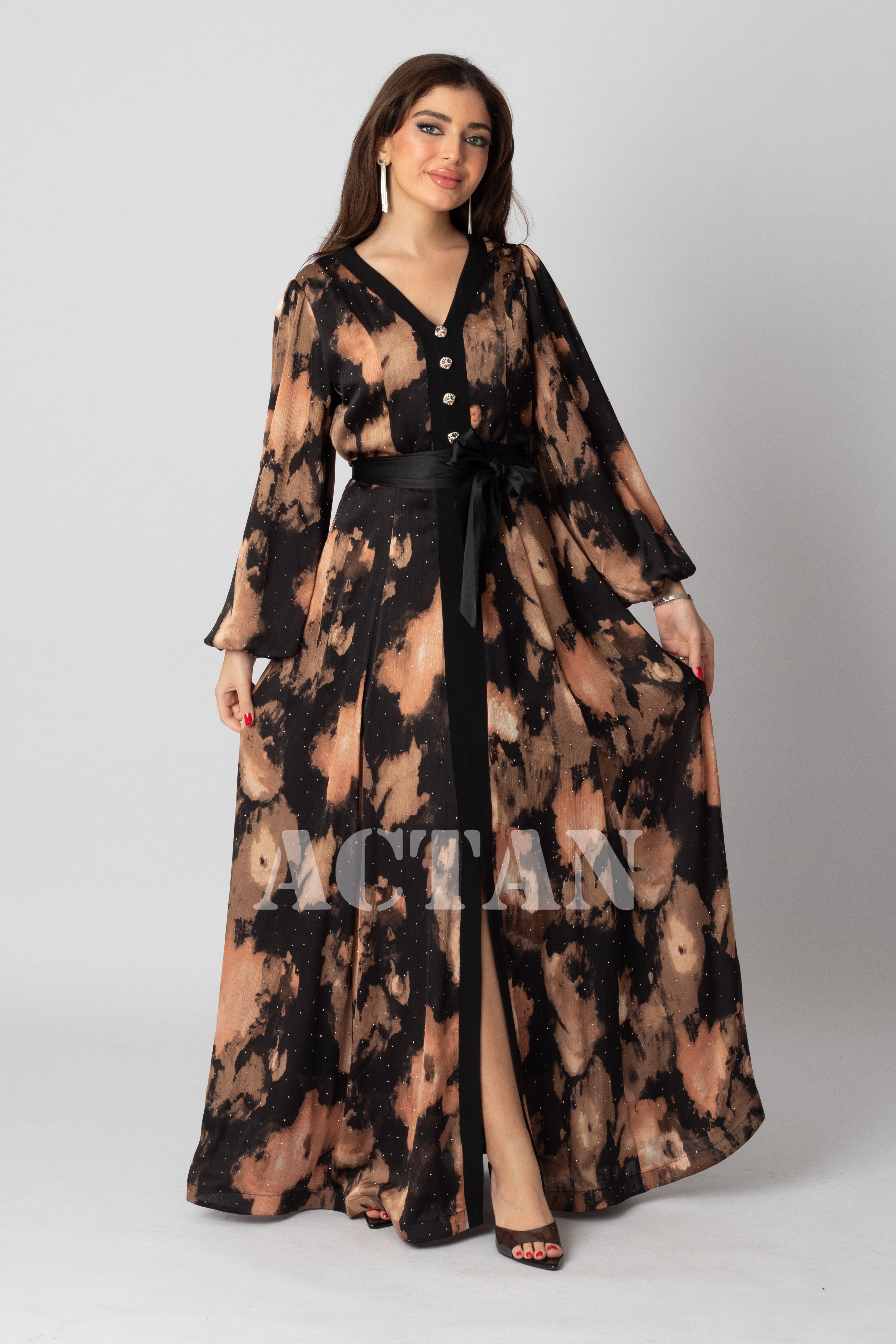نوع التصميم فستان شيفون طويل كلوش نوع القصة فستان شيفون طويل كلوش برباط عالخصر مزين بفصوص المناسبه خروج عام او مناسابات خاصة الخصر ضيق برباط الياقه V الاكمام طويلة التمدد غير قابل للتمدد الخامة شيفون الإضافات رباط إرشادات العناية يغسل ويكوى بالبخار بدرجة حراره منخفضه 40-بالمئه ويجفف بالتعليق