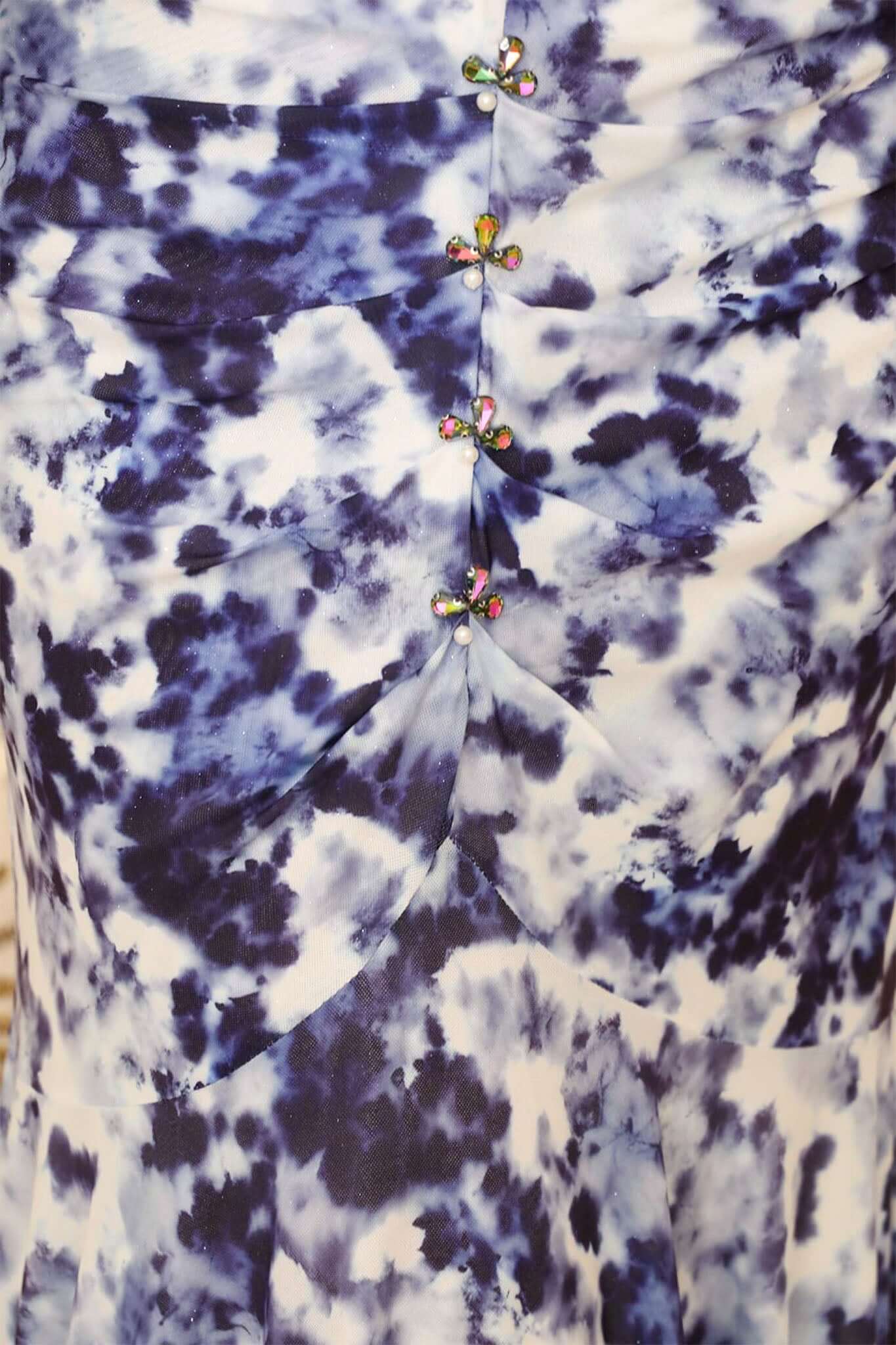 فستان طويل درابيه مزين بكريستال لون ازرق