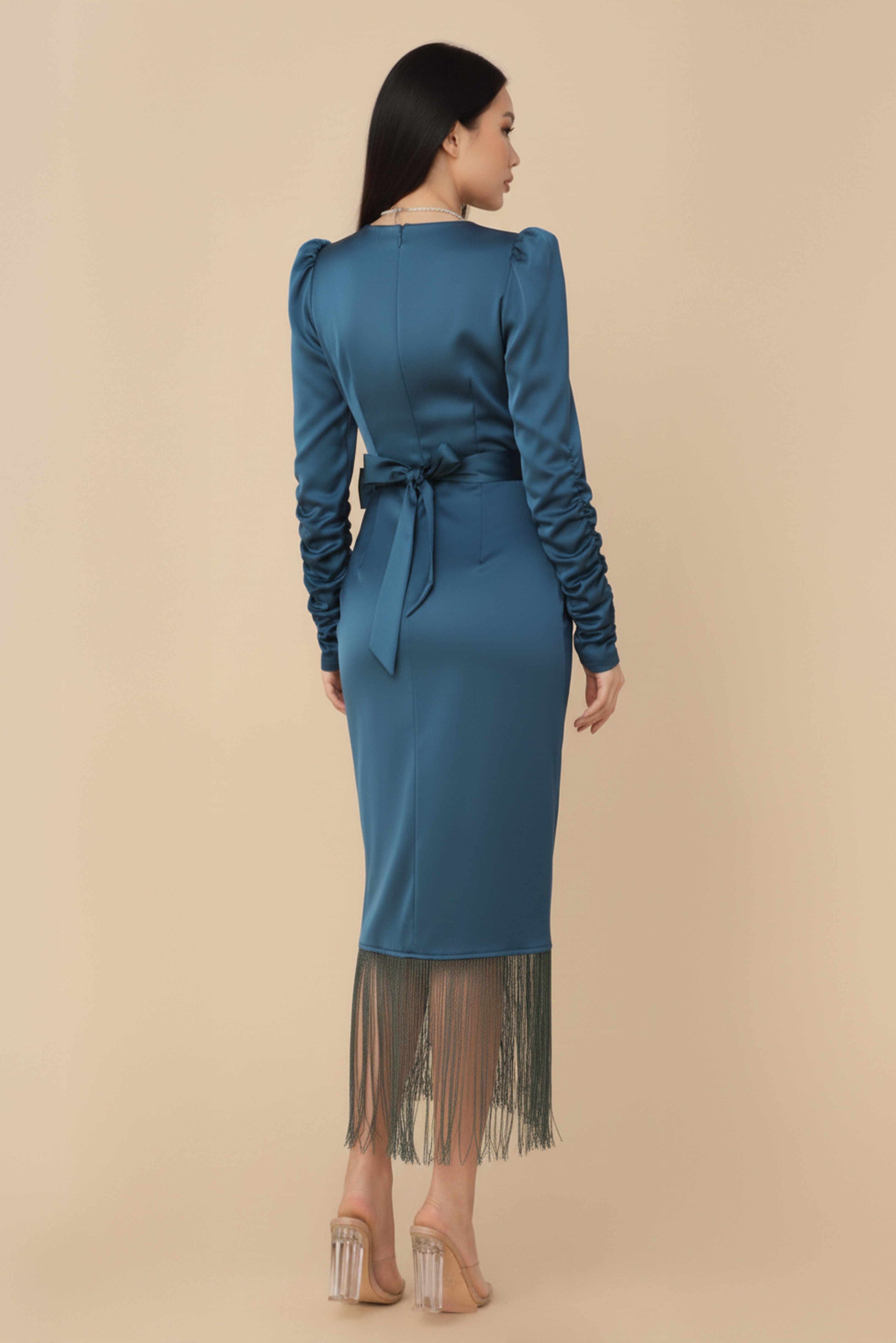 الخامة بوليستر نوع التصميم فستان يتصميم طيات وشراشيب كريستال نوع القصة قصير بطيات مزمومه وياقه v لف بكم طويل مزمزم وشراشيب كريستال المناسبة خروج عام الخصر قصة خصر ضيق الياقة v الاكمام طويله التمدد غير قابل لتمدد ارشادات العناية يغسل ويكوى بالبخار بدرجة حراره منخفضه 40 طول المودل