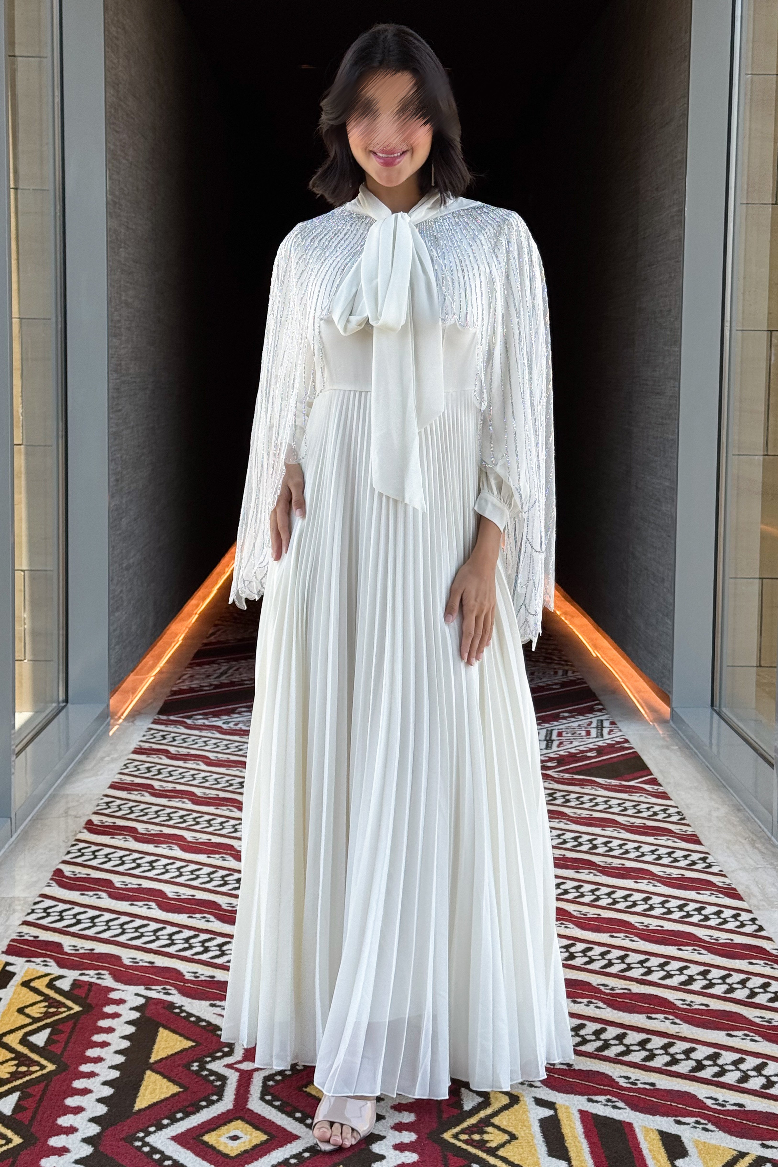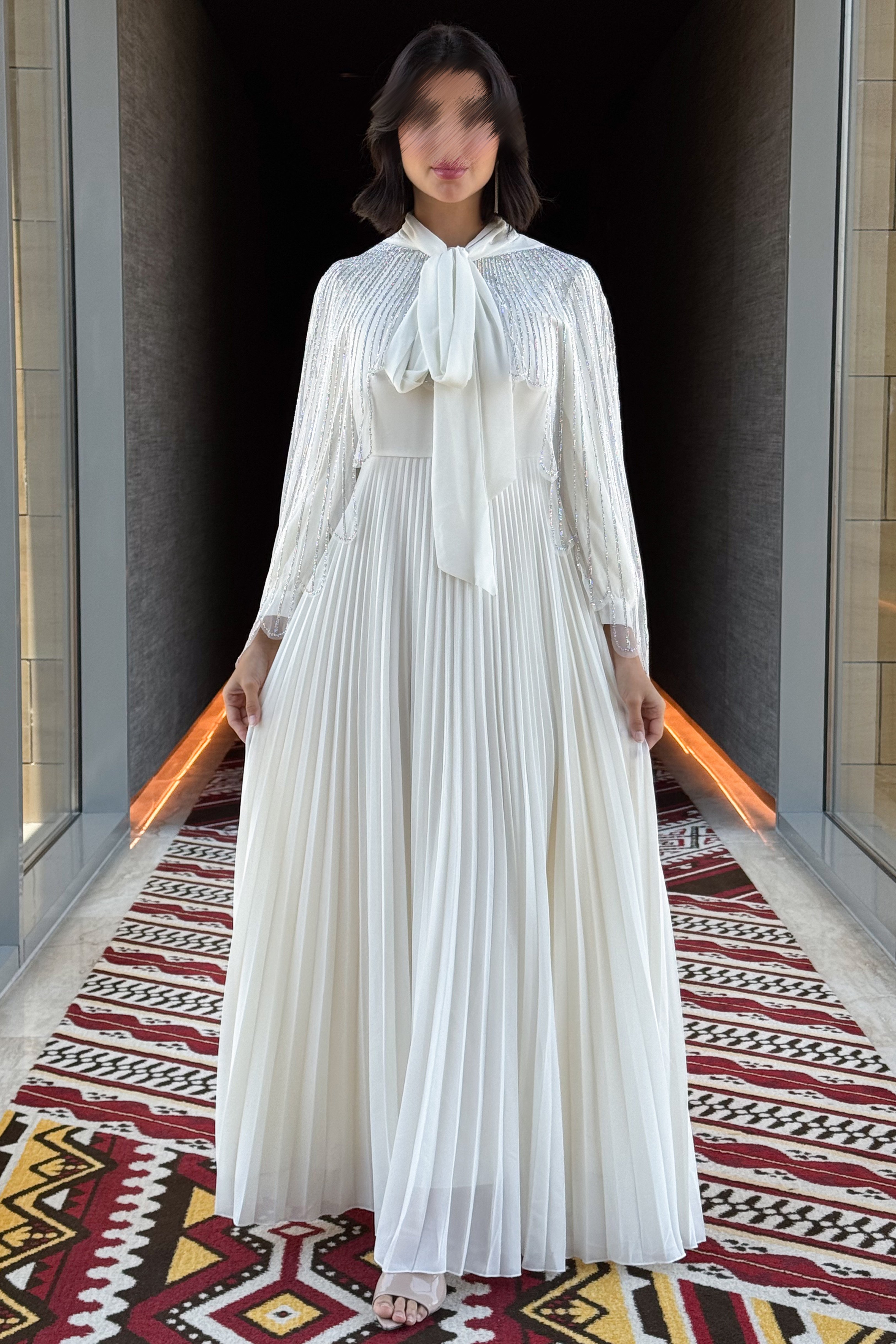 نوع القصة: فستان بليسيه طويل، قطعتين مزين بالفصوص