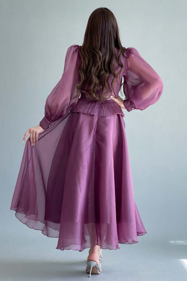فستان كلوش مزين بريش ولولو عالصدر لون موف