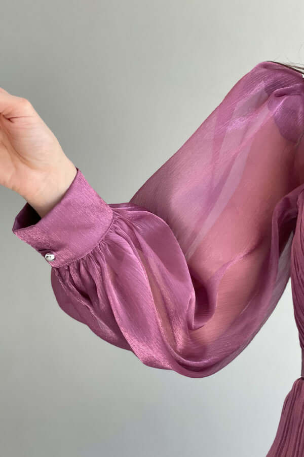 • الأكمام: طويلة، مزينة بريش ولولو