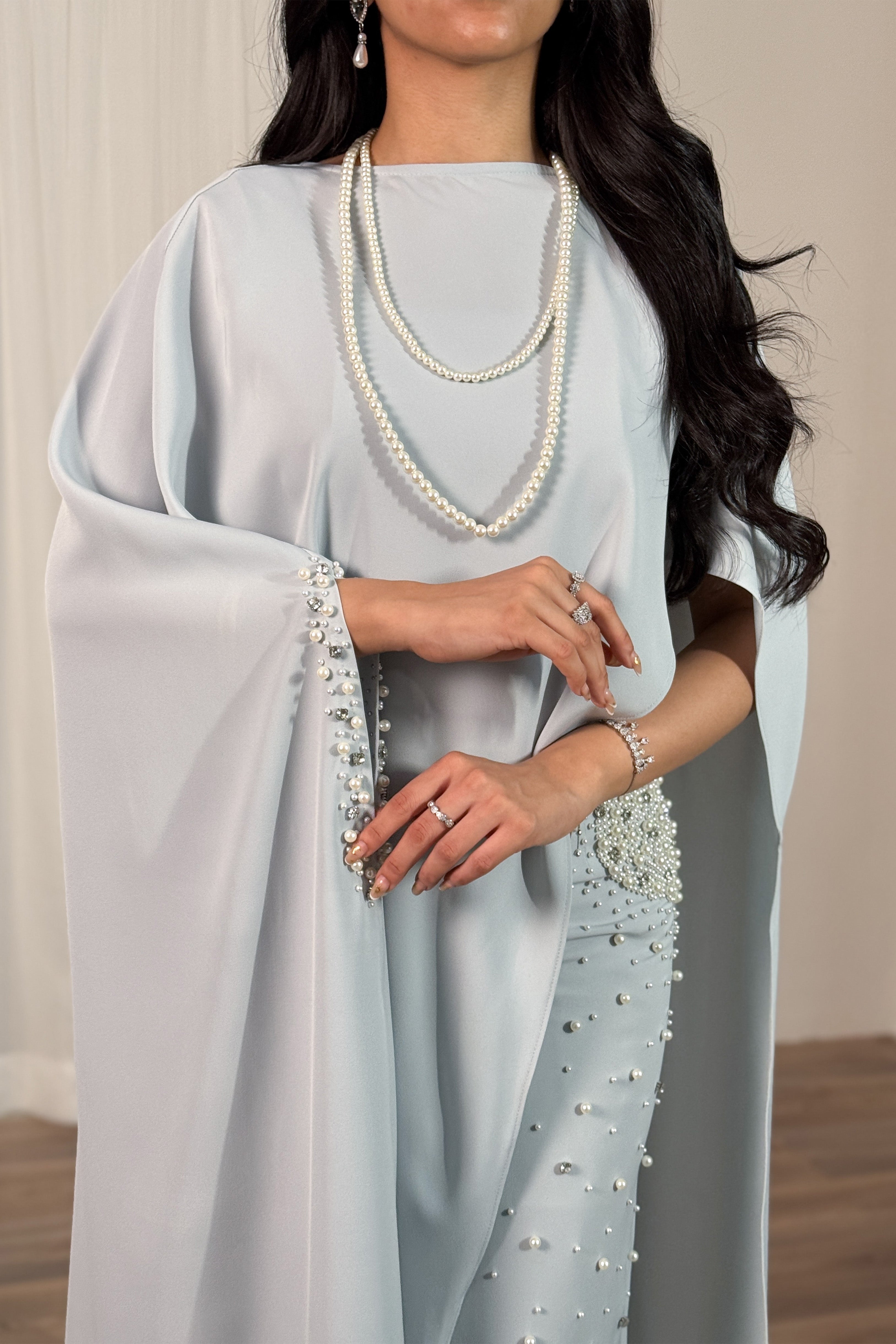 فستان كيب قطعتين مزين بالكريستال واللؤلؤ