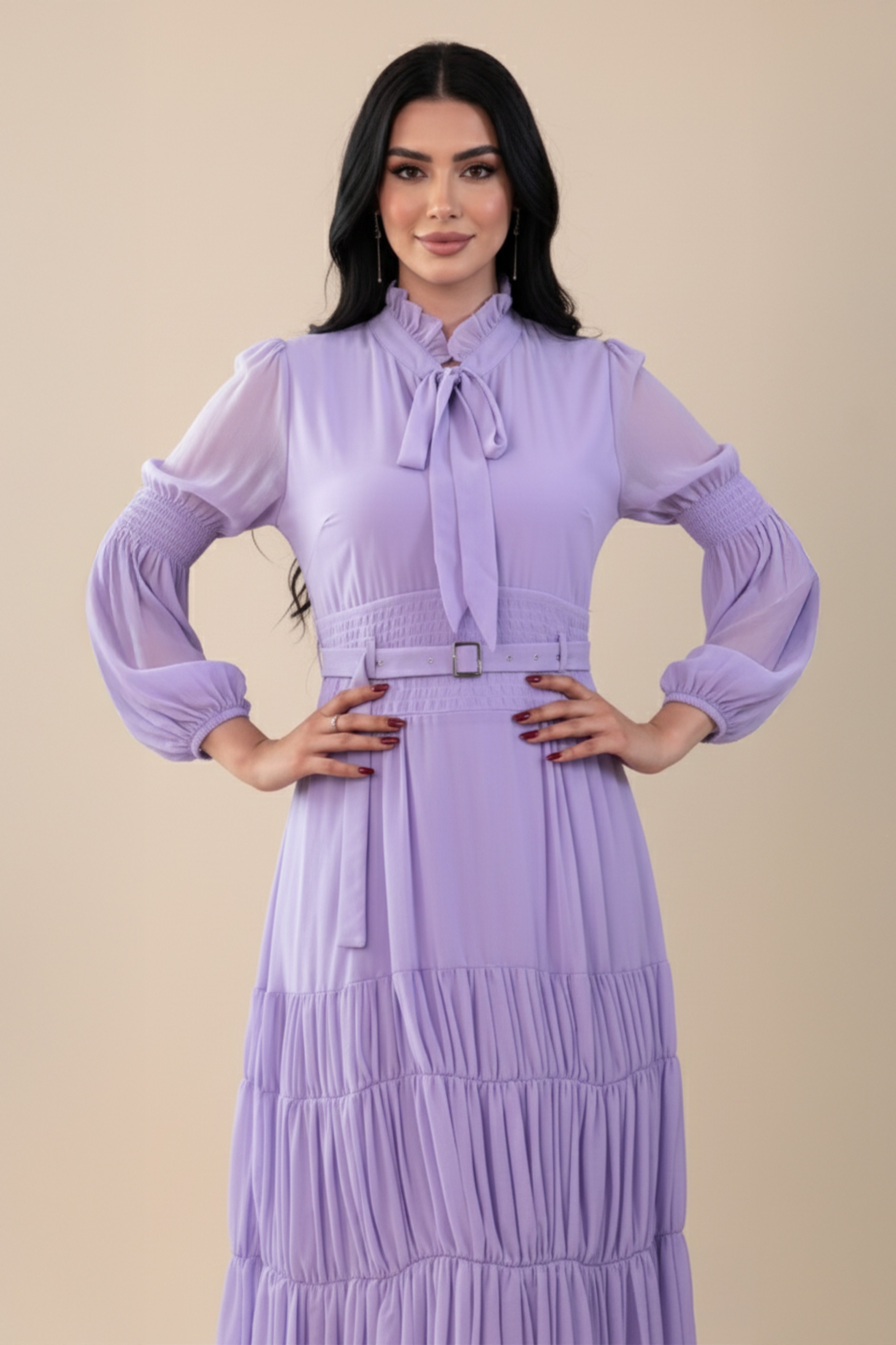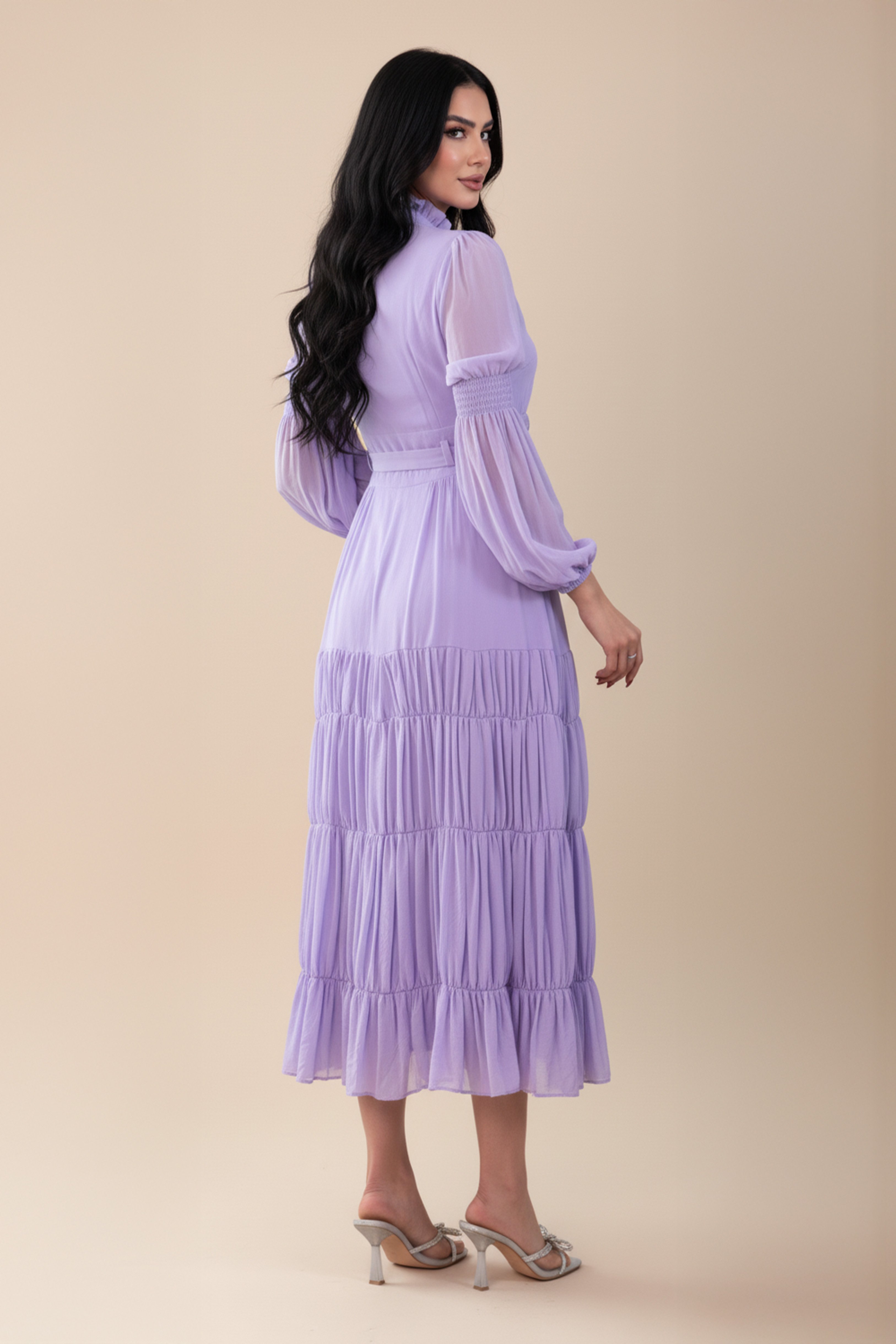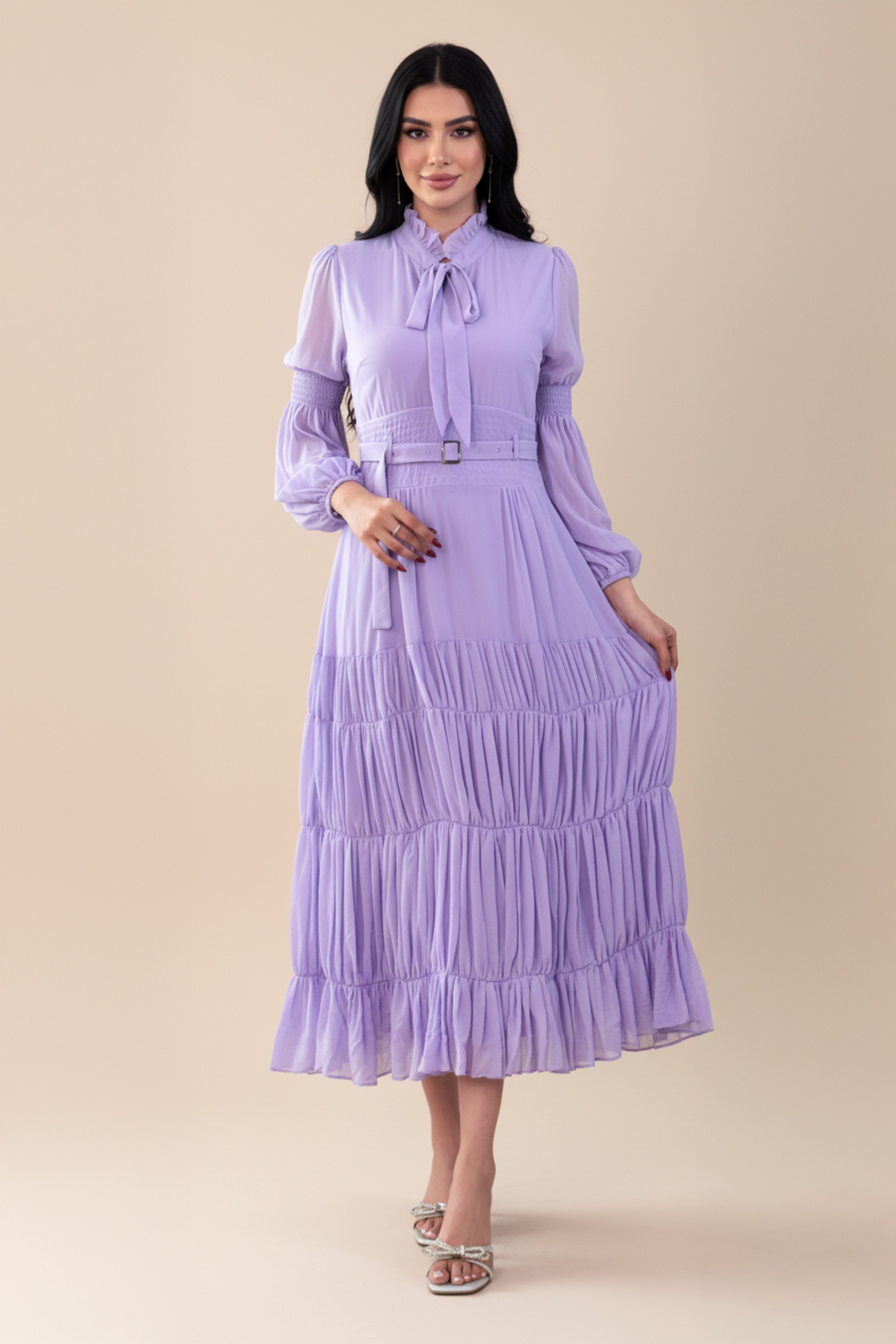 فستان لافندر ميدي بحزام خصر