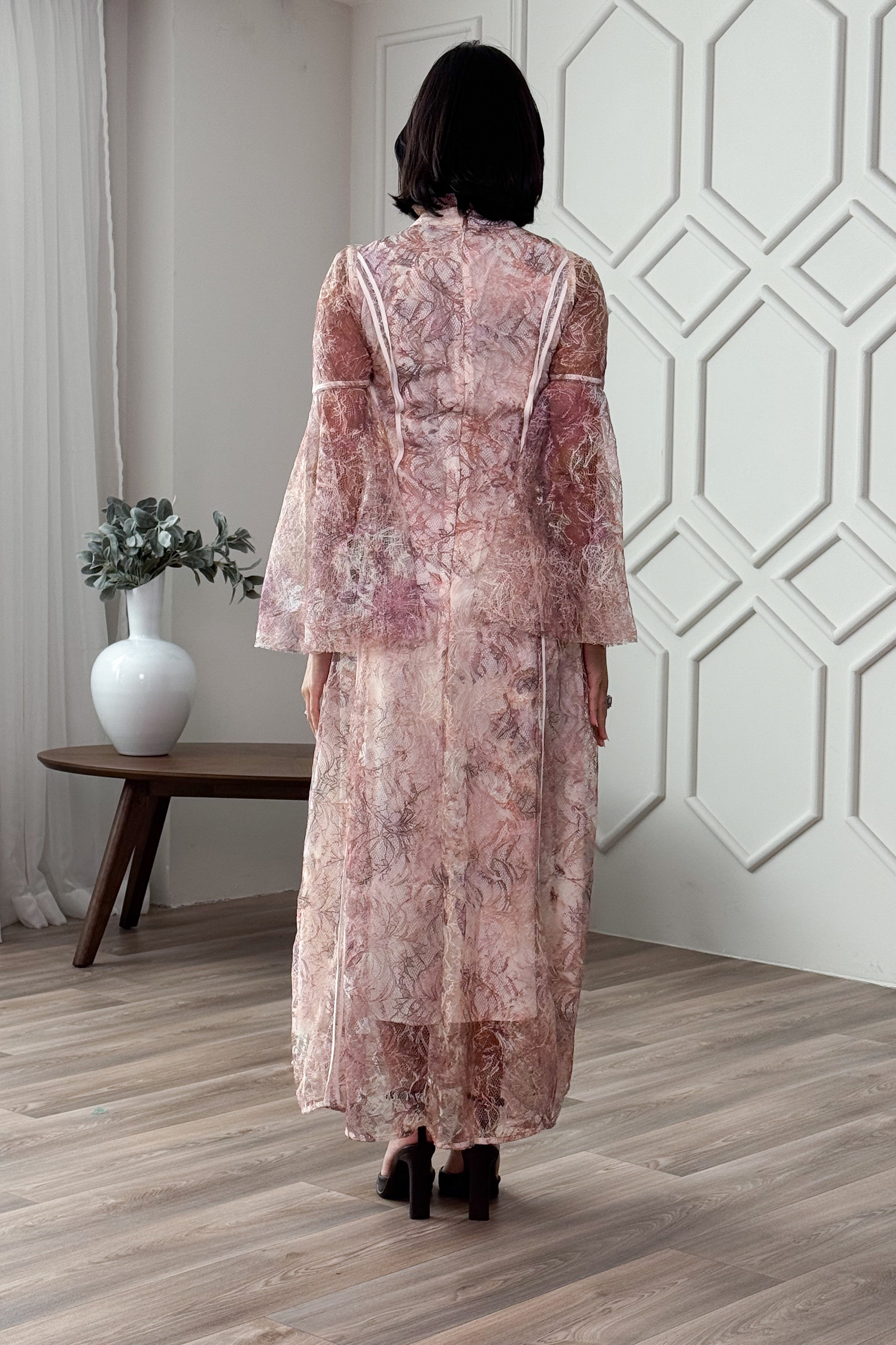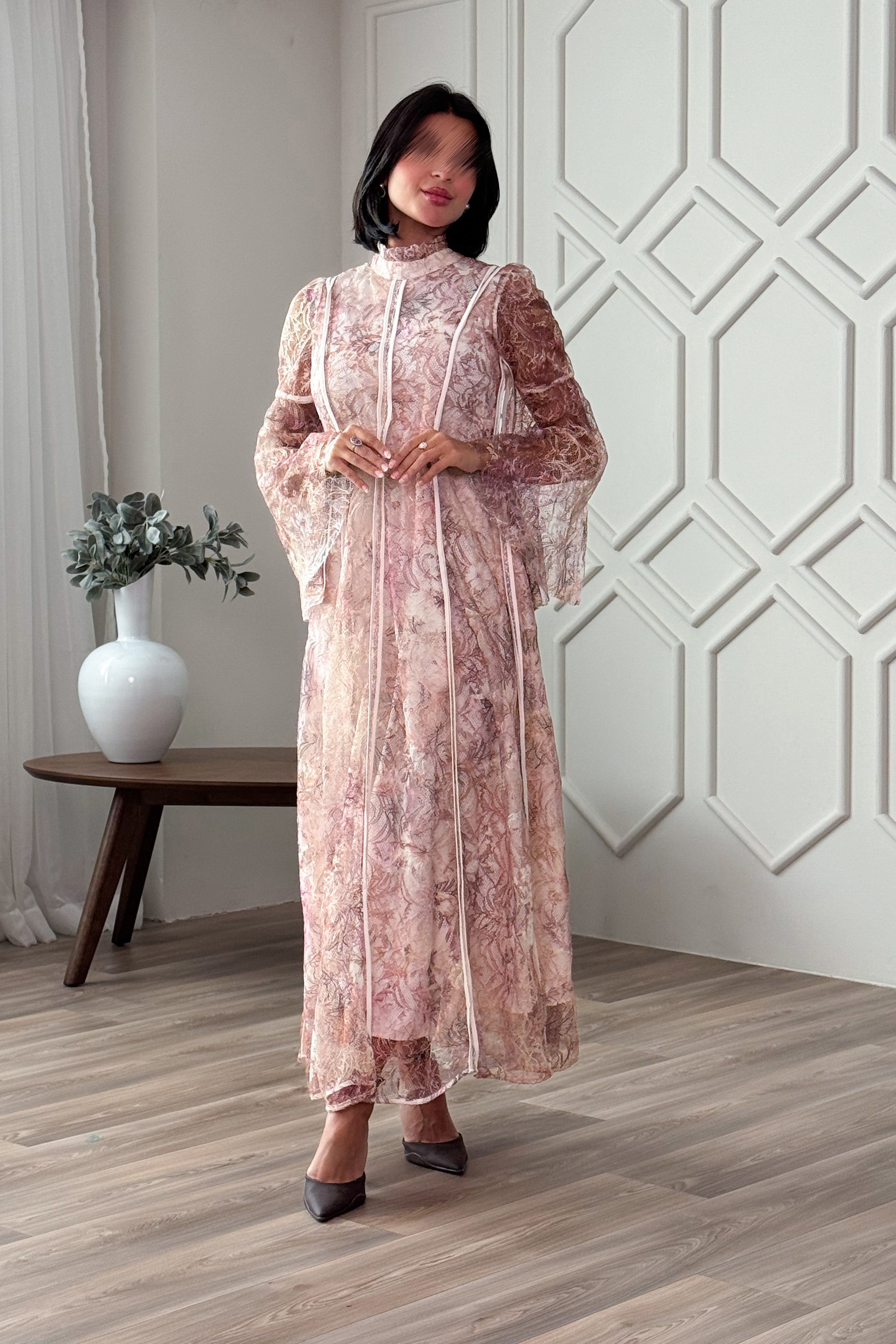 فستان ماكسي باكمام واسعة ودانتيل زهور