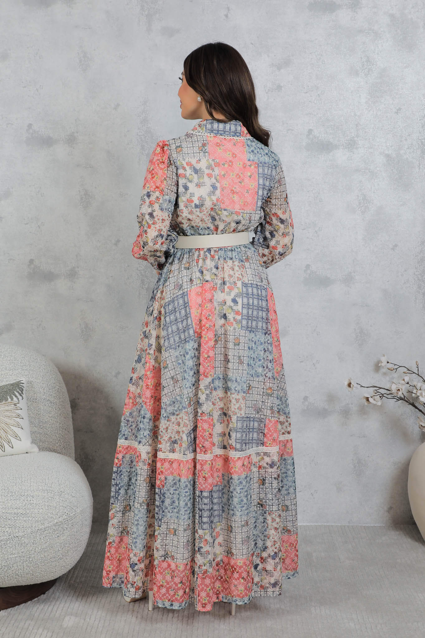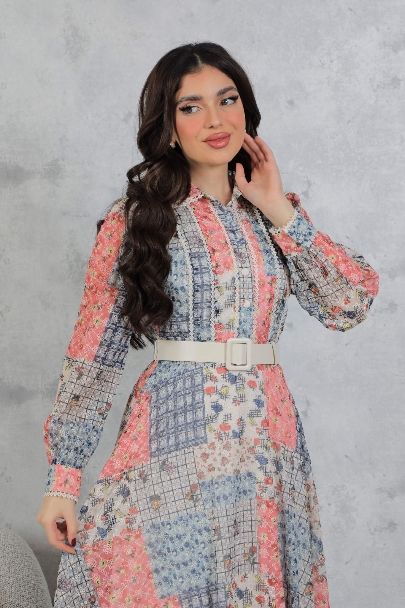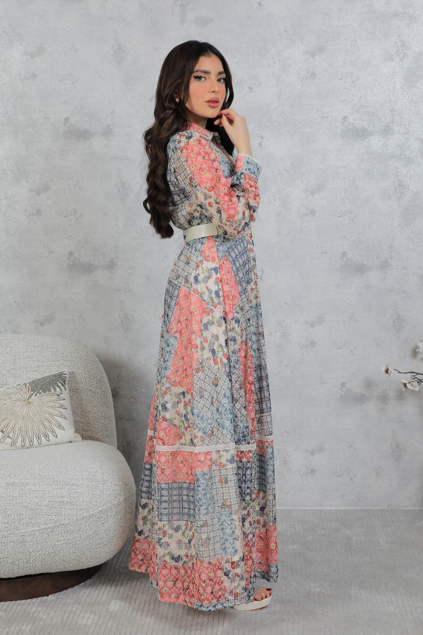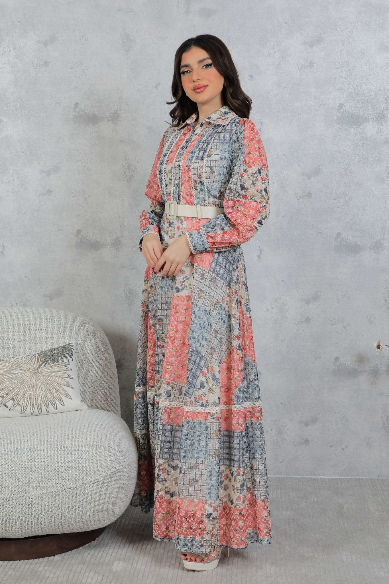 - نوع القصة: فستان ماكسي بطبعة أزهار مع حزام