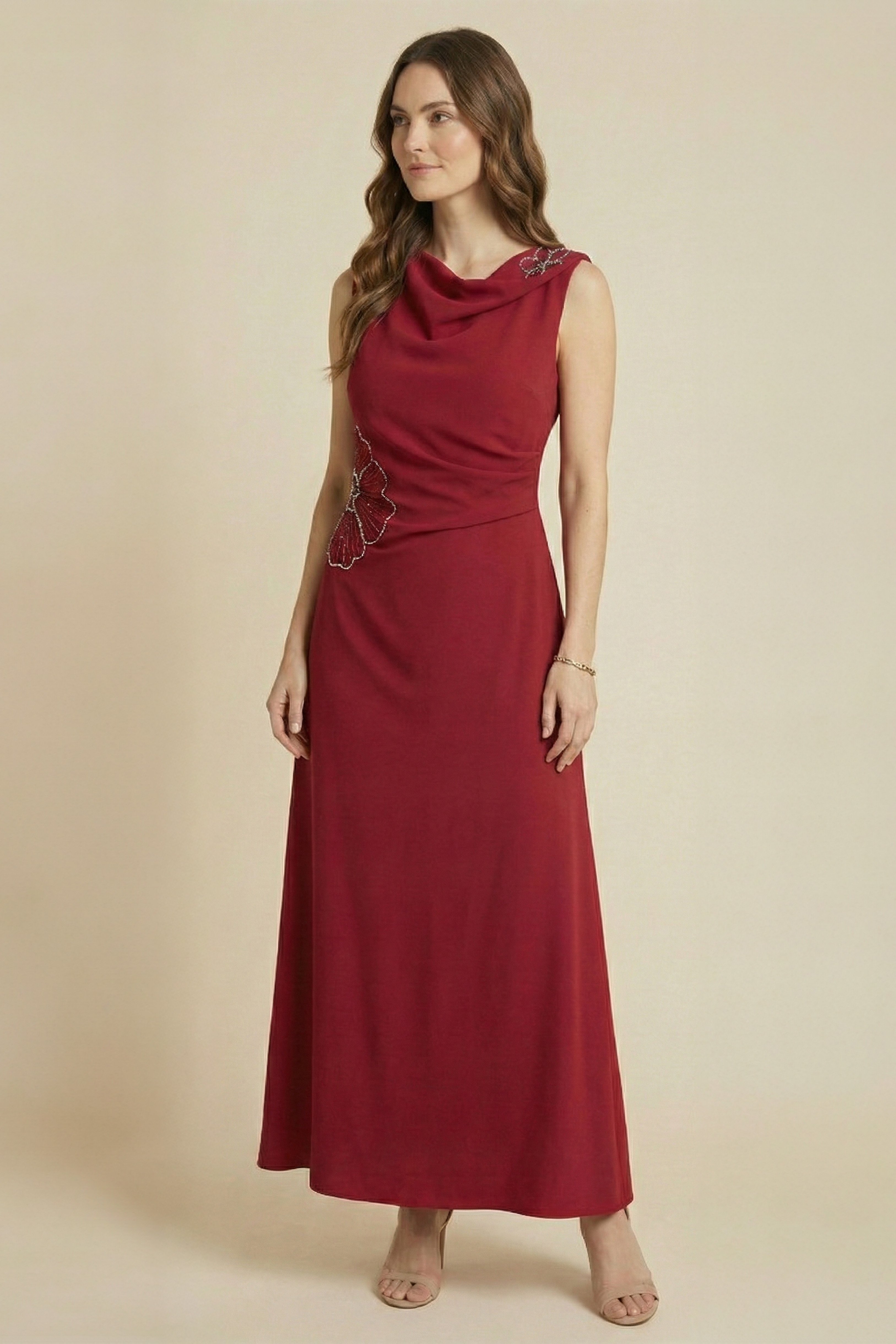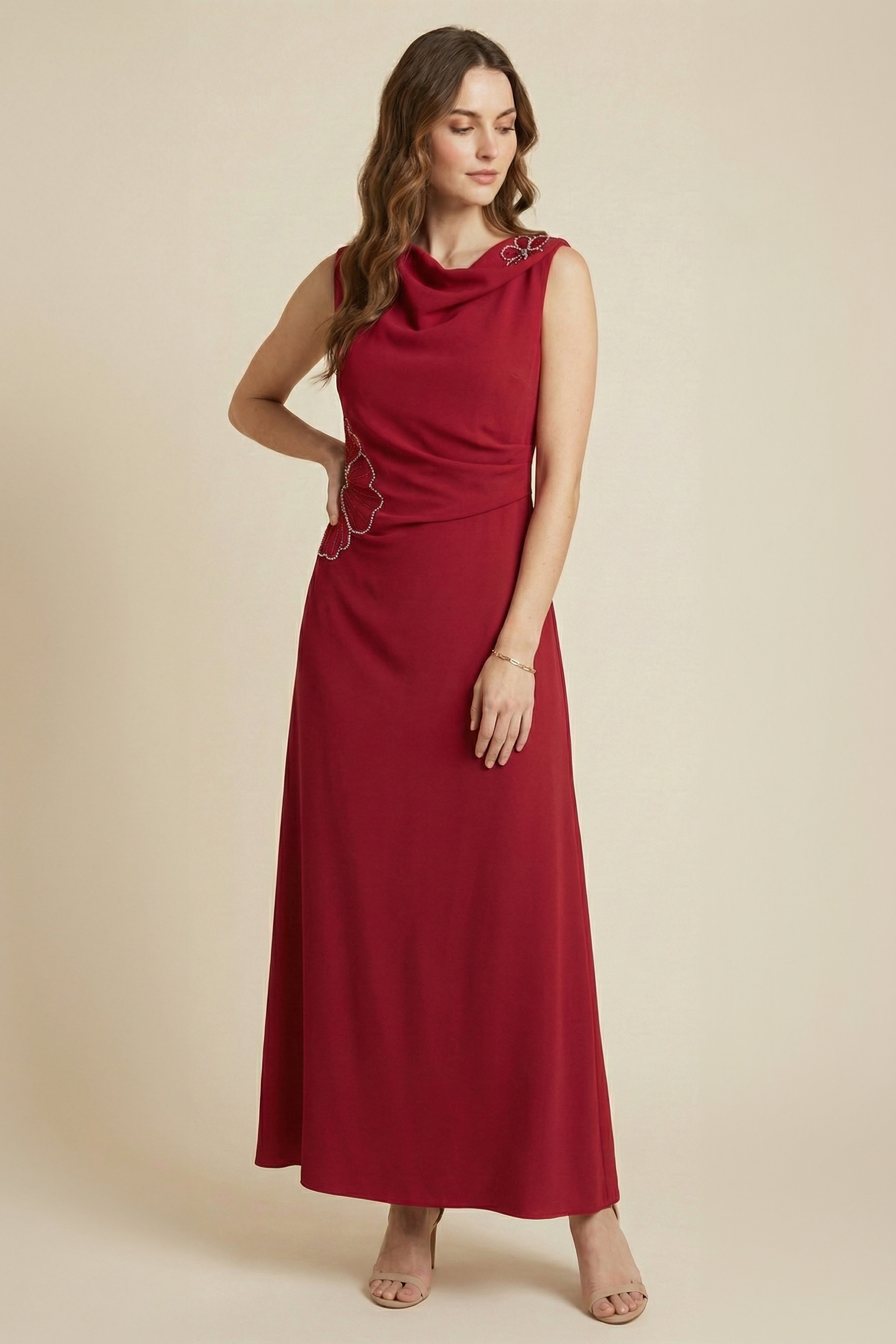 فستان ماكسي درابيه مزيت بالفصوص لون أحمر
