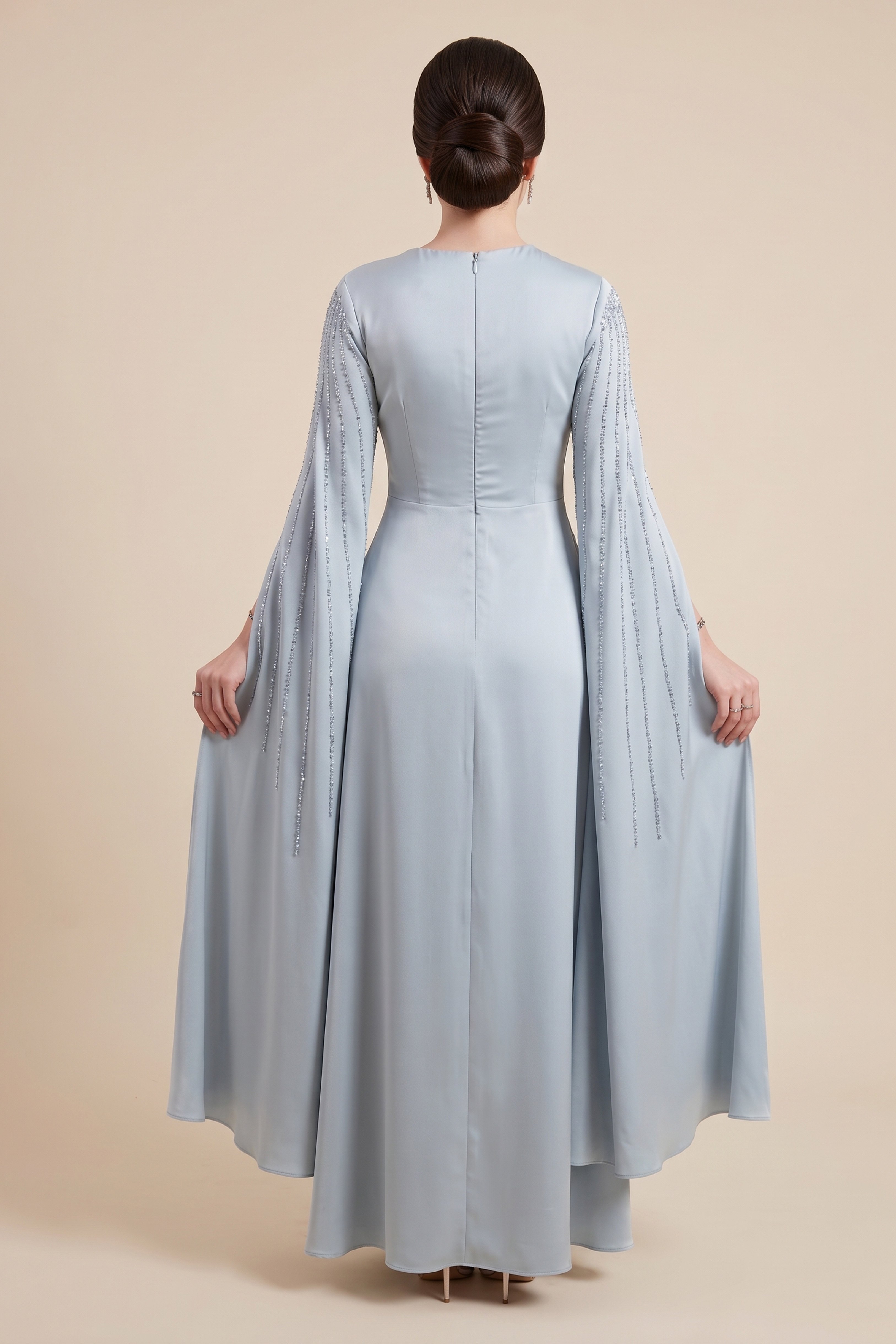فستان ماكسي كيب بفتحة على الصدر لون أزرق فاتح