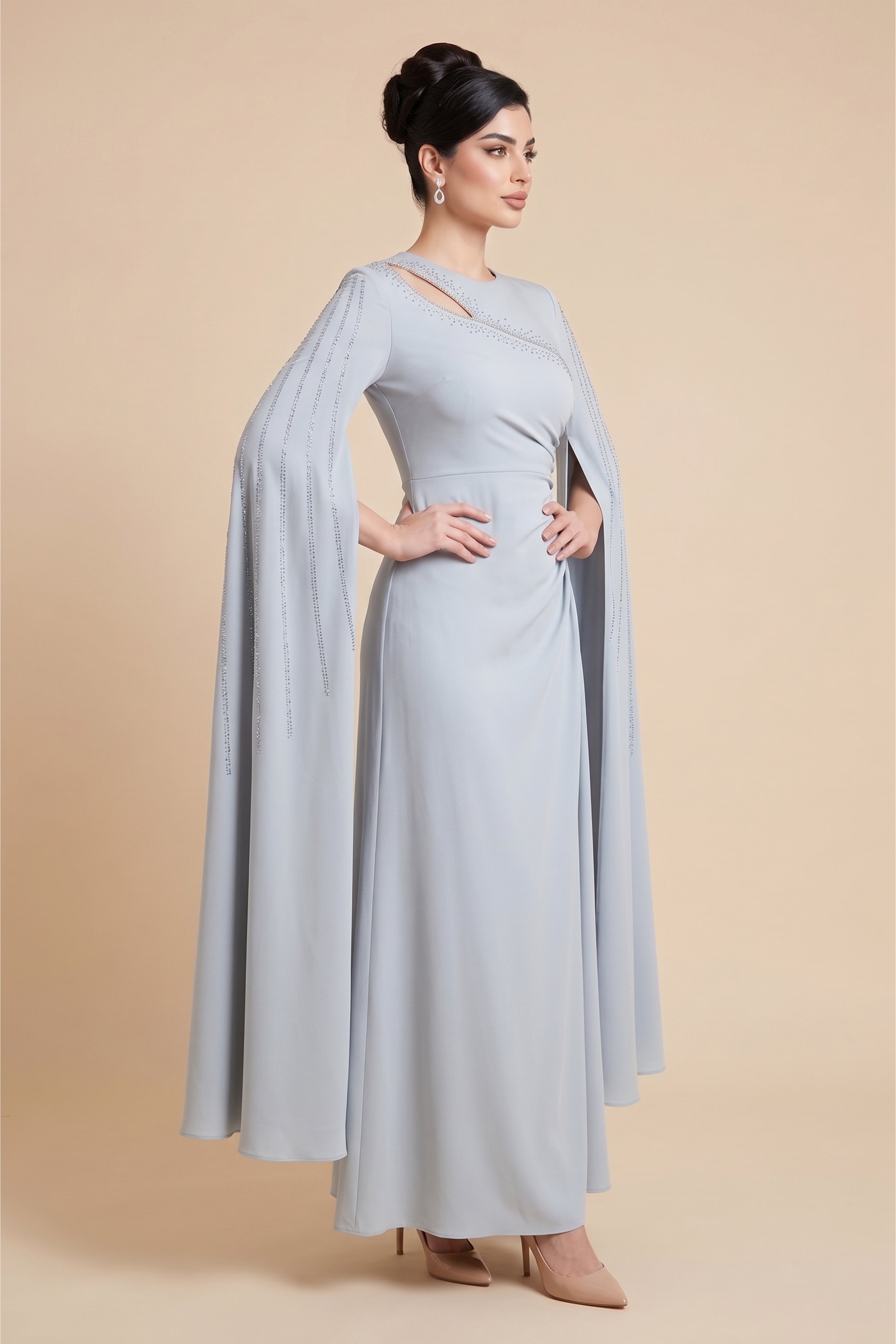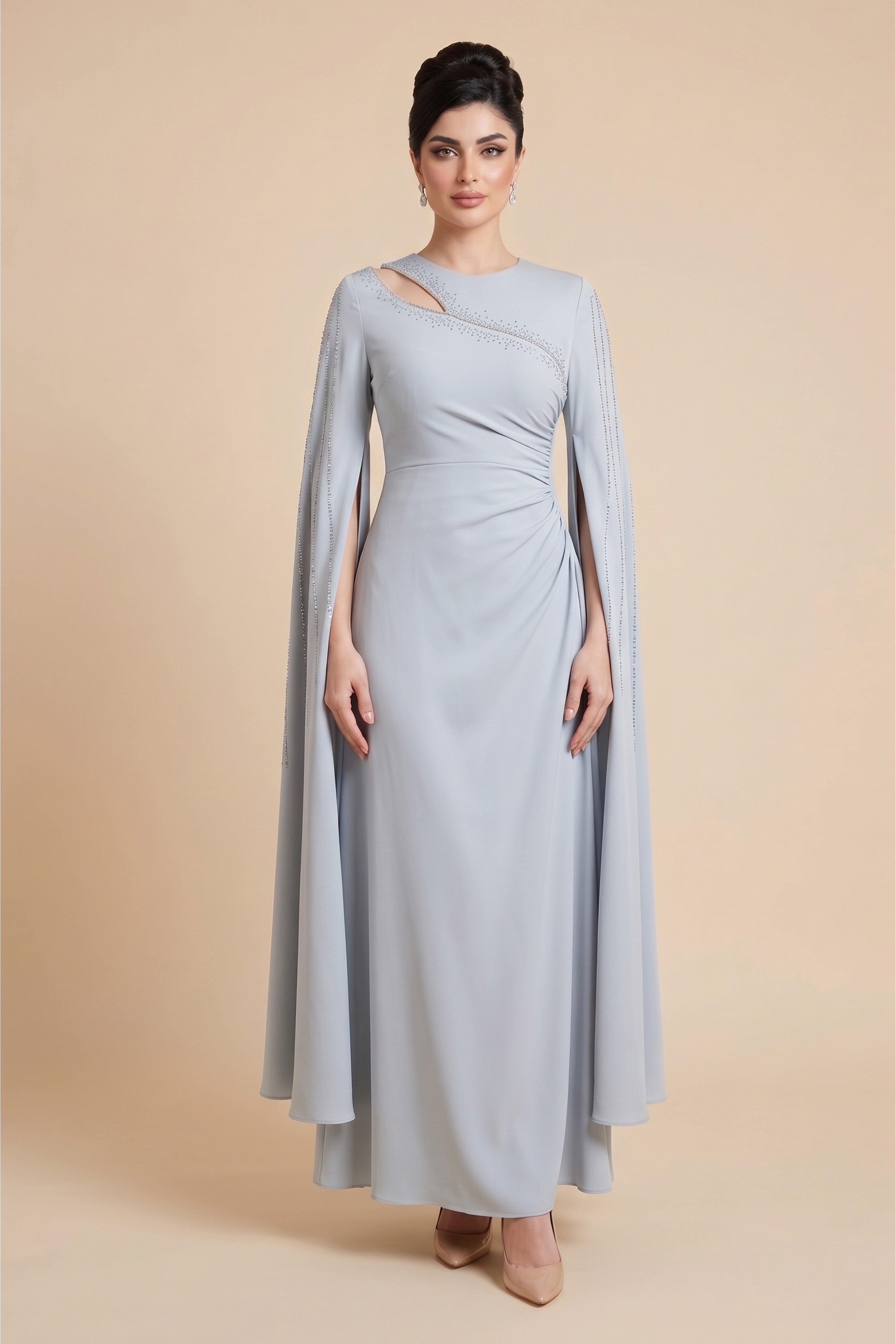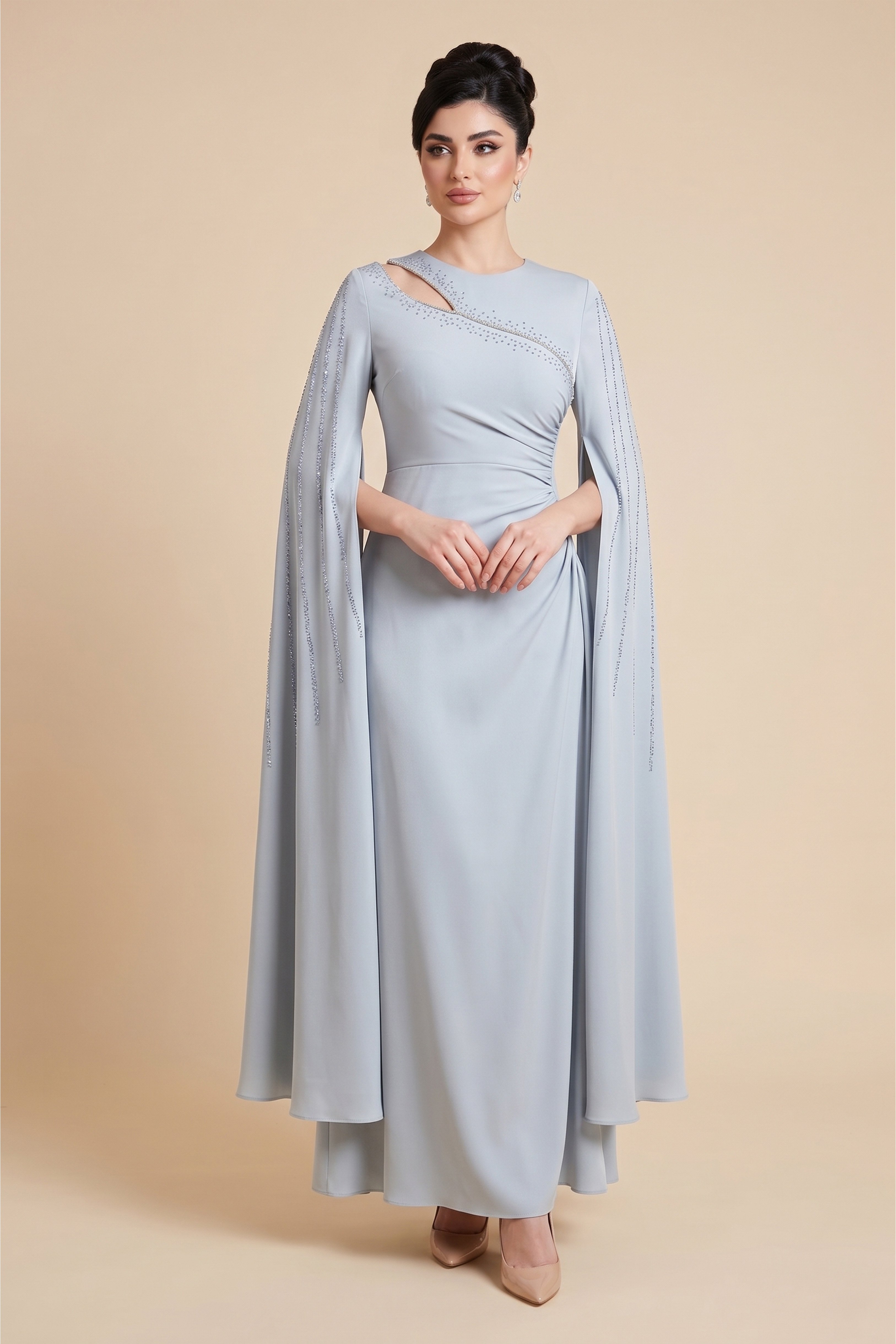 فستان ماكسي كيب درابيه مزين بالفصوص بفتحة على الصدر