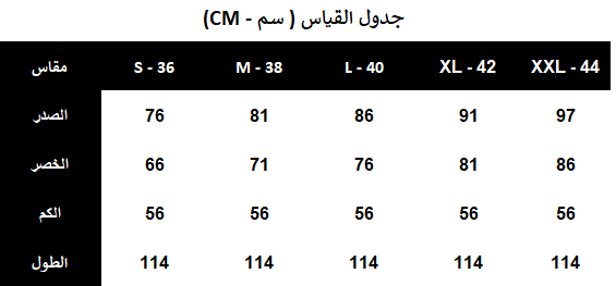 إرشادات العناية: يغسل ويكوى بالبخار بدرجة حرارة منخفضة 40% ويجفف بالتعليق