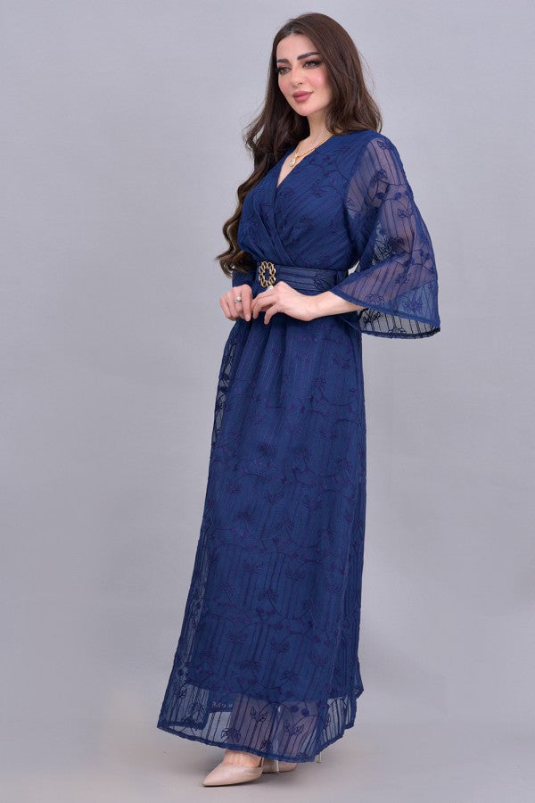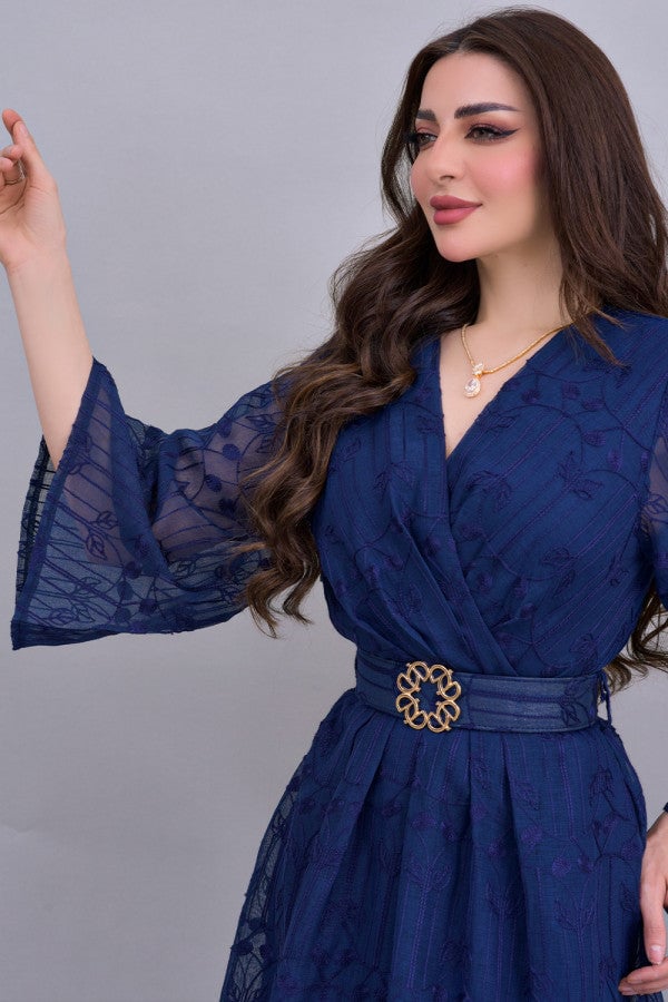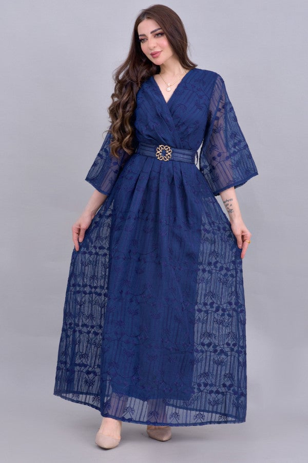 • نوع التصميم: فستان مطرز بقيطان ذهبي
