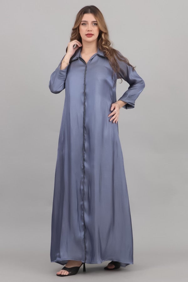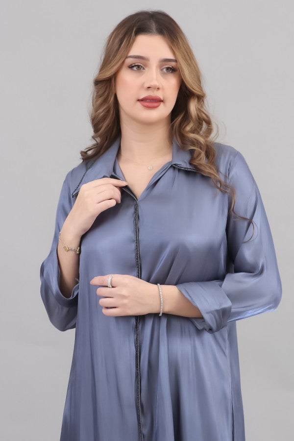 فستان من الساتان اللامع بتصميم قميص لون رمادي غامق