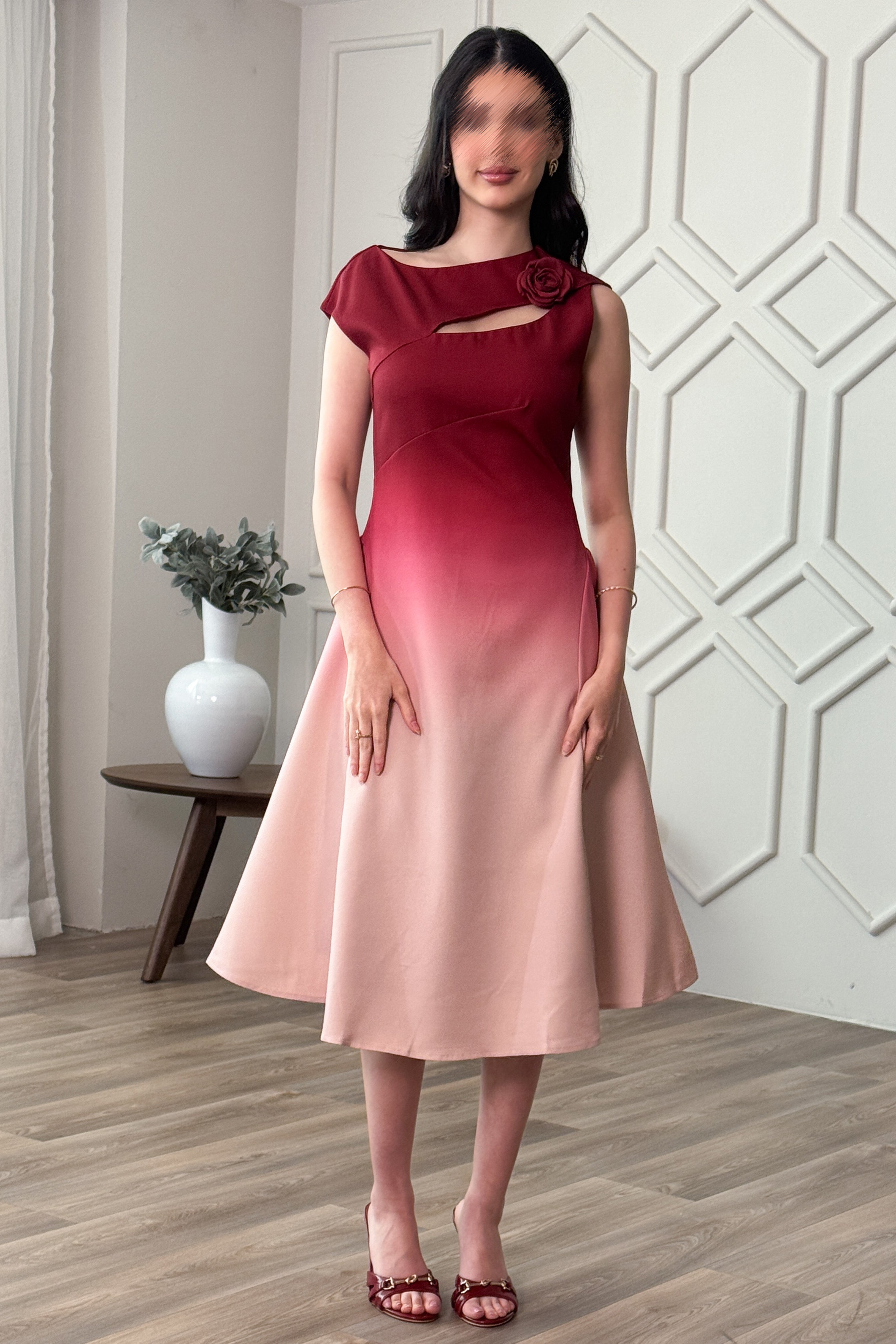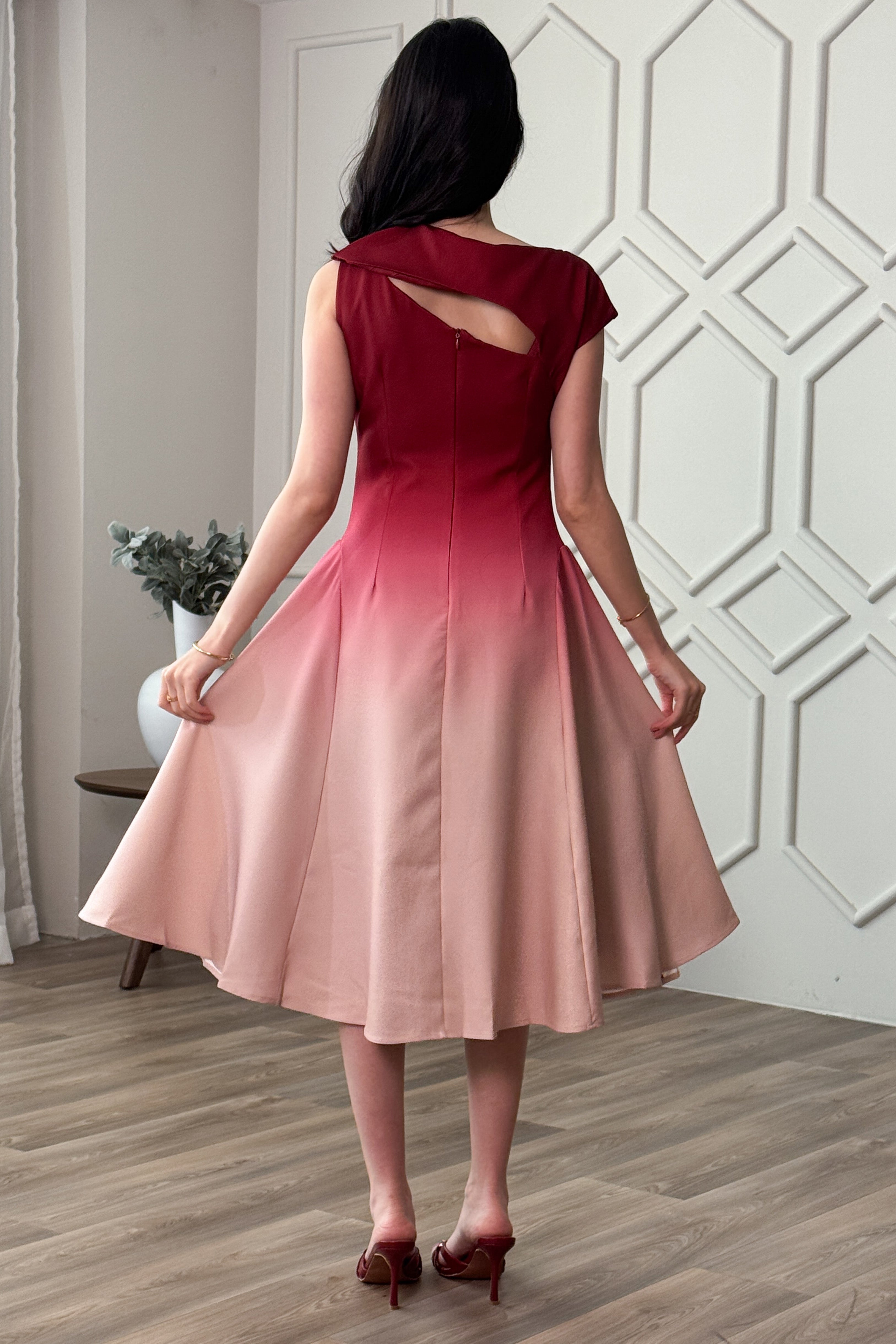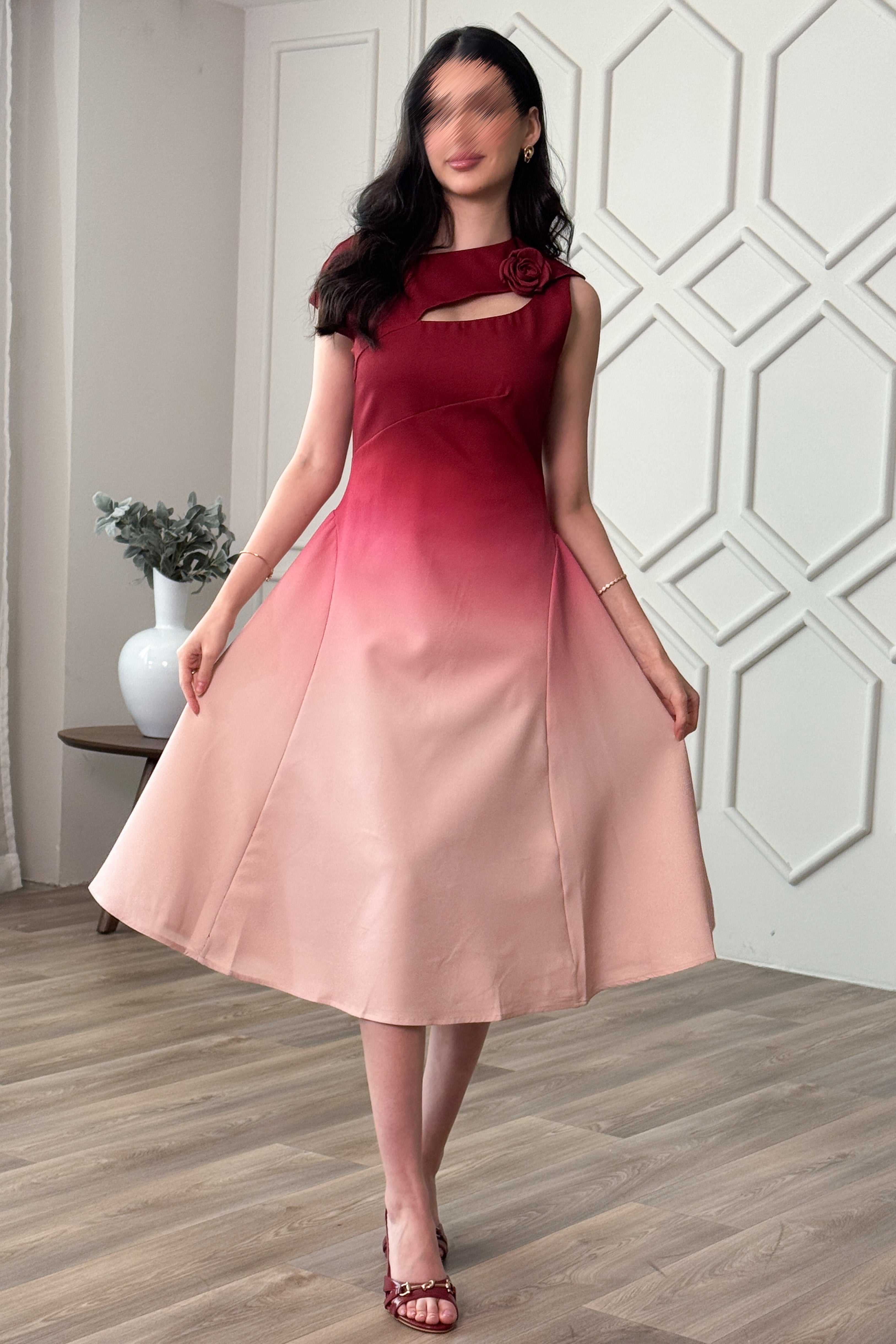 نوع التصميم: فستان ميدي بألوان متدرجة.