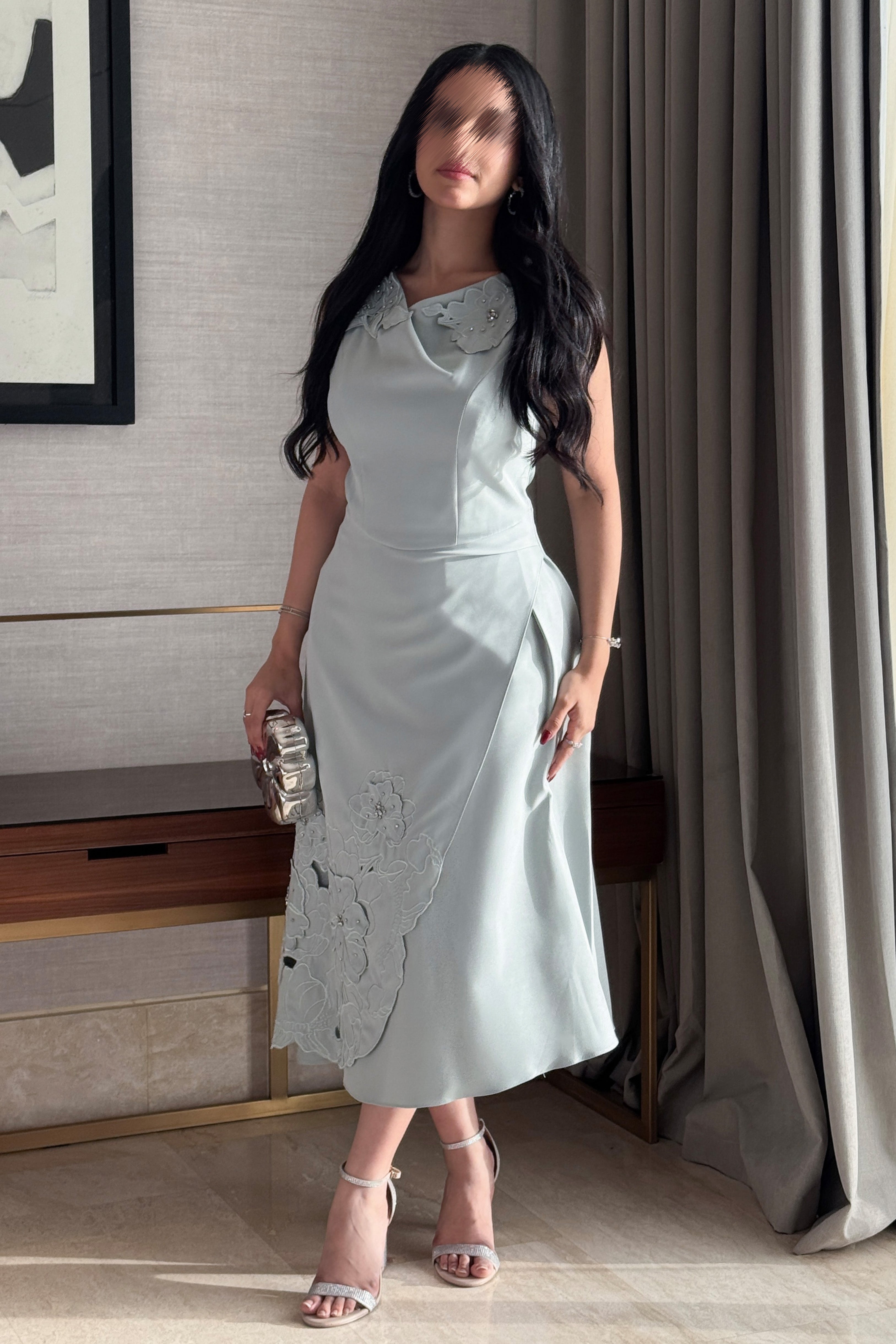 : فستان ميدي بتطريز إنجليزي مزين بكريستال
