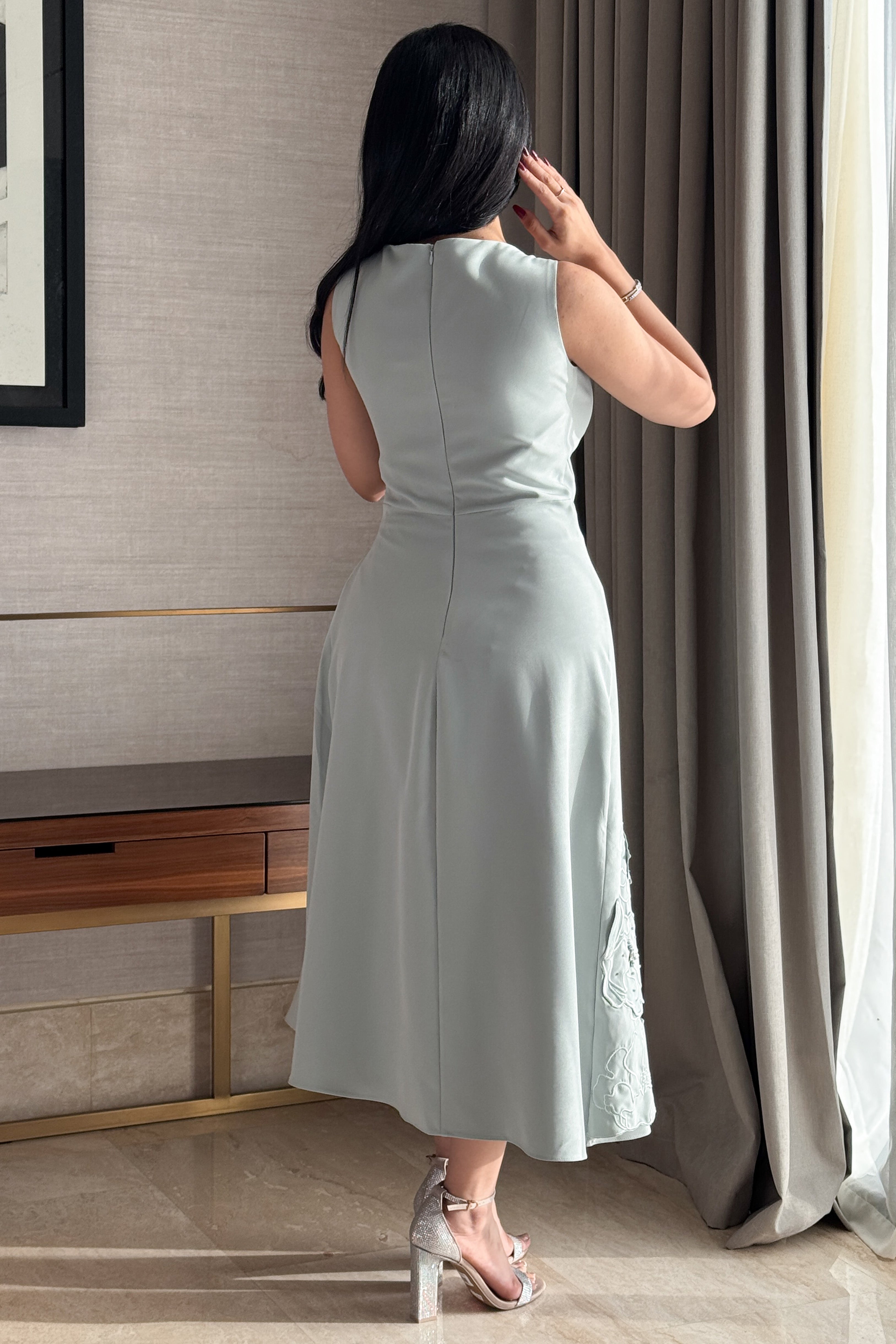 فستان ميدي بتطريز انجليزي لون اخضر فاتح