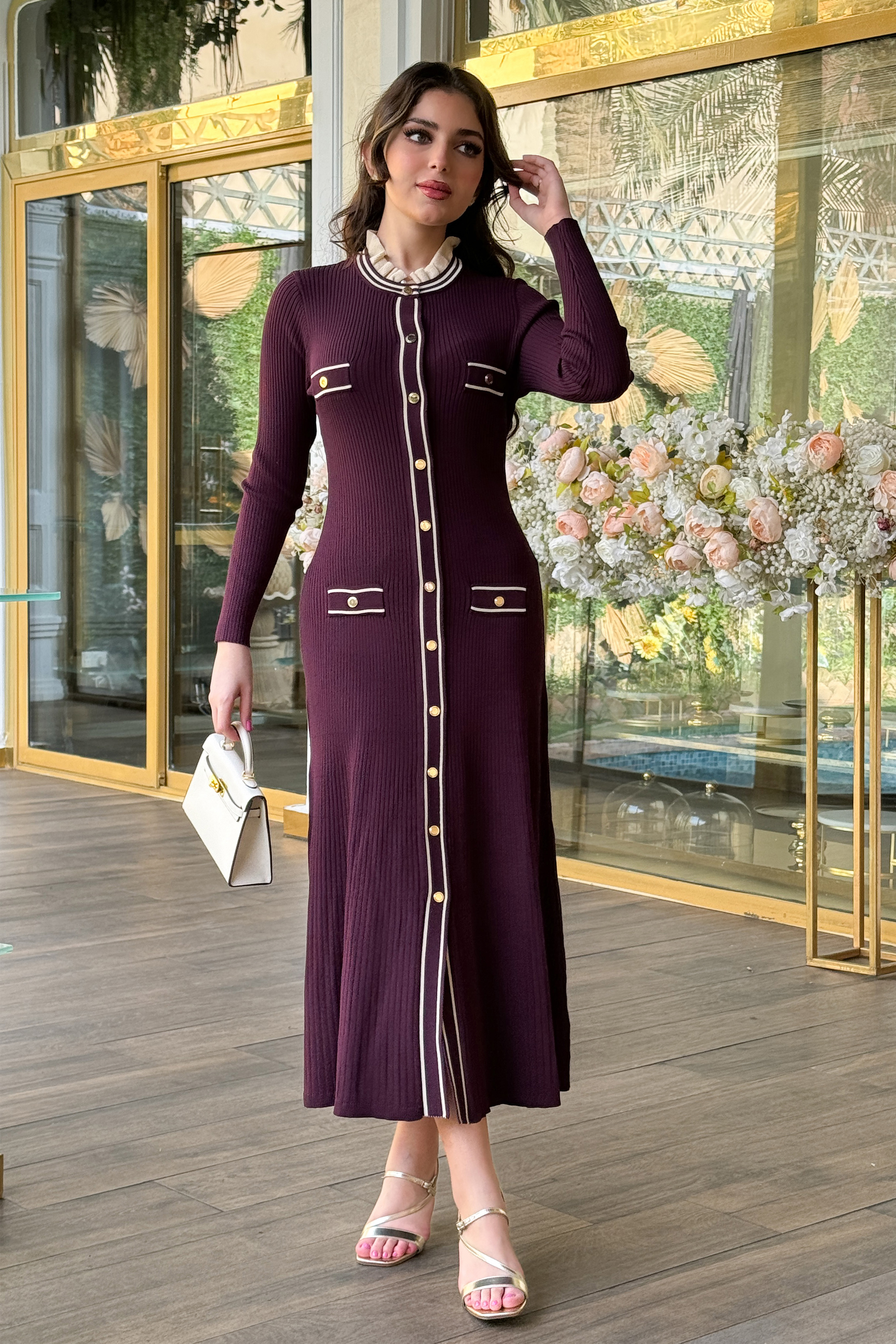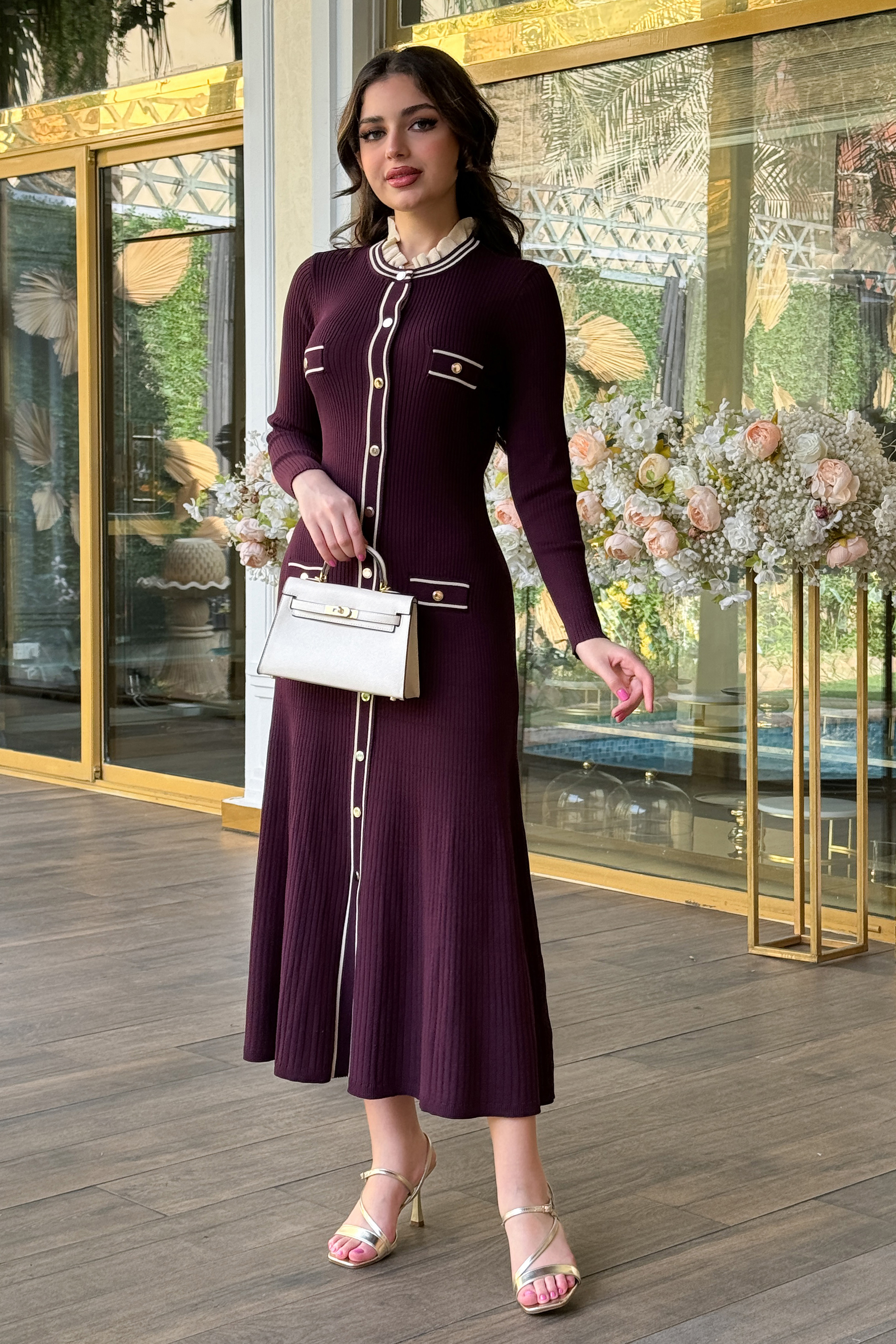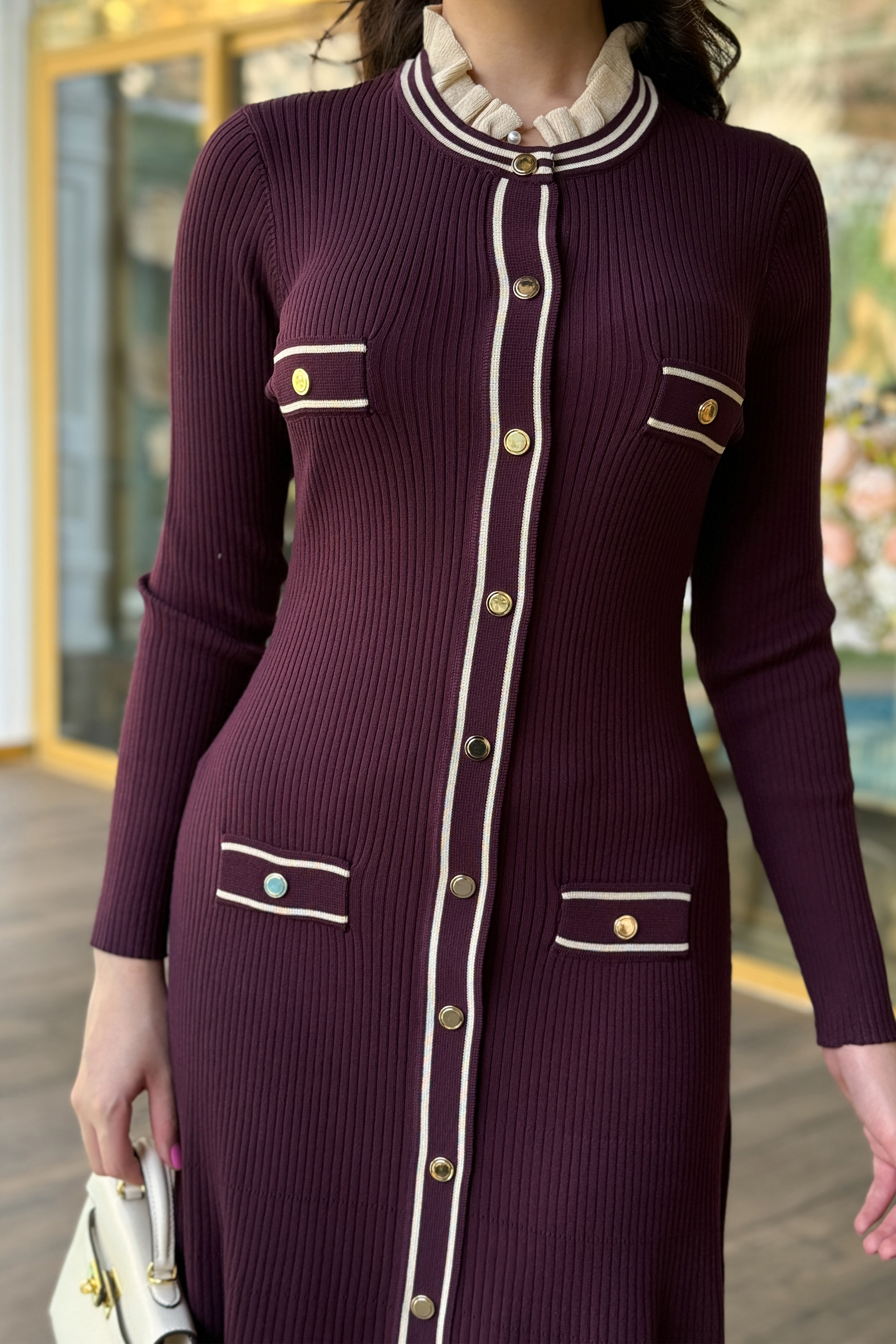 فستان ميدي بحياكة مضلعة مزين بأزرار