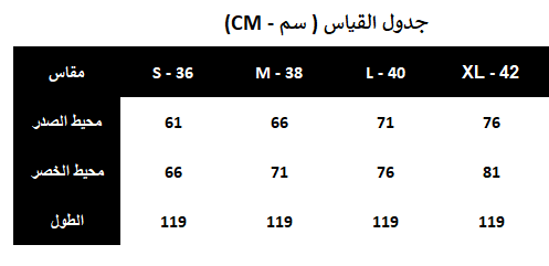 يغسل ويكوى بالبخار بدرجة حرارة منخفضة (40%) ويجفف بالتعليق