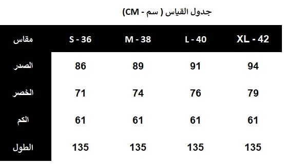 إرشادات العناية: يغسل ويكوى بالبخار بدرجة حرارة منخفضة 40% ويجفف بالتعليق