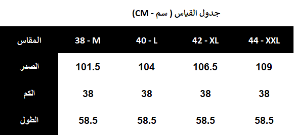 • إرشادات العناية: يُغسل ويُكوى بالبخار عند درجة حرارة منخفضة (40%)، ويُجفف بالتعليق