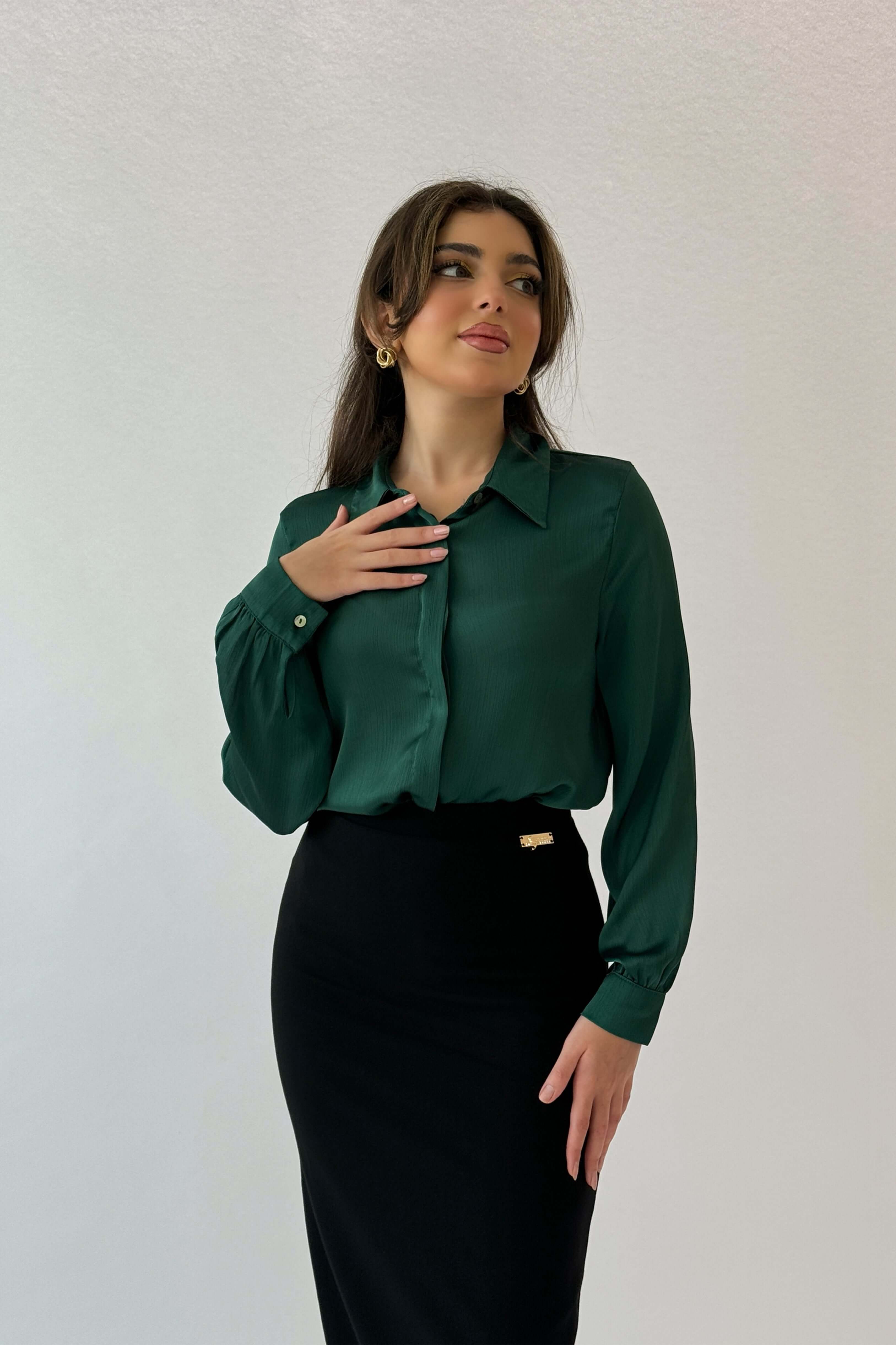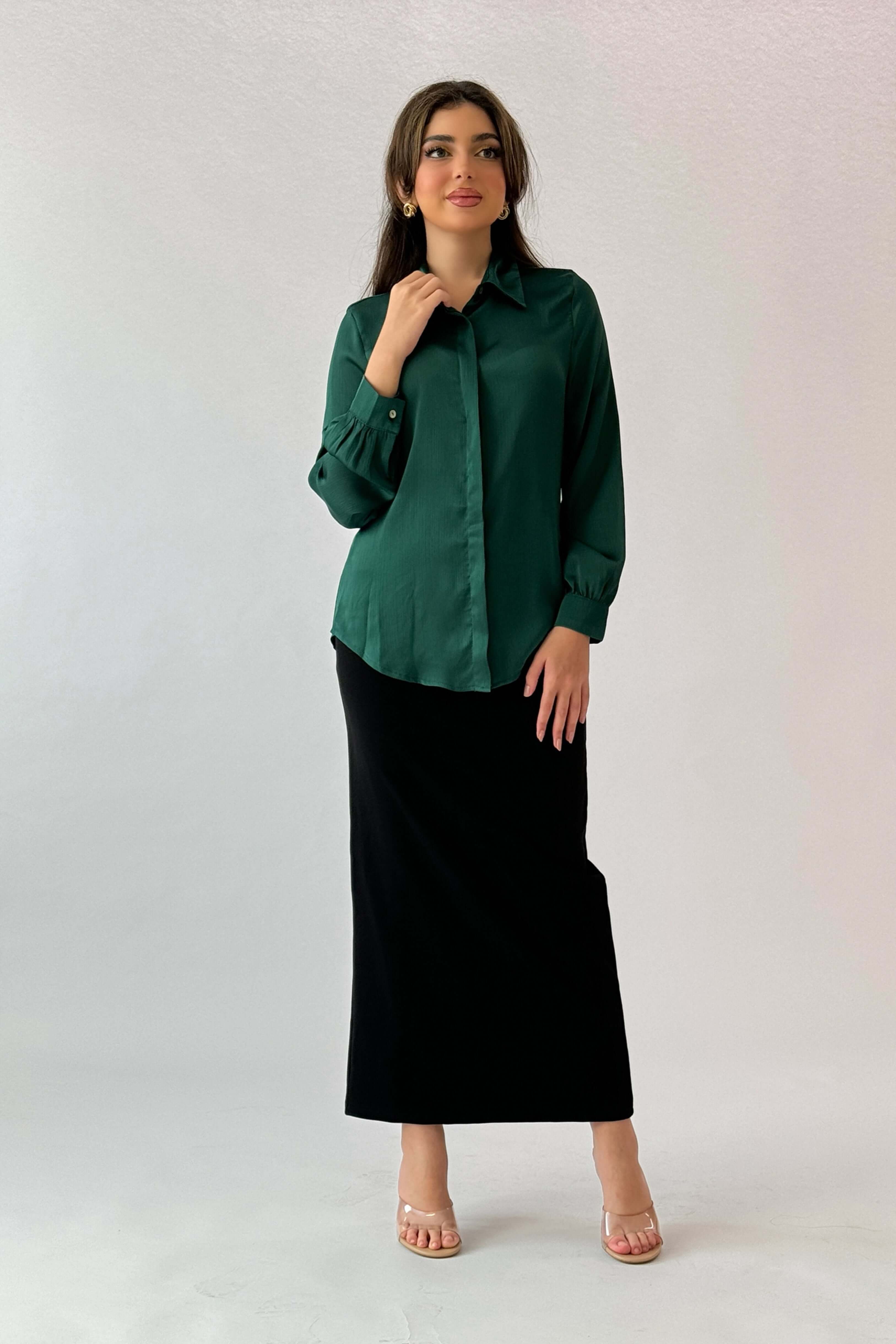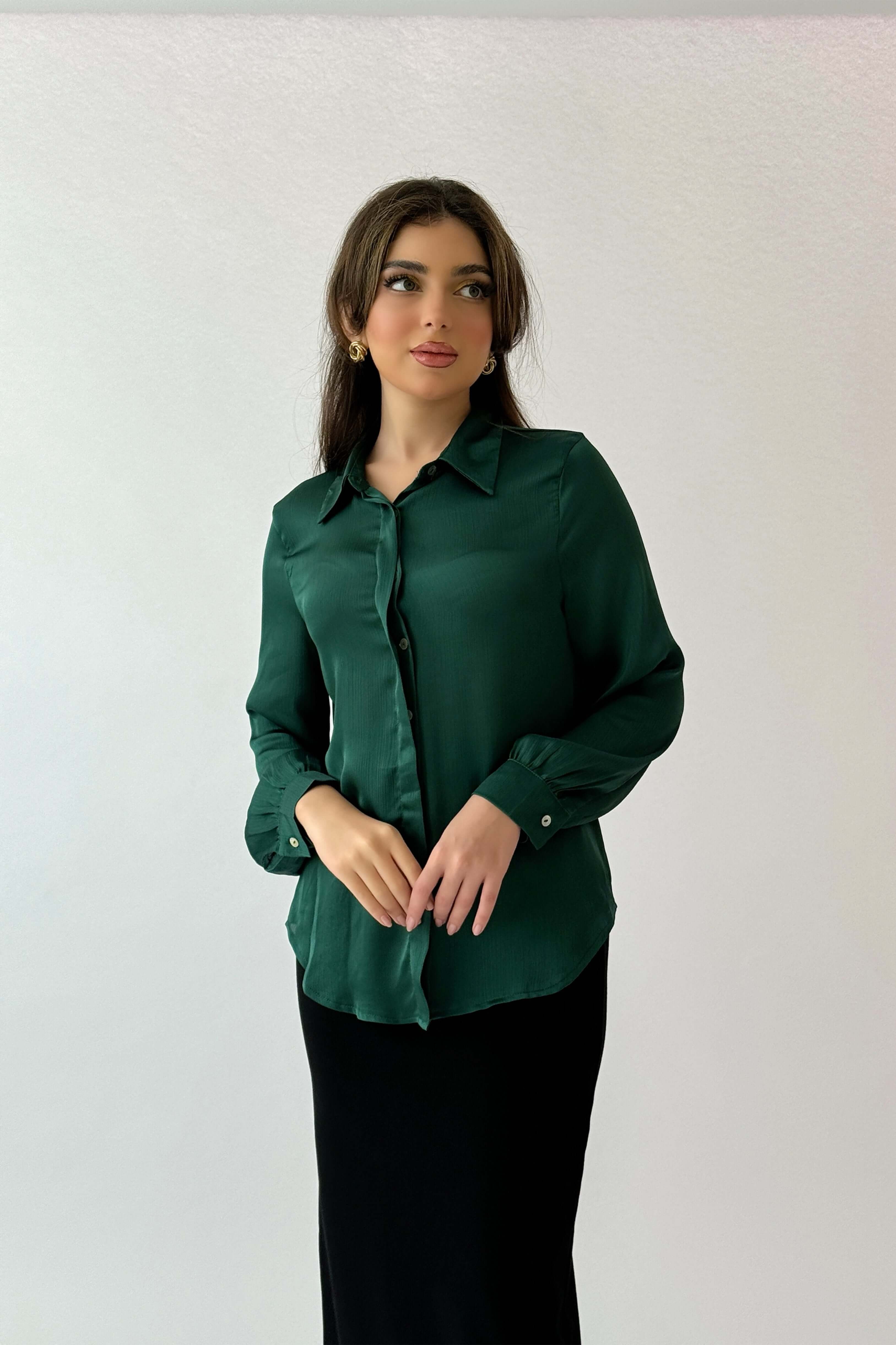 قميص سادة بأزارير مخفية لون اخضر غامق