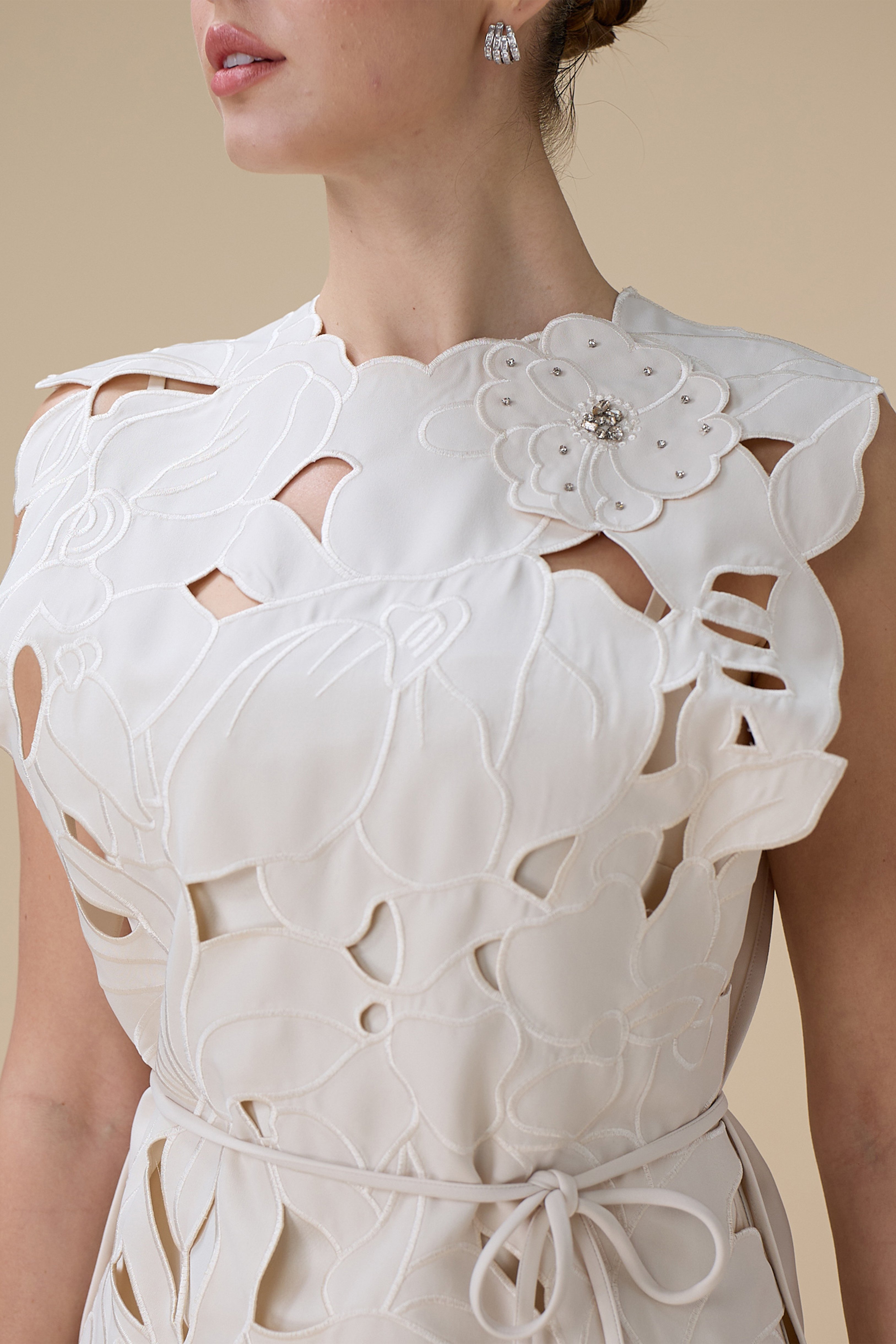 فستان سكري من قطعتين بتطريز ثلاثي الأبعاد