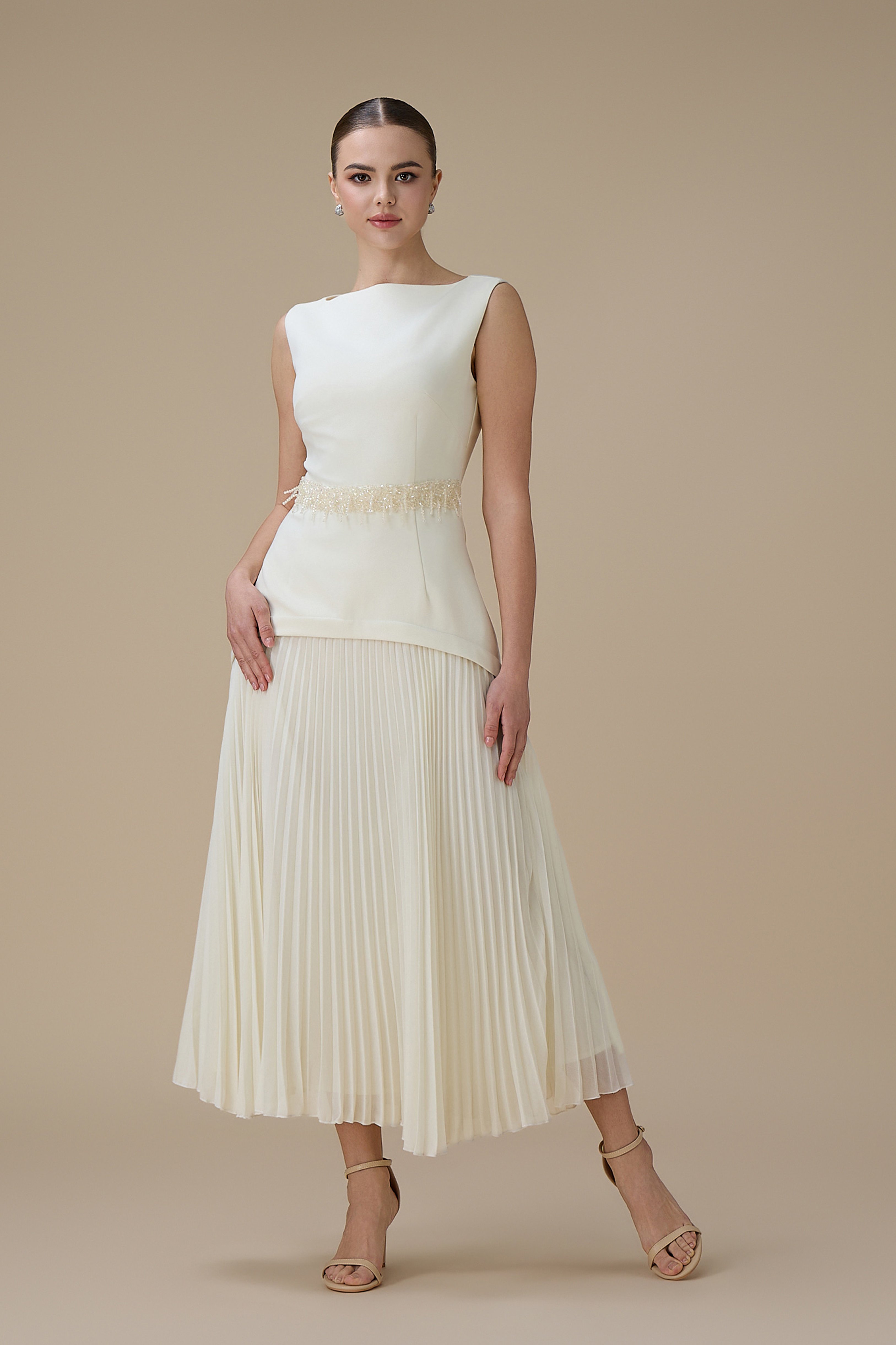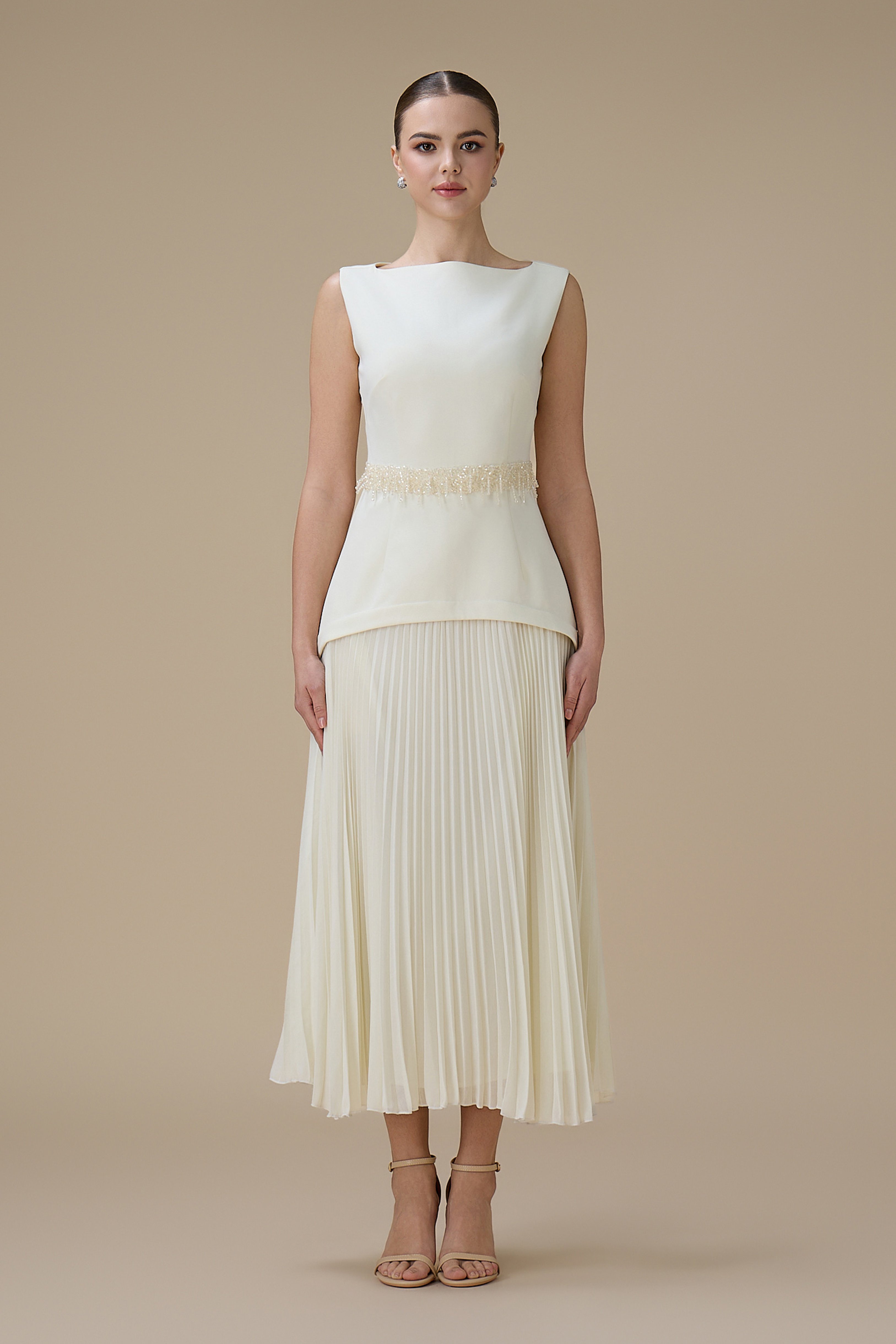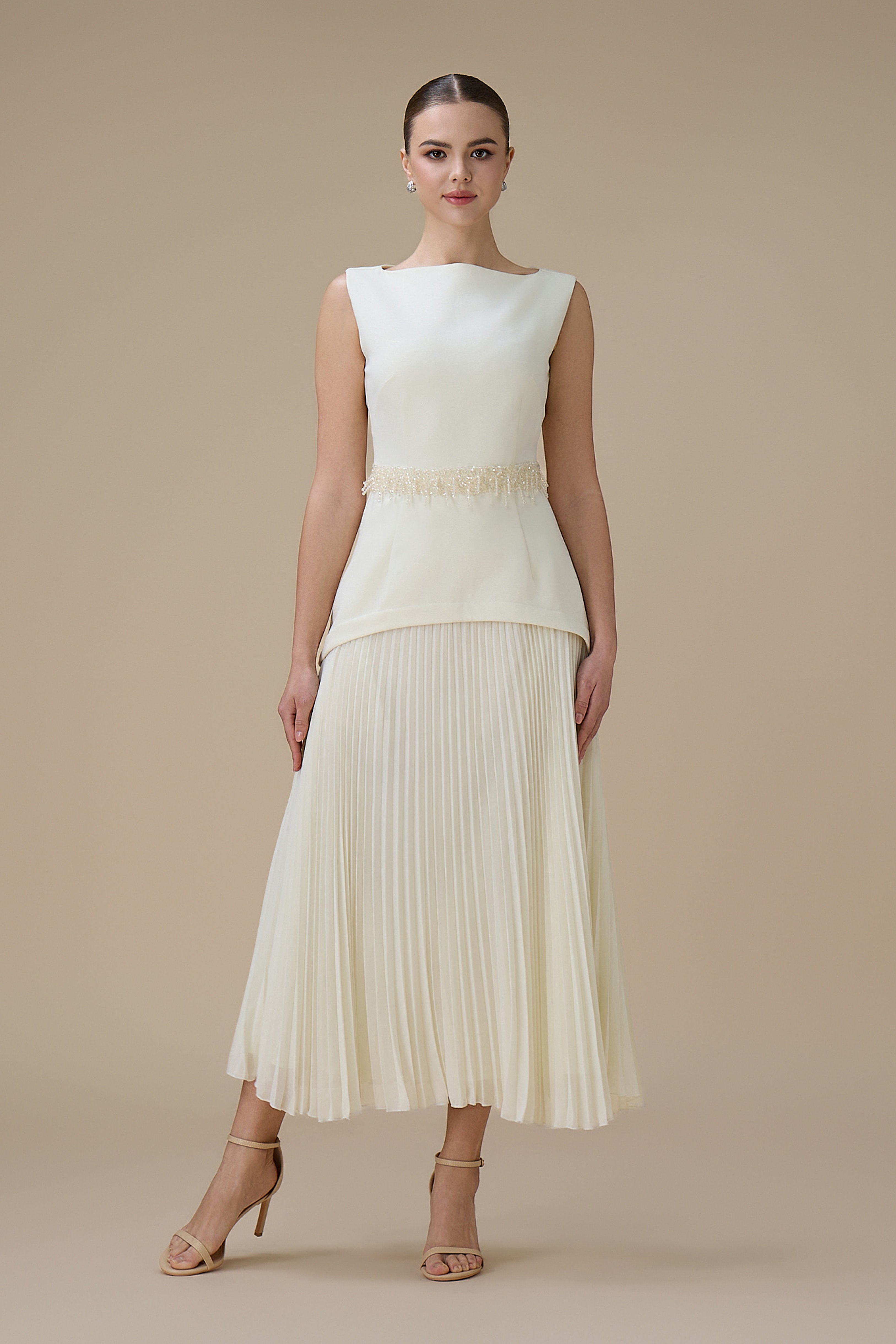 فستان ماكسي بيج بتنورة بليسيه وتفاصيل خرزية