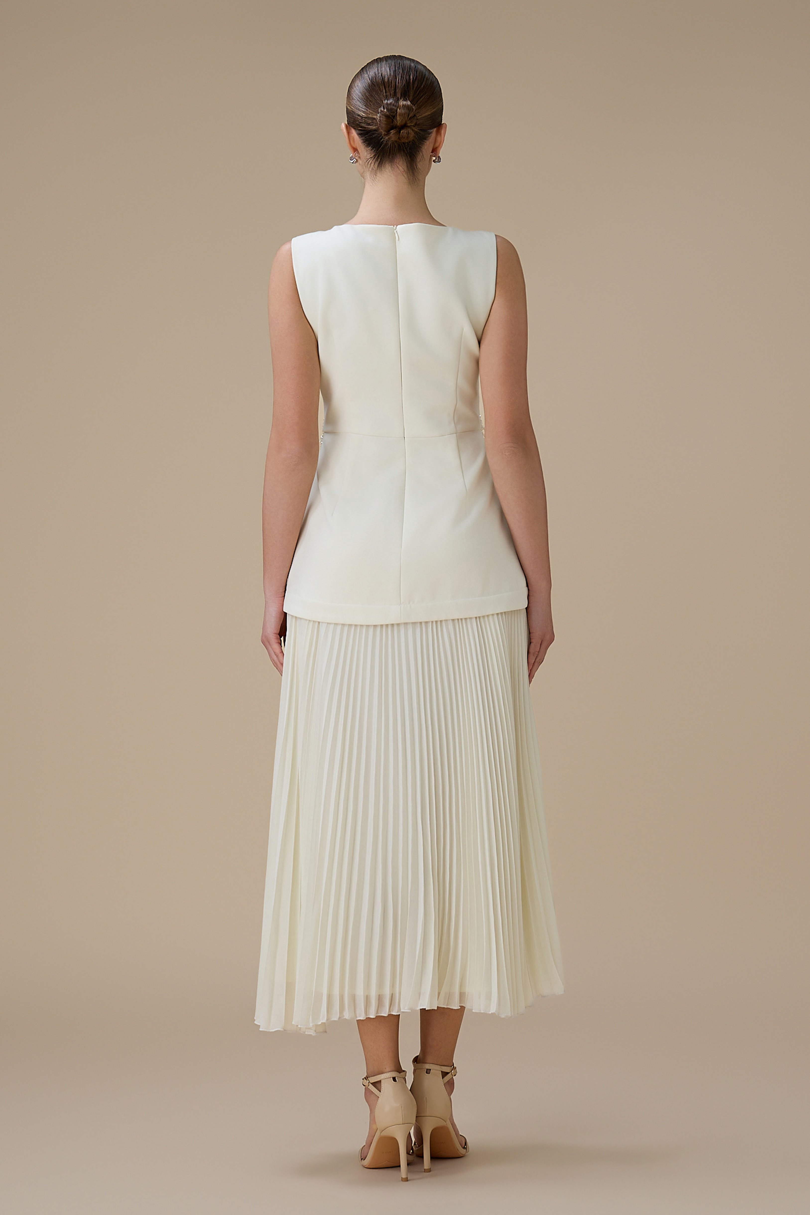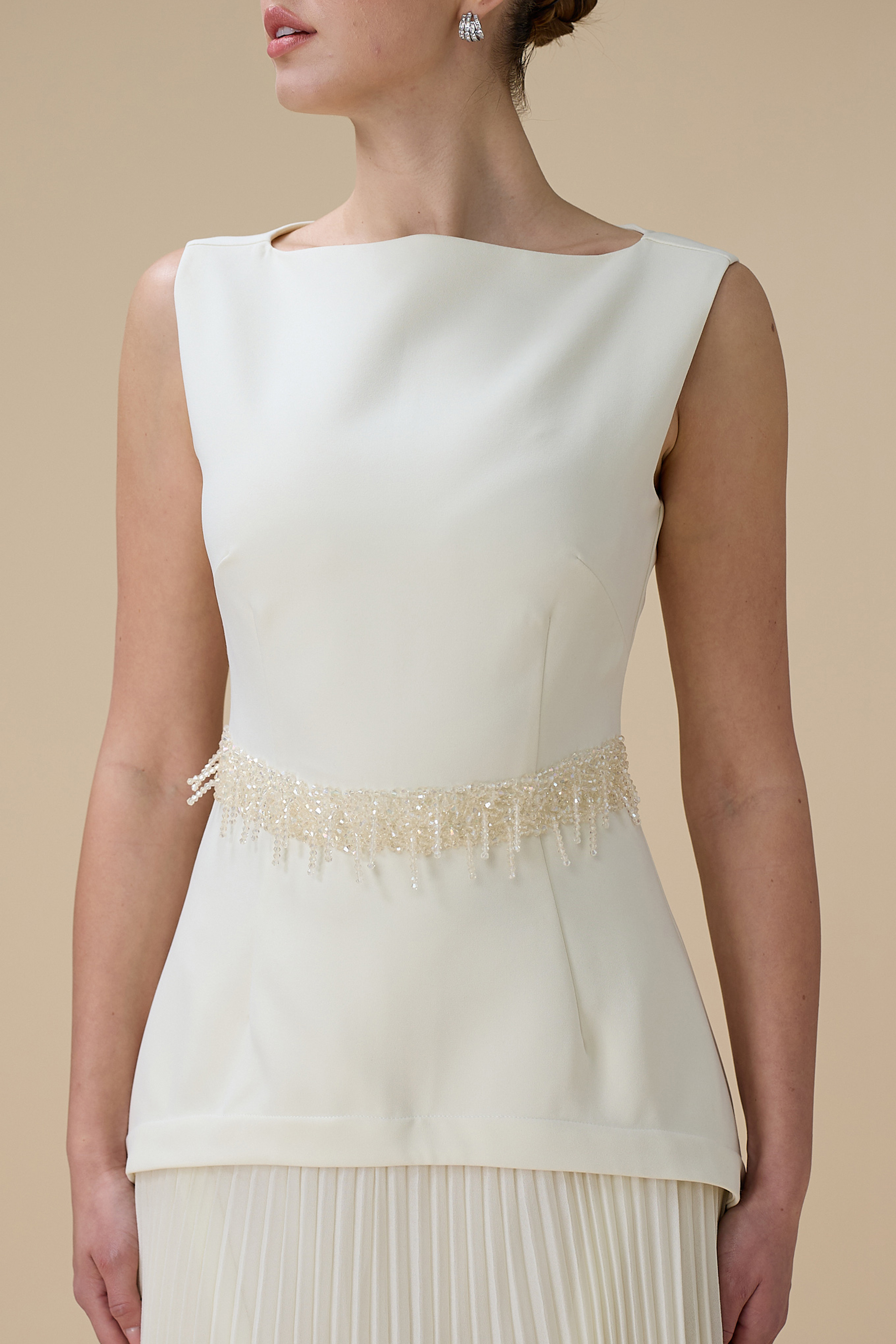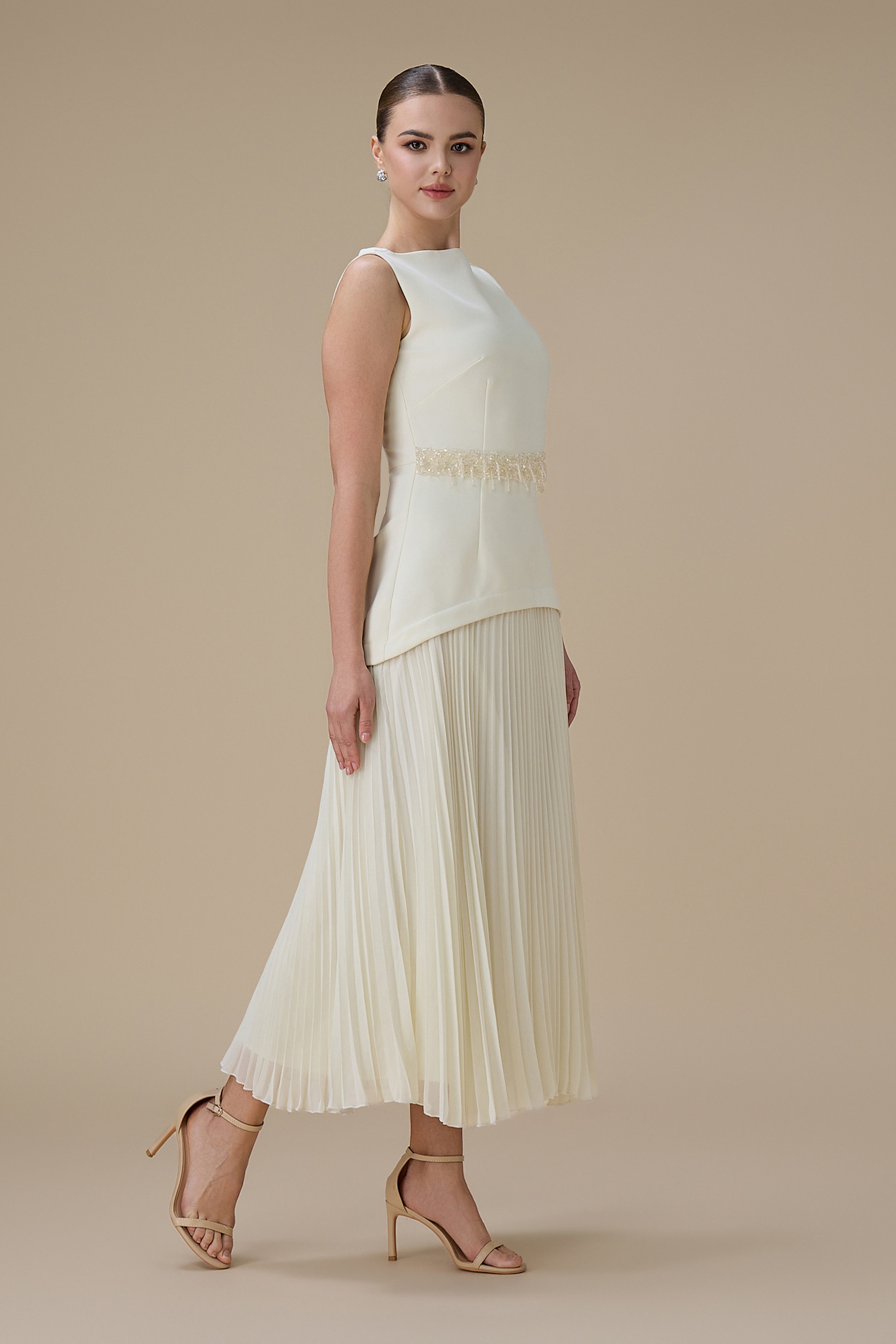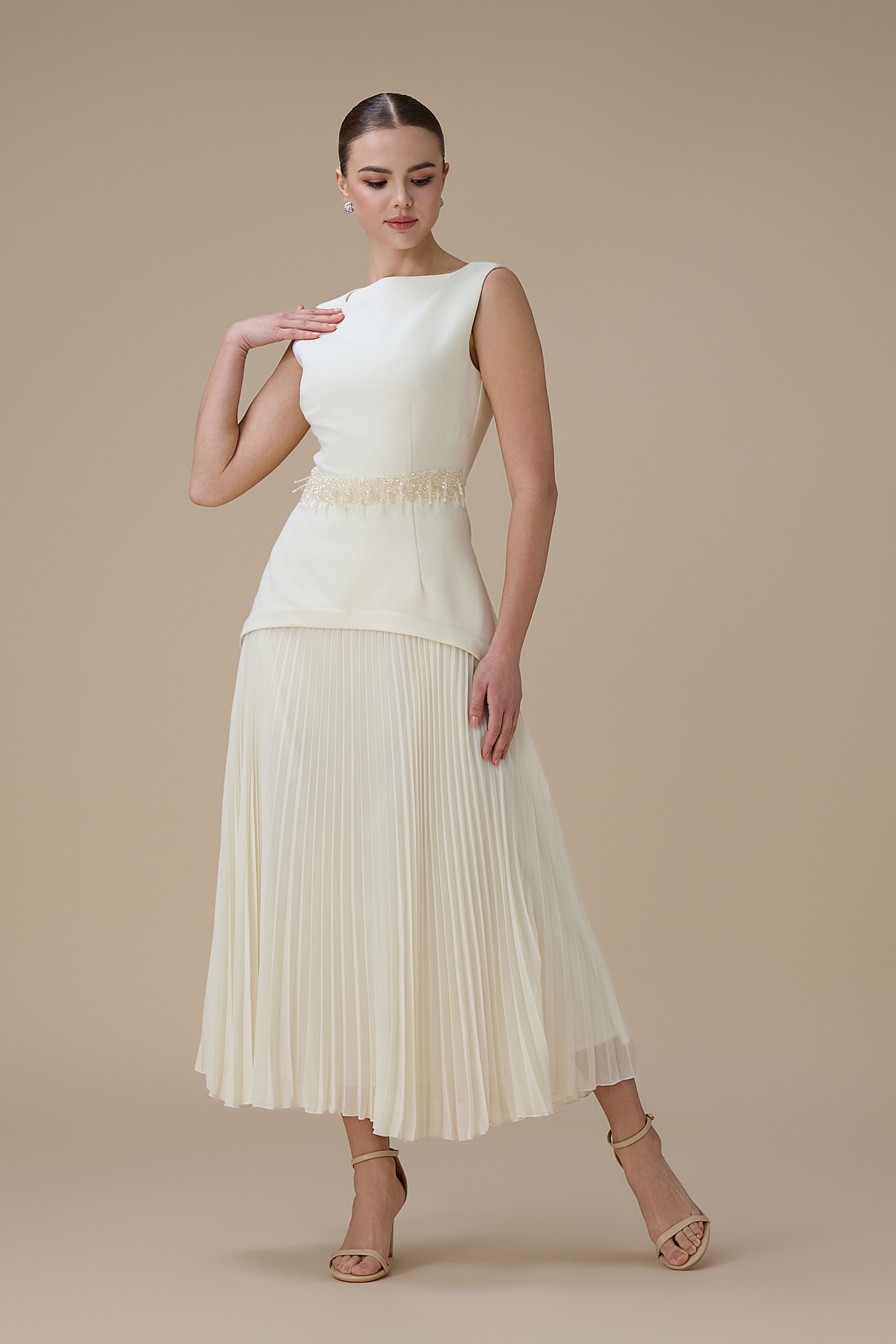 فستان ماكسي بيج بتنورة بليسيه وتفاصيل خرزية