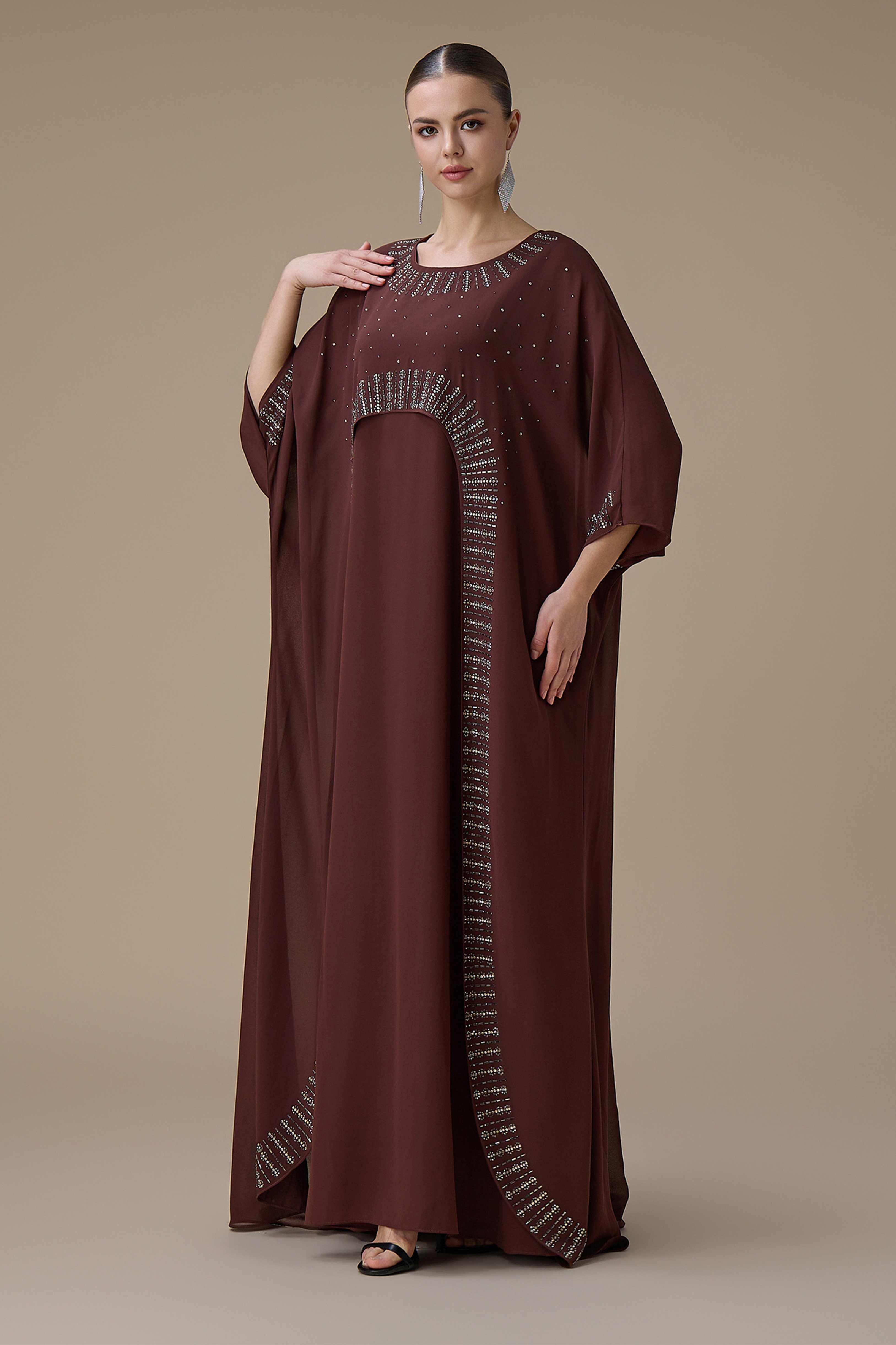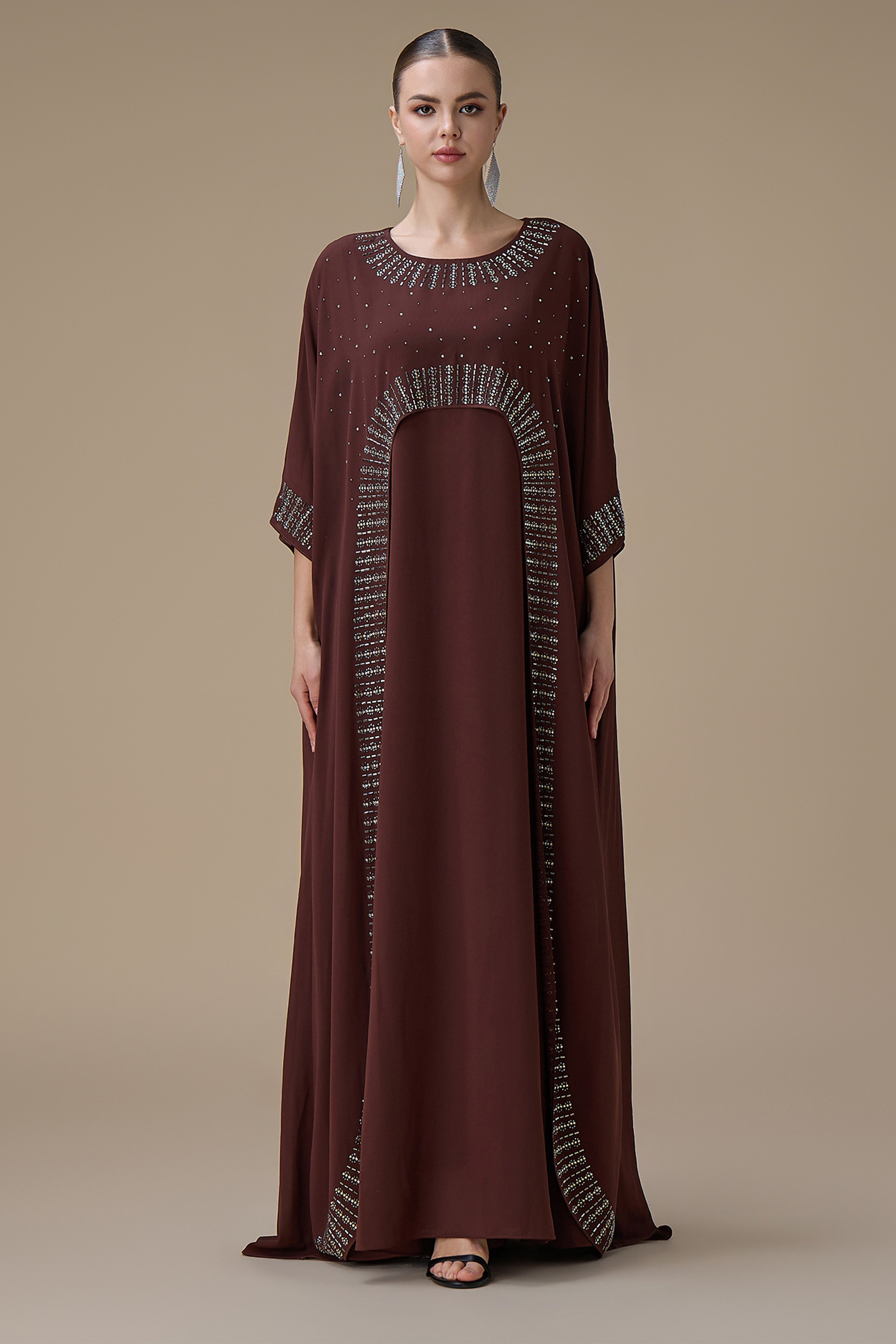 جلابية طويلة بني واسعة بقطعتين