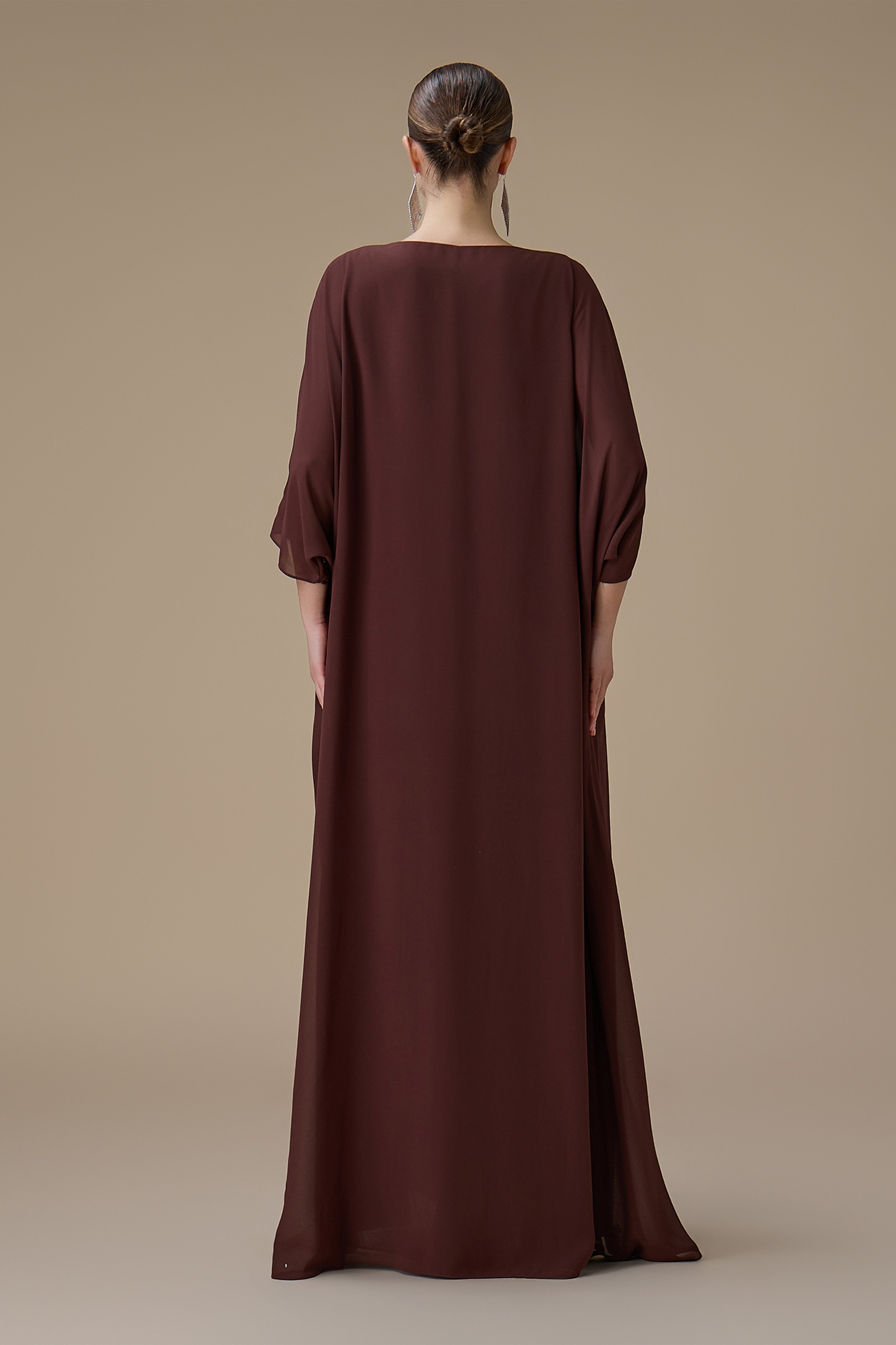 نوع التصميم: جلابية طويلة بني واسعة بقطعتين