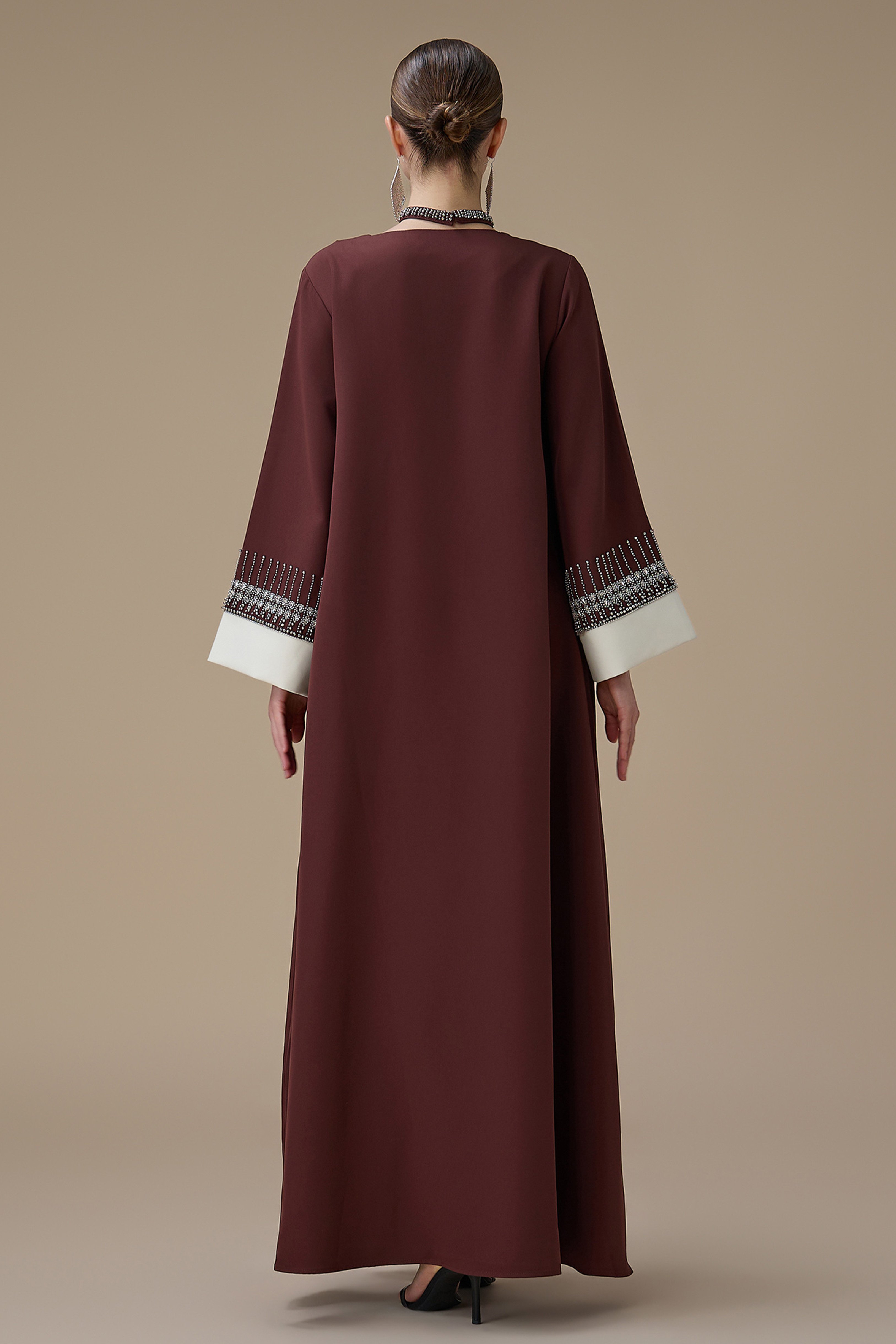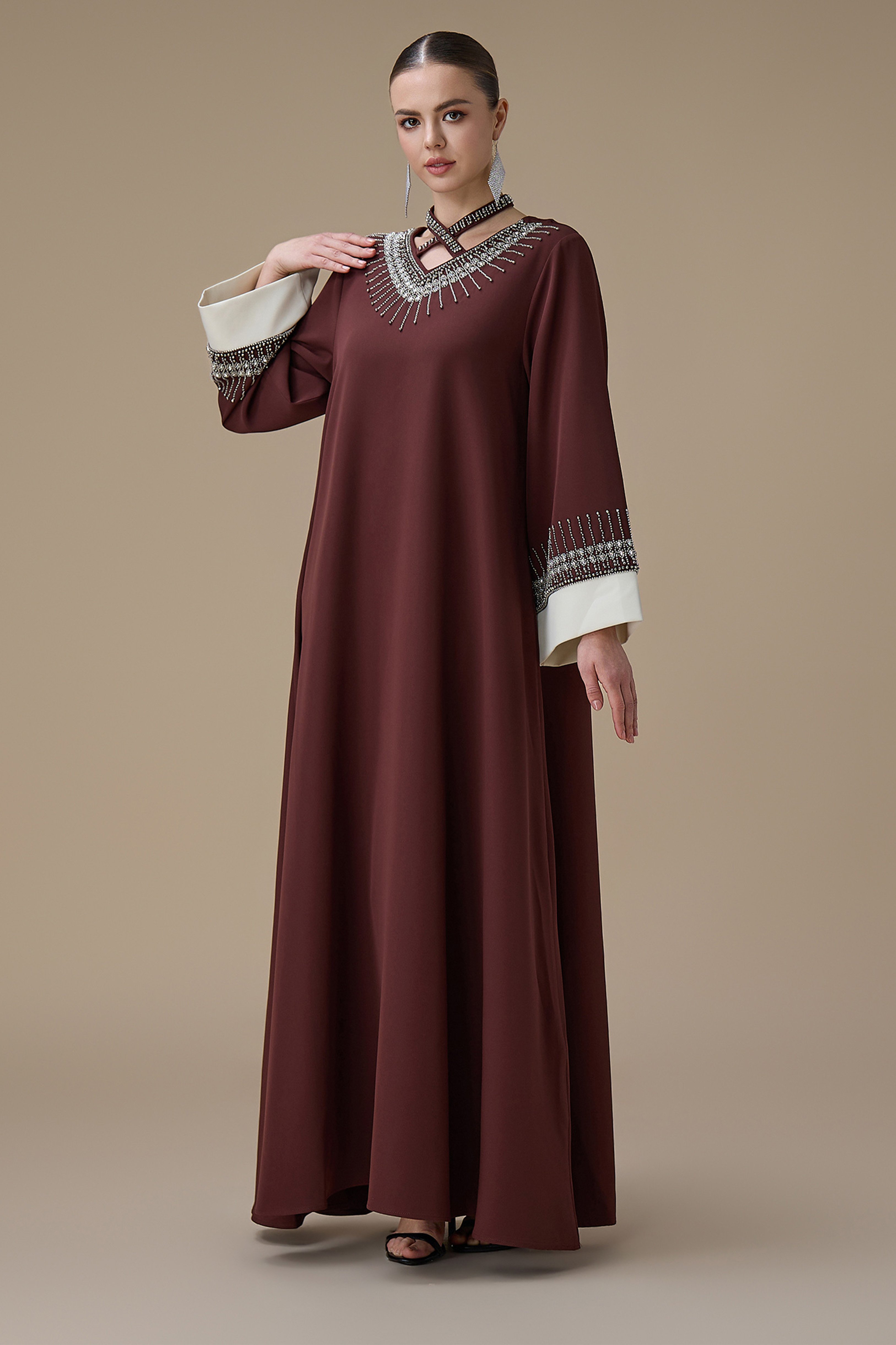 جلابية طويلة بني بتطريز انيق