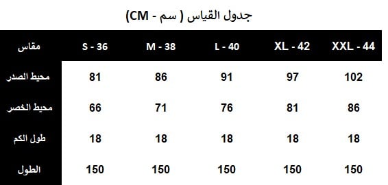 يغسل ويكوى بالبخار بدرجة حرارة منخفضة 40 درجة مئوية، ويُجفف بالتعليق