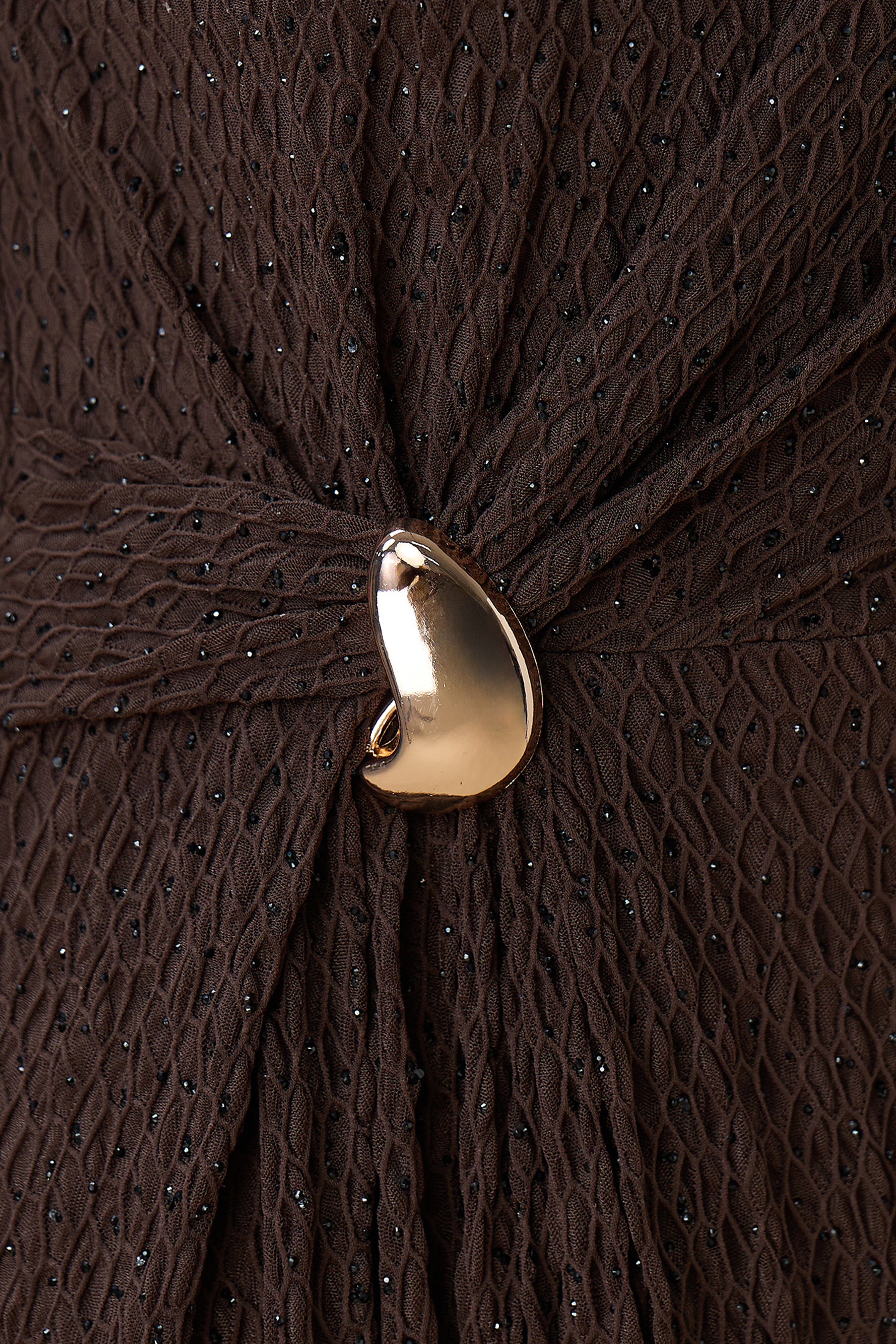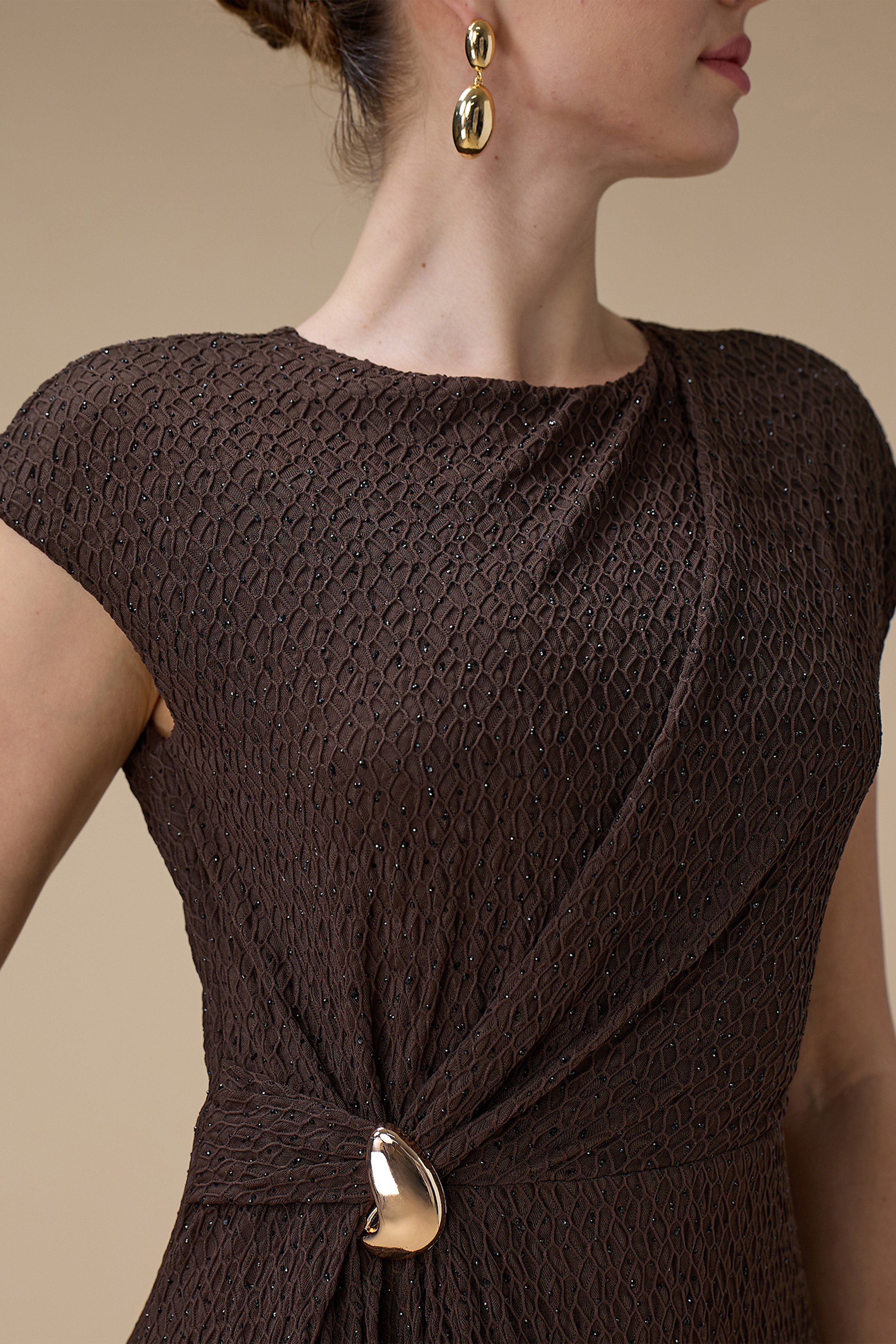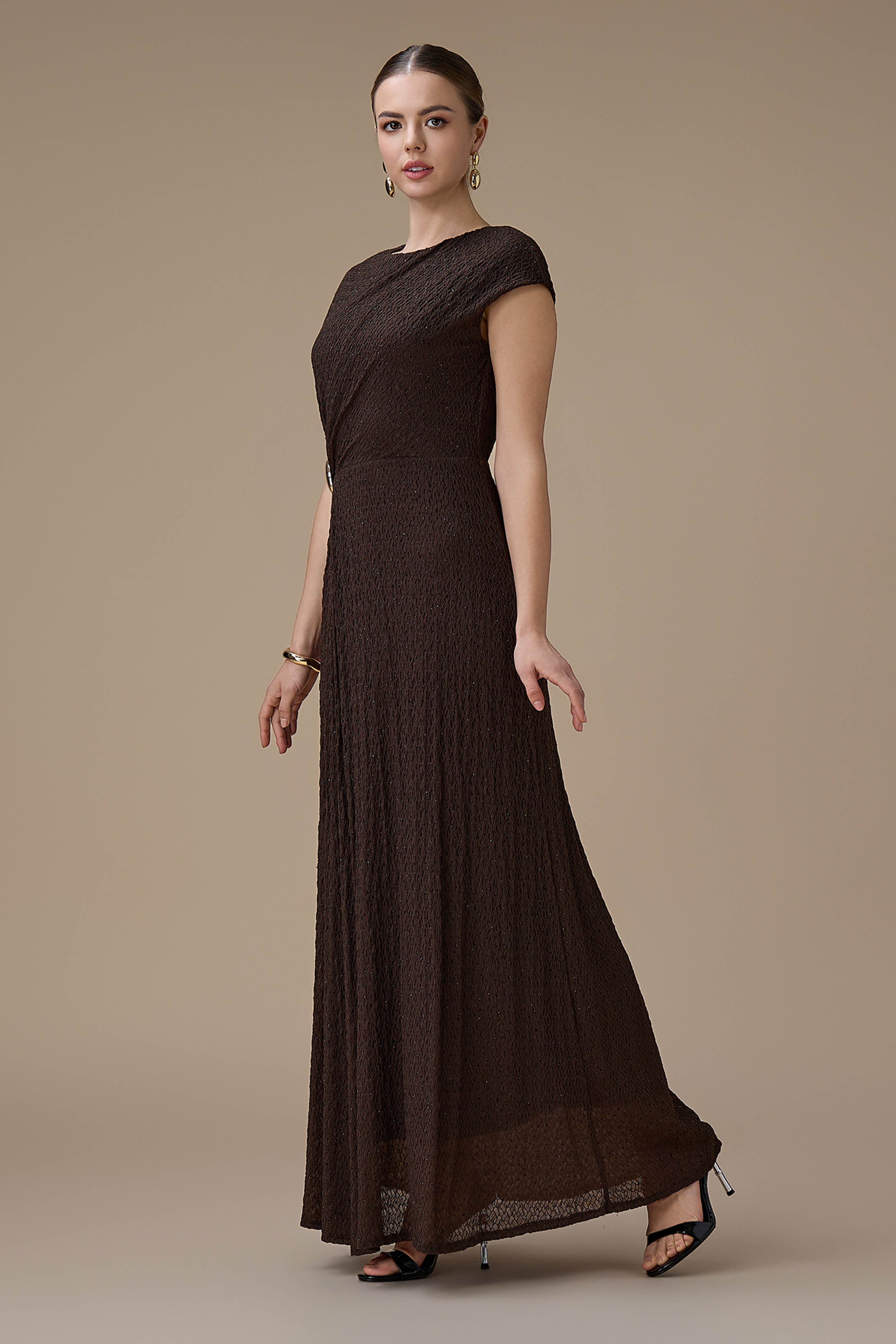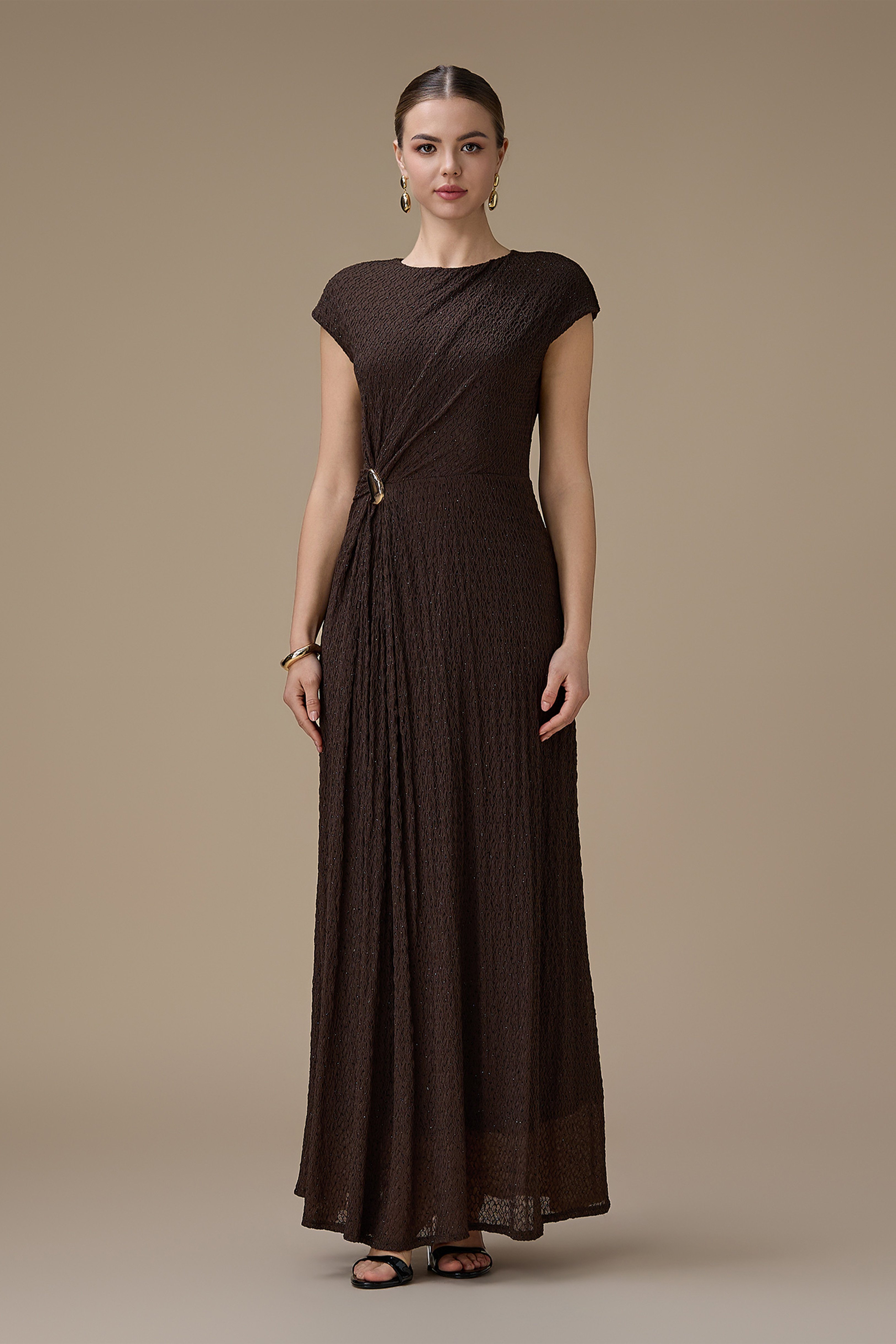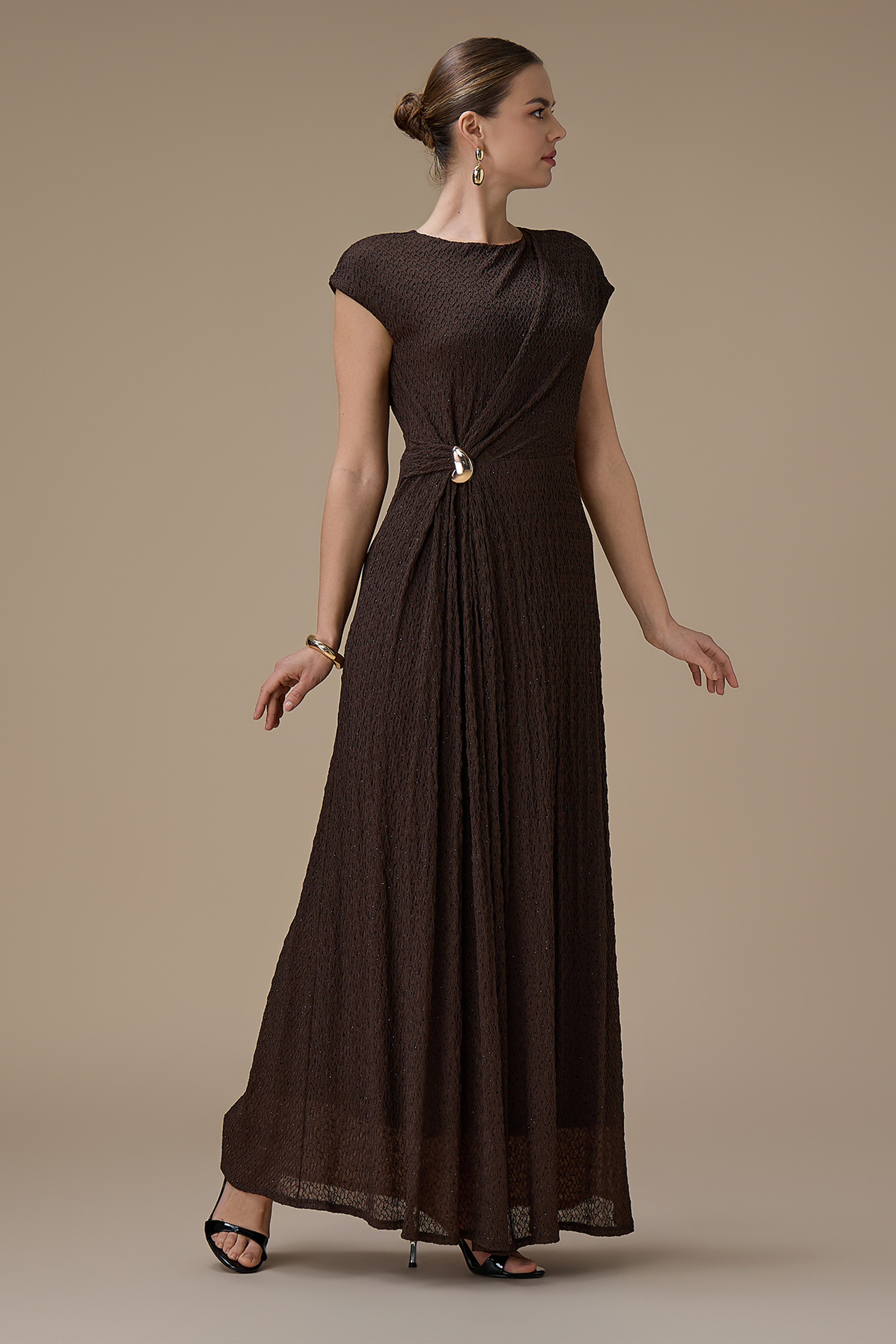 نوع التصميم: فستان طويل بني بتفصيلية جانبية